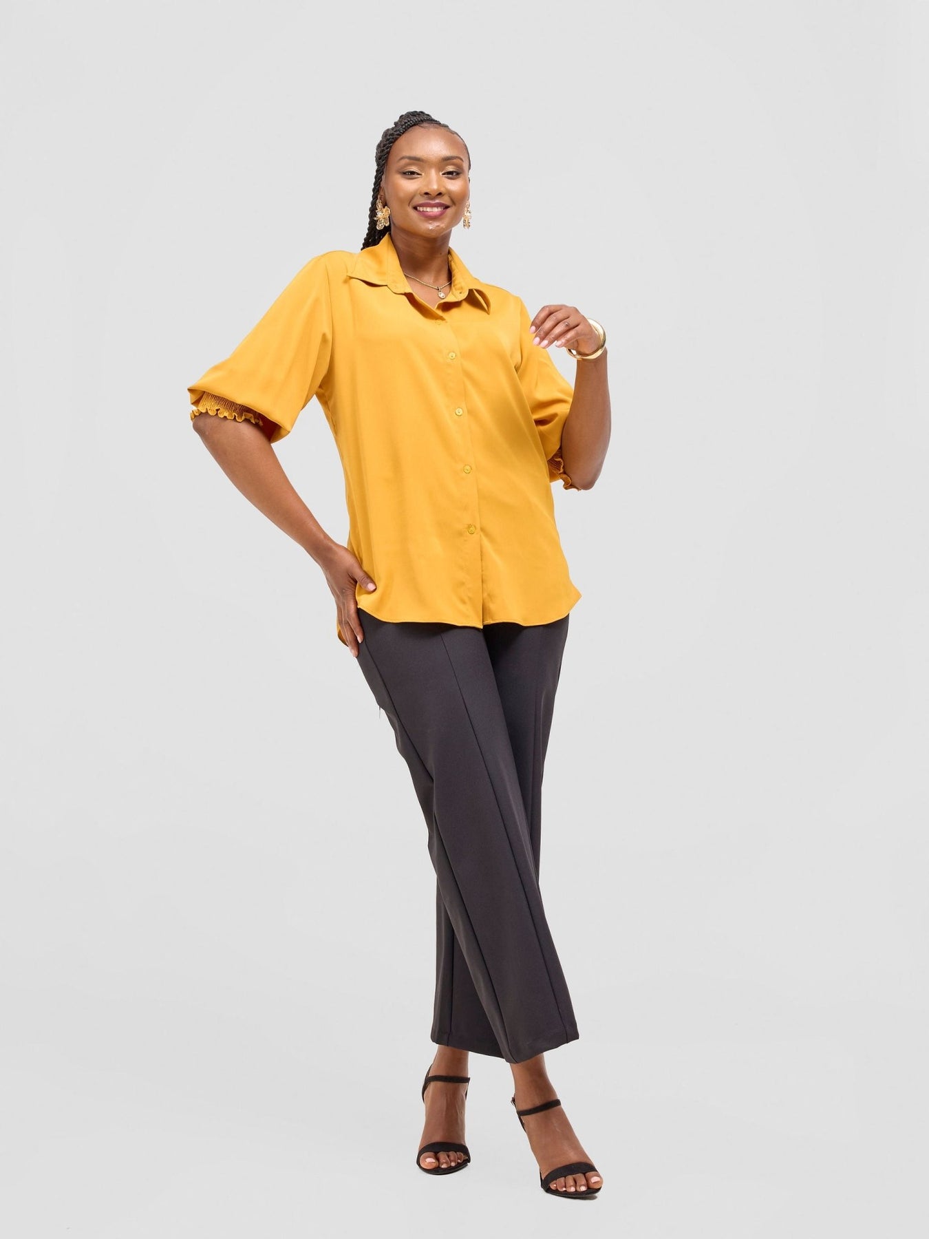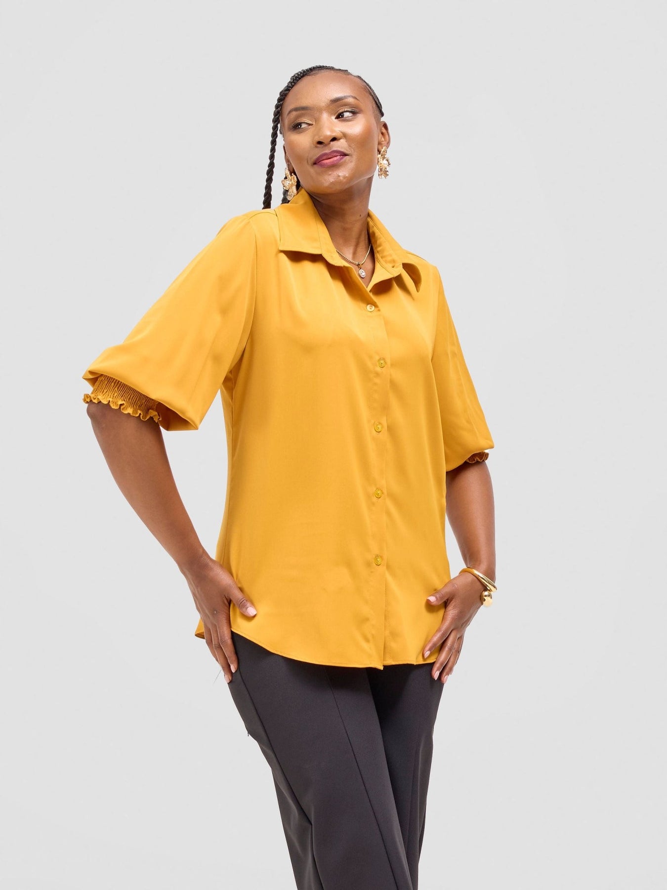 Vivo Fahari 3/4 Sleeve Shirred Shirt