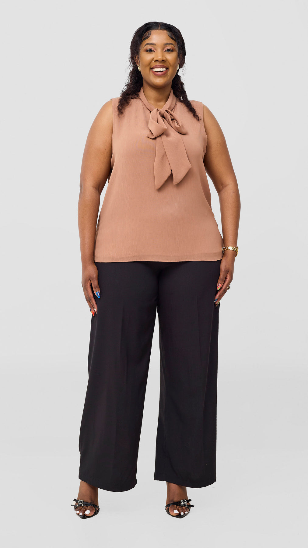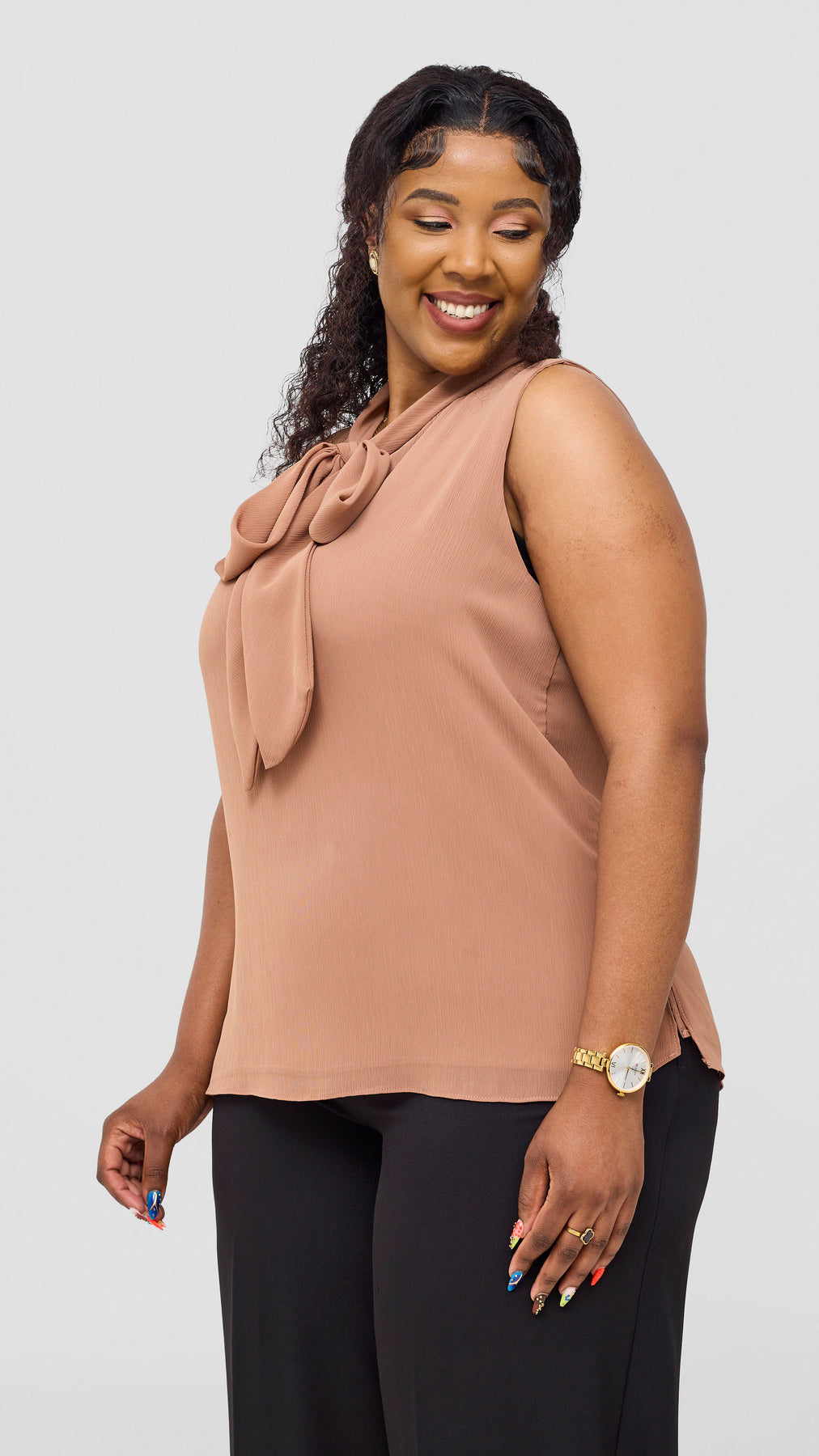 The Vivo Niari Sleeveless Top in brown offers a comfortable and stylish option for your everyday wardrobe. Its sleeveless design allows for easy movement and breathability, making it ideal for layering or wearing on its own during warmer days. This versatile top is designed to support your daily activities while keeping you looking effortlessly put together.