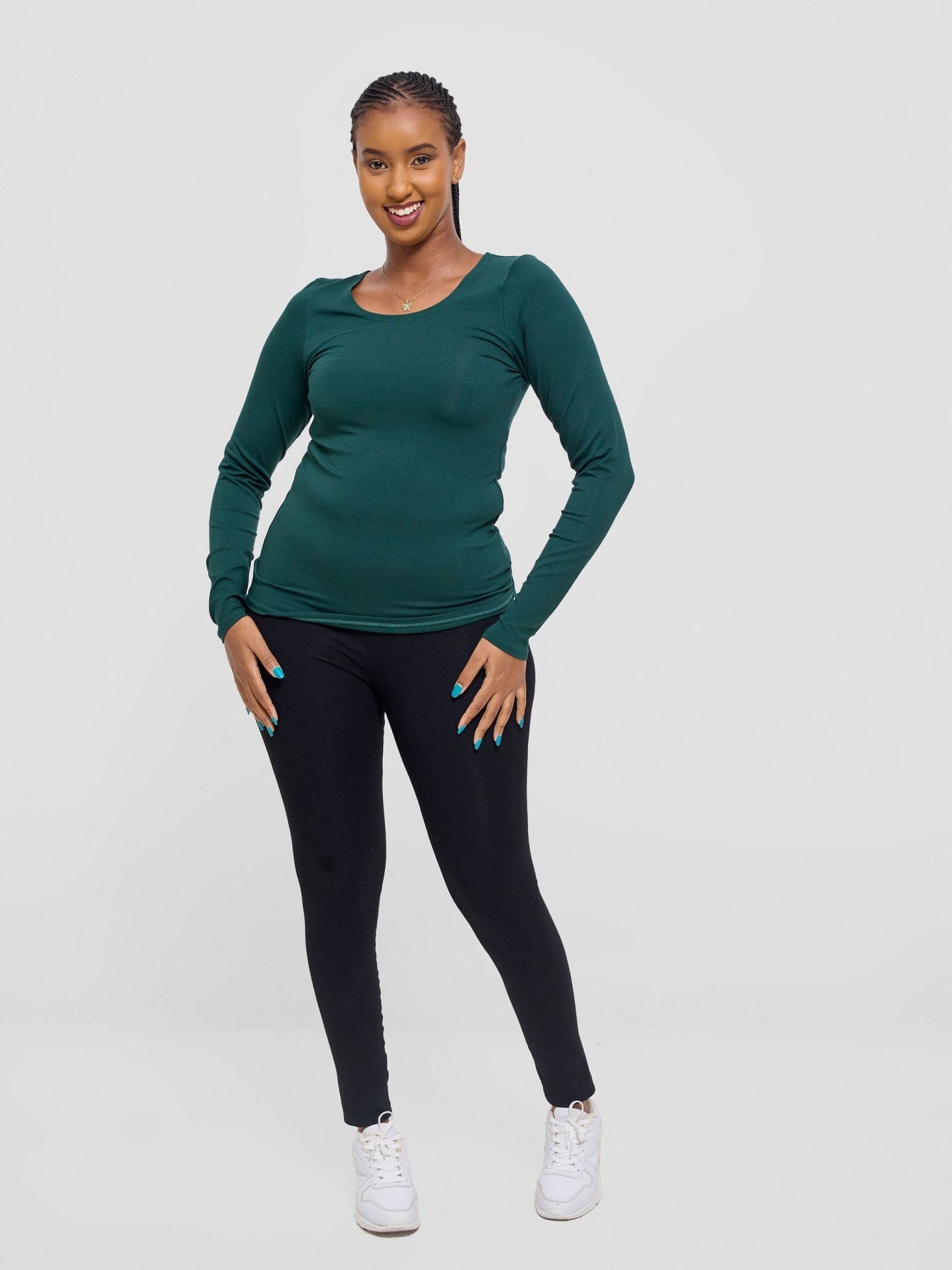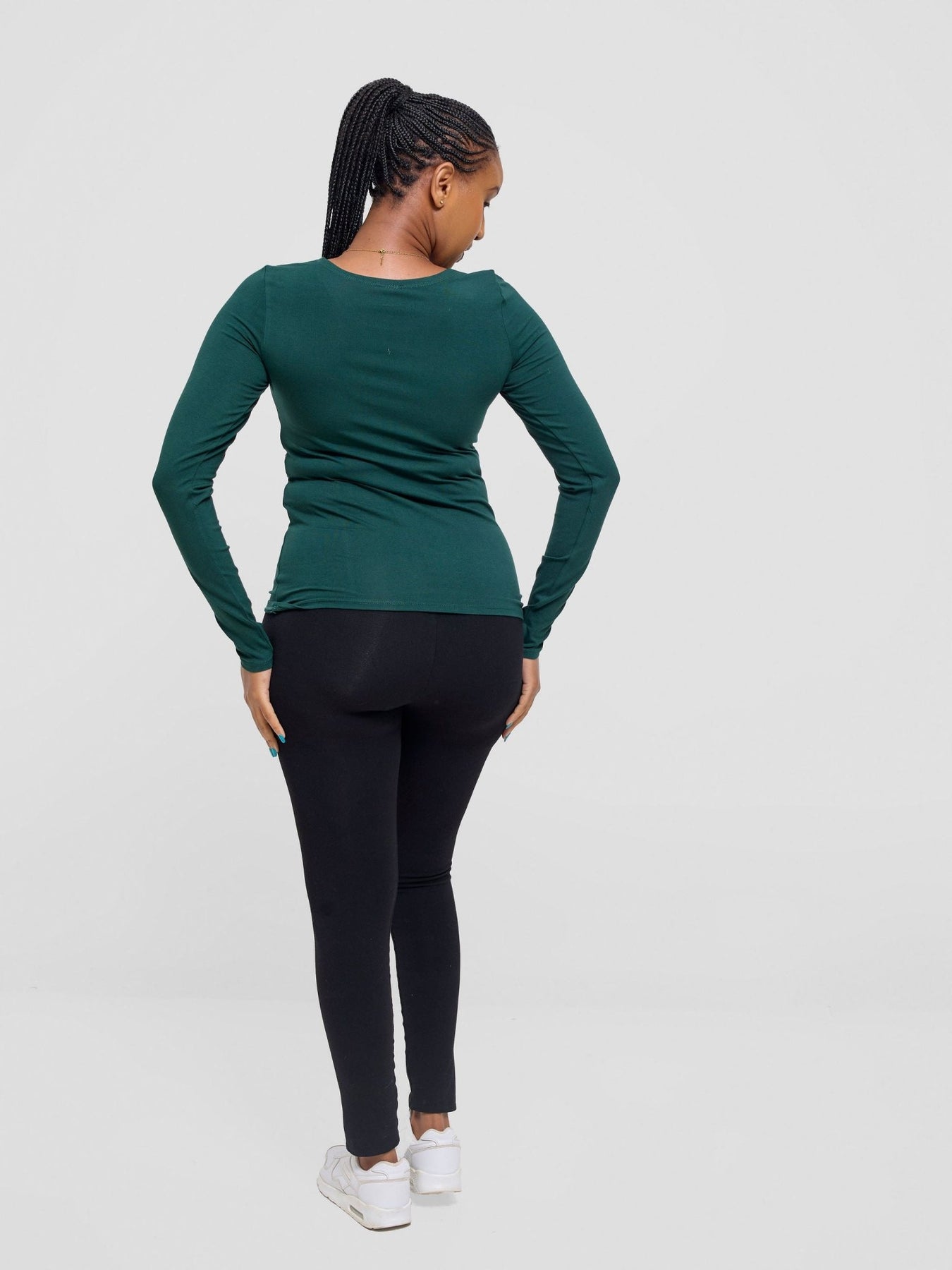 Vivo Basic Val Long Sleeve Sleeve Top - Dark Green - Shopzetu