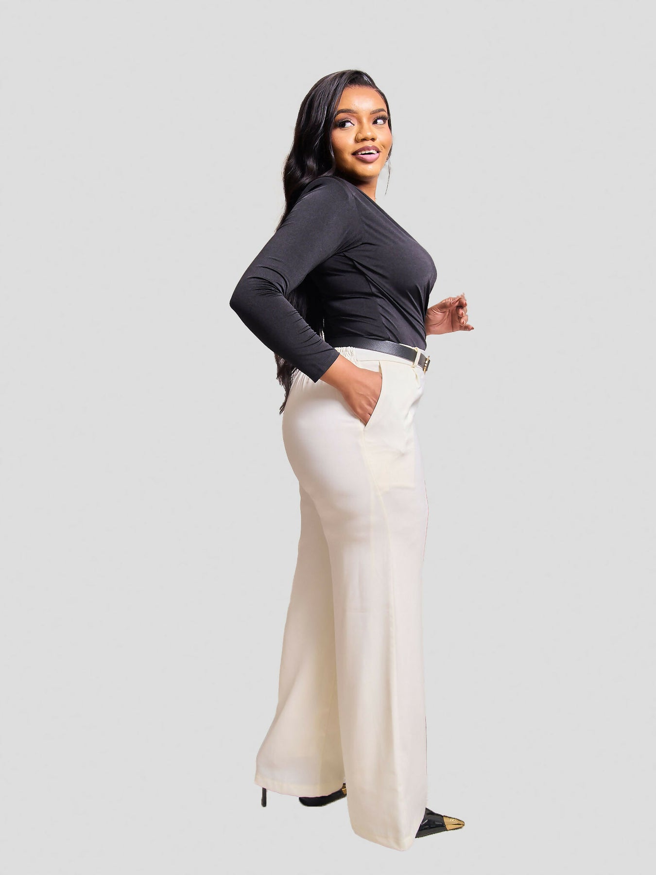 A modern wardrobe essential, these Knife Pleat Palazzo Pants from Plain Chic Nairobi are designed for the woman who values both sophistication and comfort. Their elegant, high-waisted silhouette creates a flattering look that is perfect for any occasion.