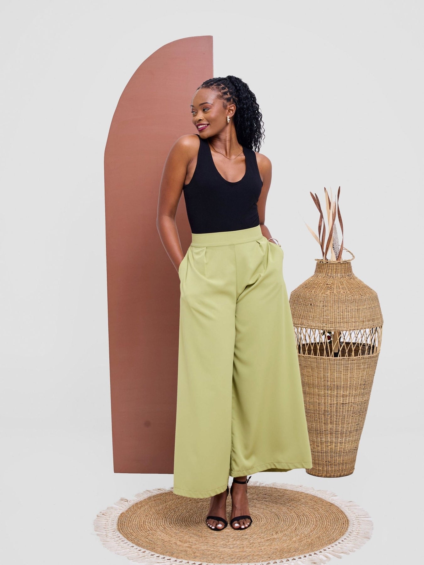 Vivo Basic Crepe Pants - Lime Green - Shopzetu