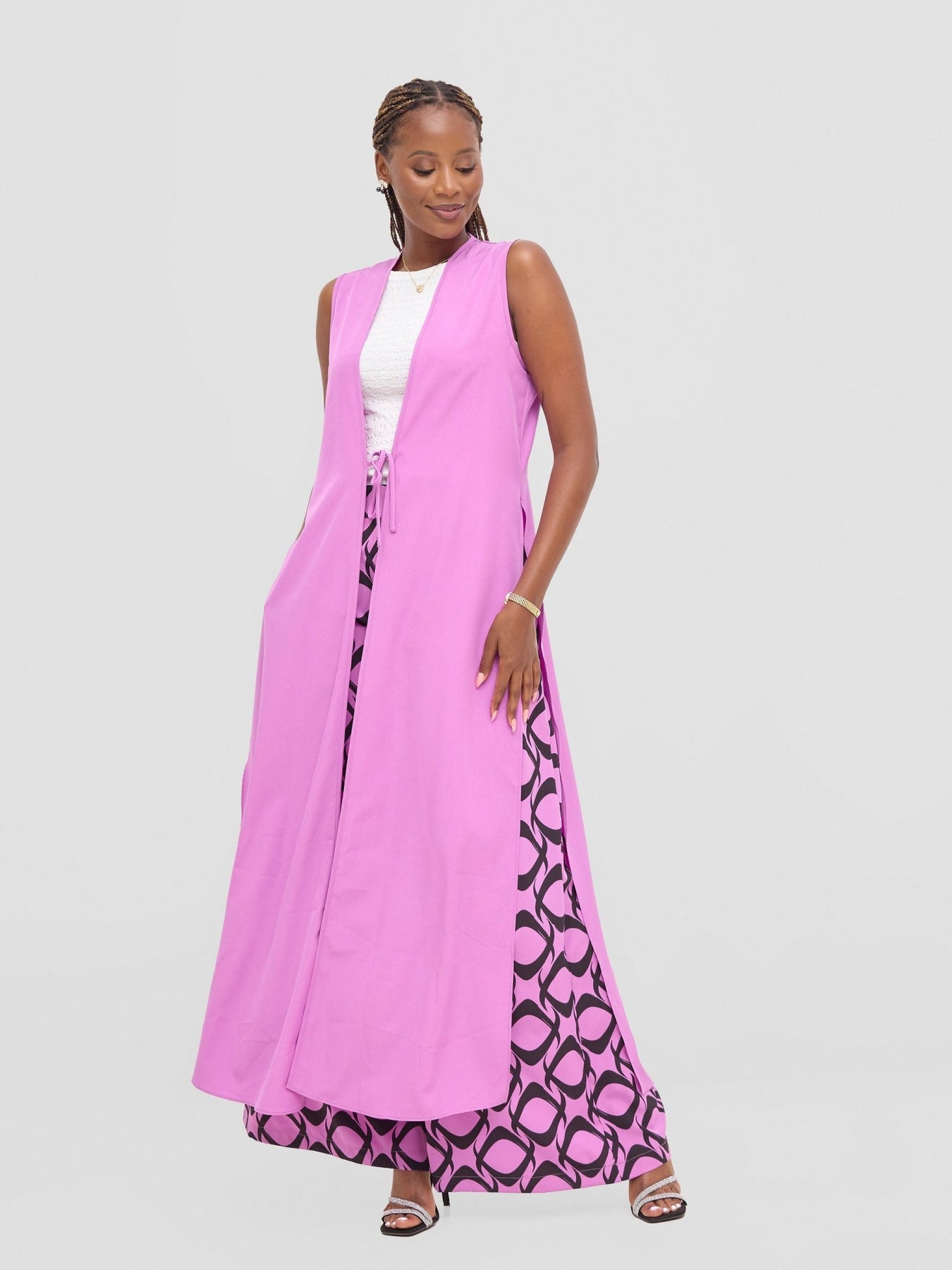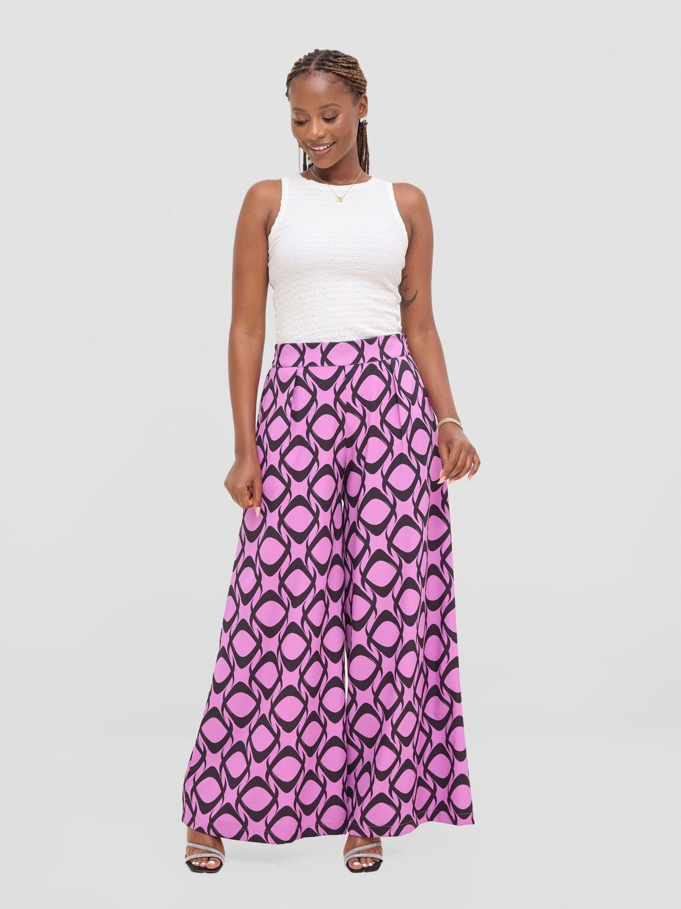 Vivo Basic Crepe Pants - Purple / Black Tiki Print - Shopzetu