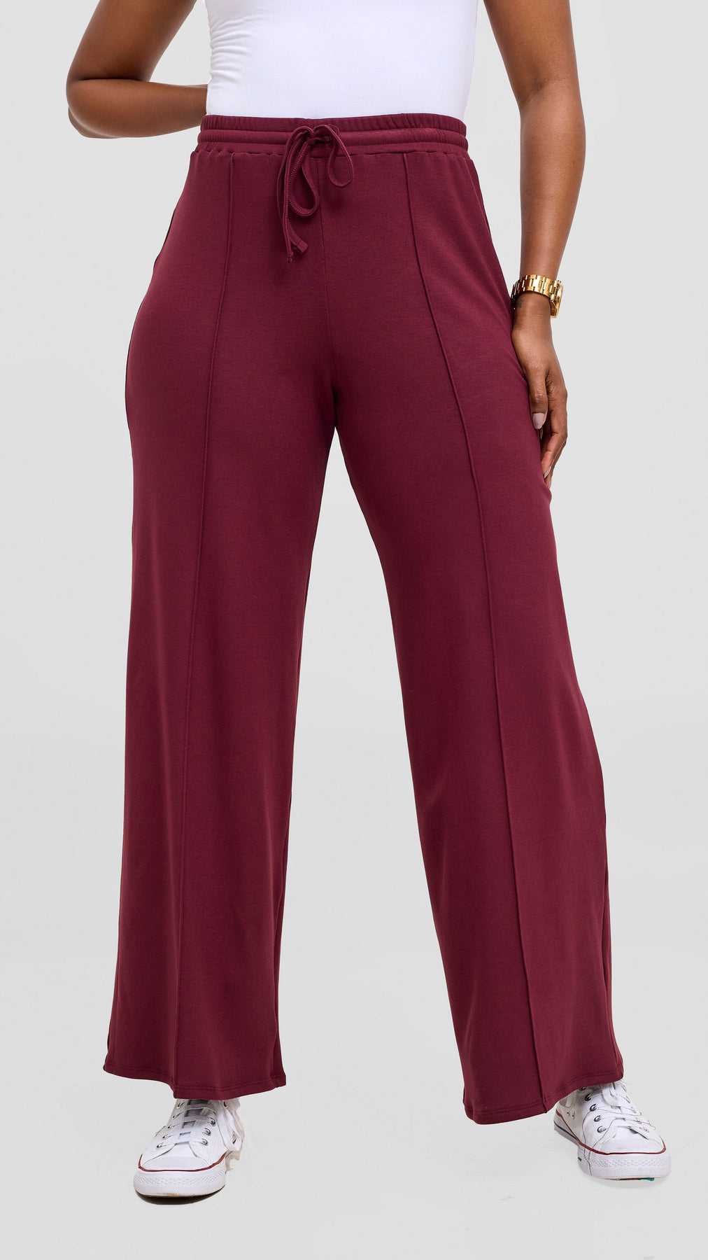 The Vivo Ria Panelled Pants in maroon offer a stylish and adaptable addition to your wardrobe. Crafted with distinct panel detailing, these pants provide a flattering fit and a modern edge. Wear them with the matching top for a polished coordinated outfit or pair them with your favorite pieces for versatile everyday style. Perfect for making a confident statement wherever you go.