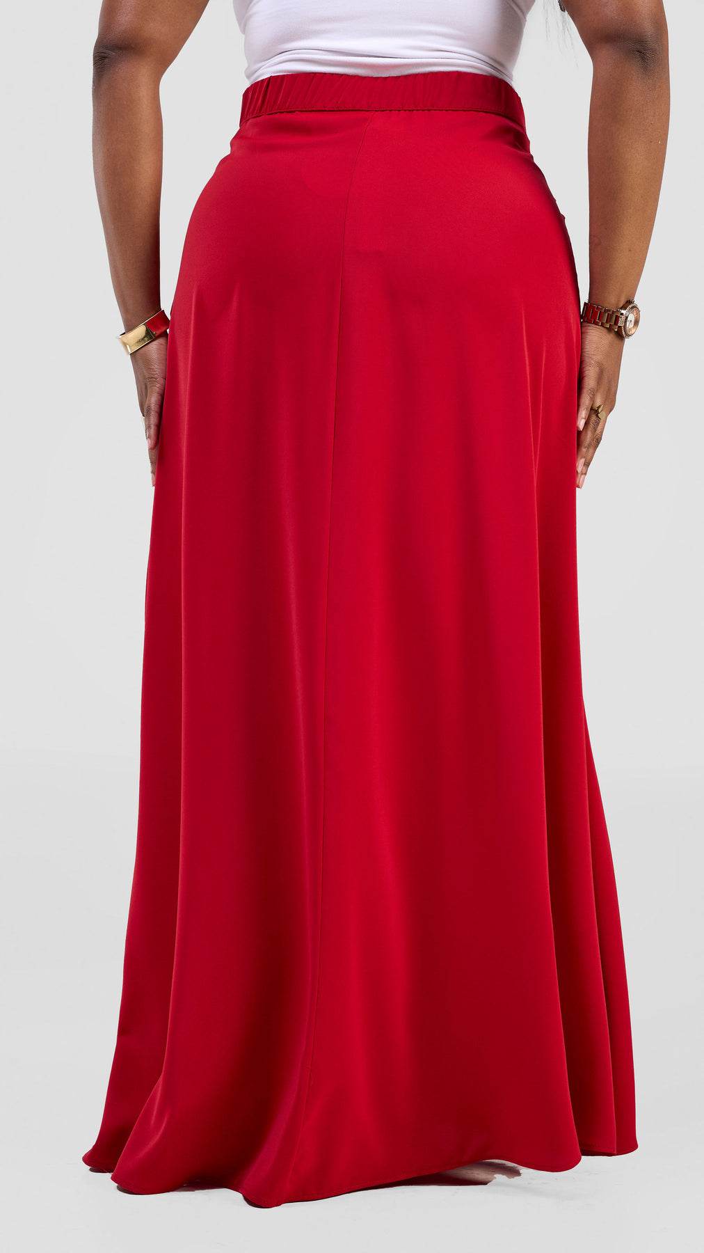 The Vivo Kemi Maxi Skirt in dark red offers versatile style options. Wear it as a set with the matching top for a coordinated look or pair it with other pieces for effortless elegance. Its vibrant colors and flowing design provide both comfort and a standout appearance for any occasion.