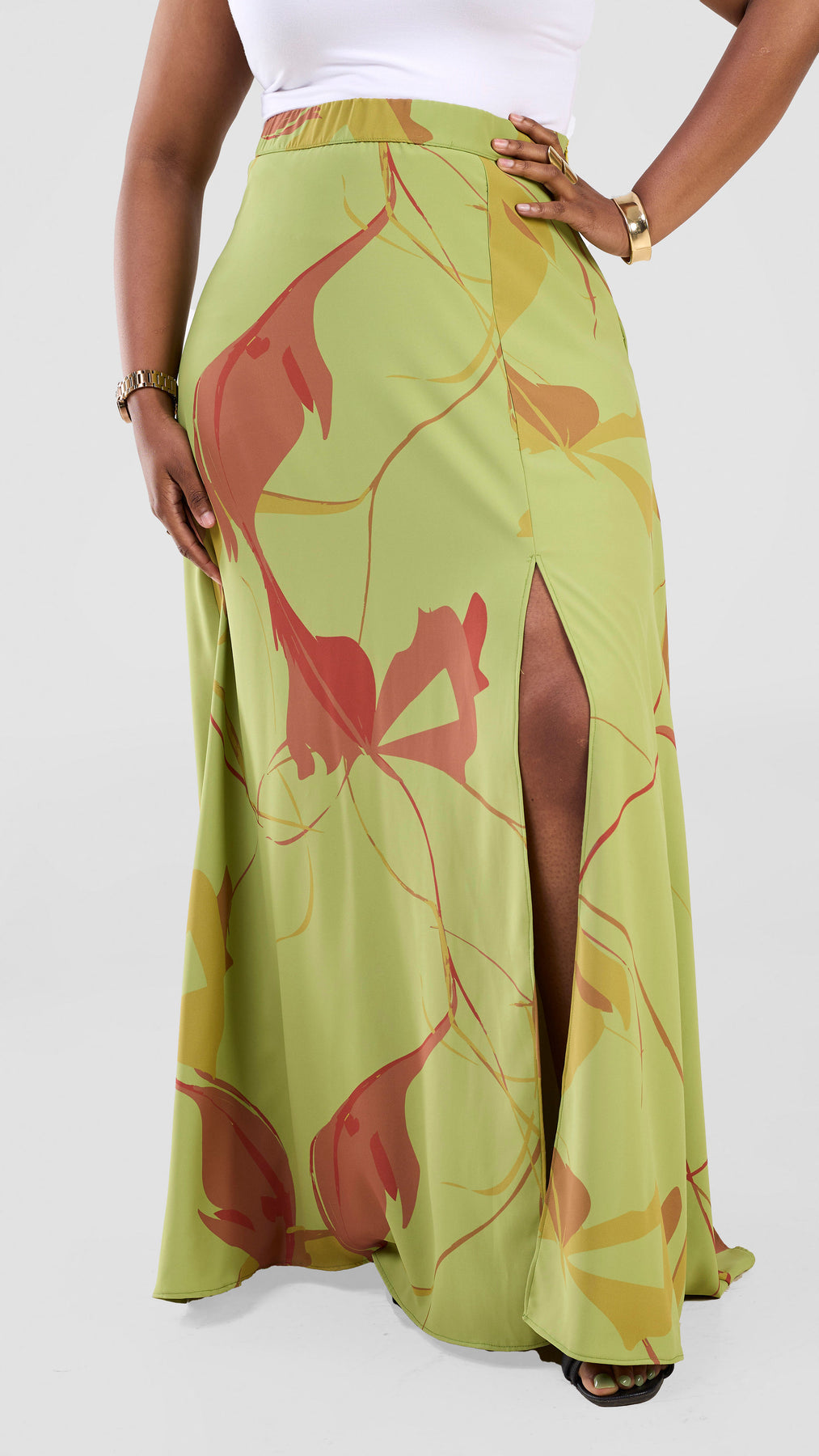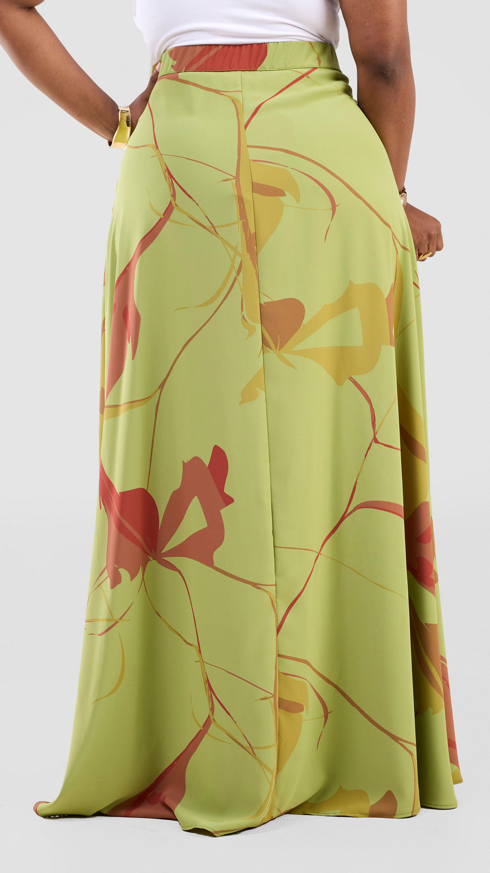 The Vivo Kemi Maxi Skirt in Lime Green and Maroon Emi Print offers versatile style options. Wear it as a set with the matching top for a coordinated look or pair it with other pieces for effortless elegance. Its vibrant colors and flowing design provide both comfort and a standout appearance for any occasion.