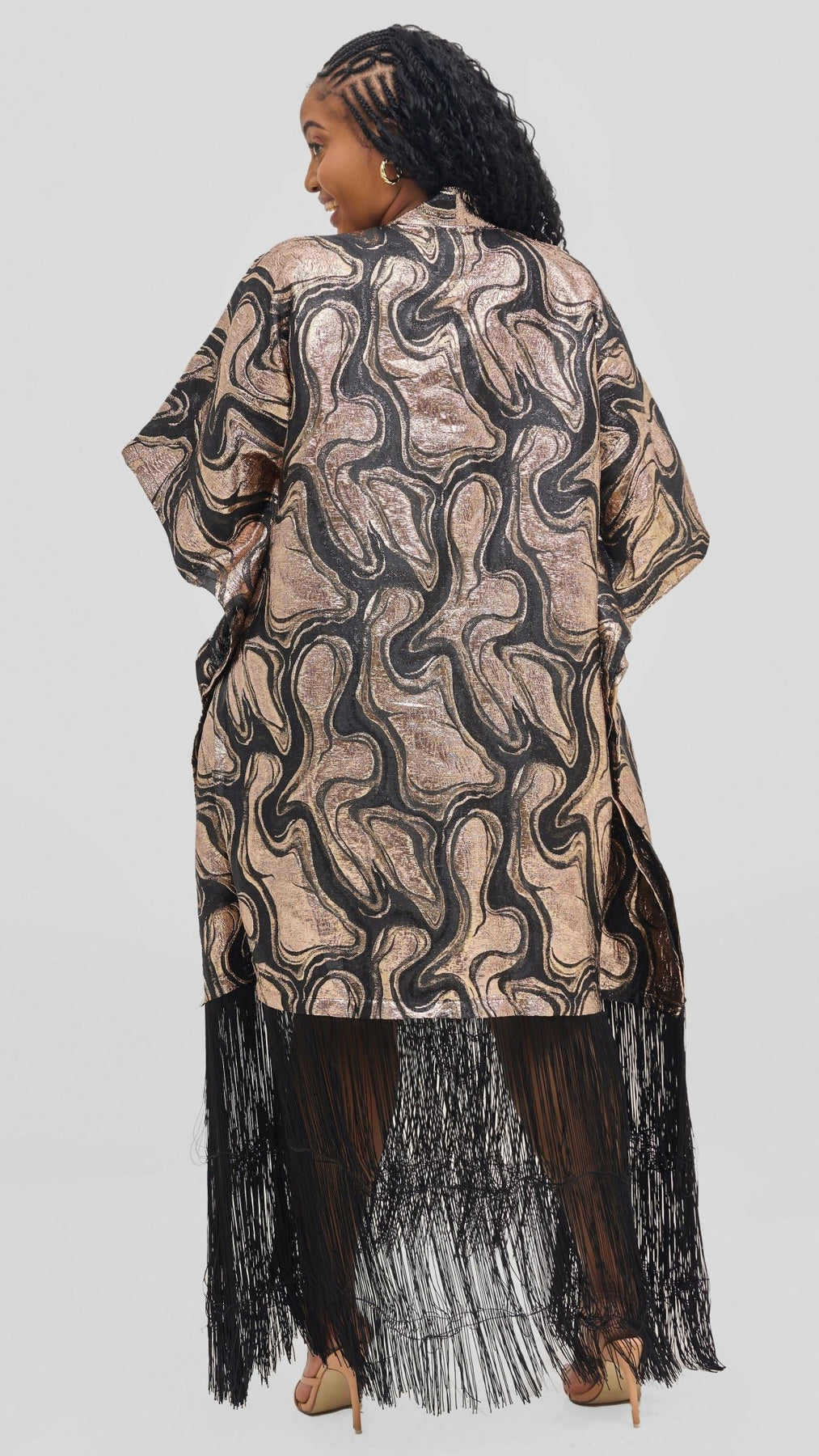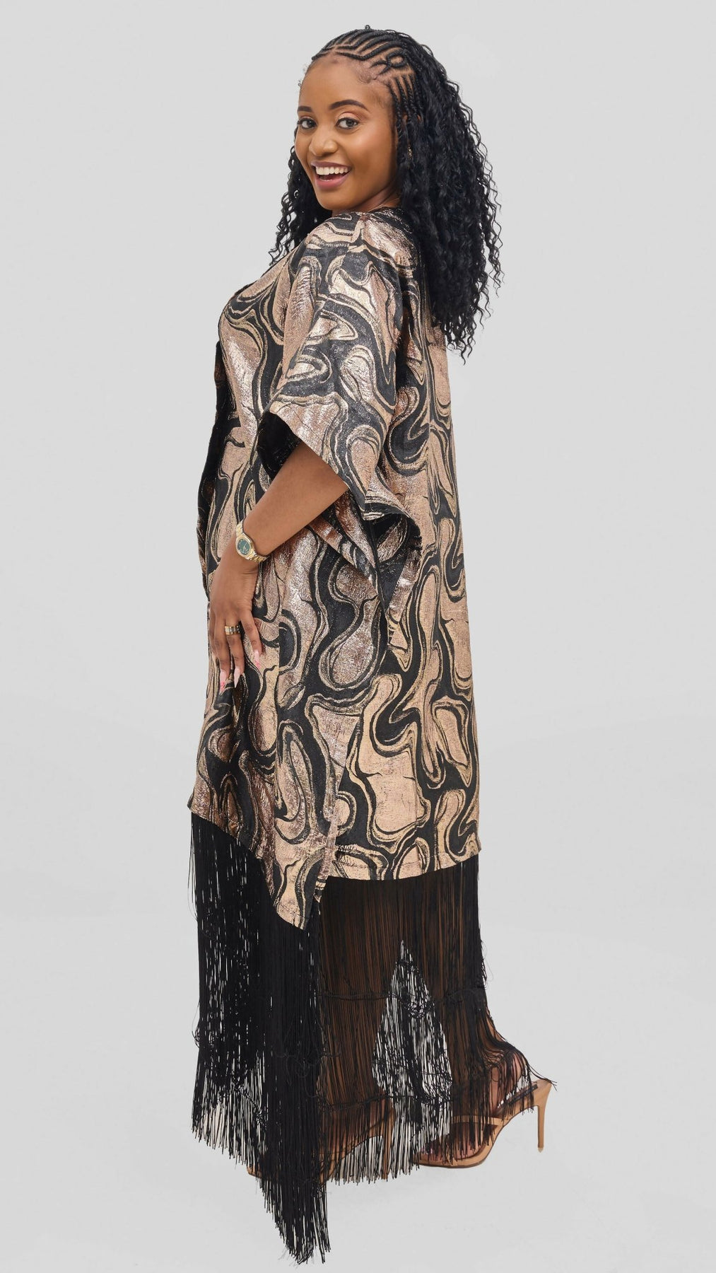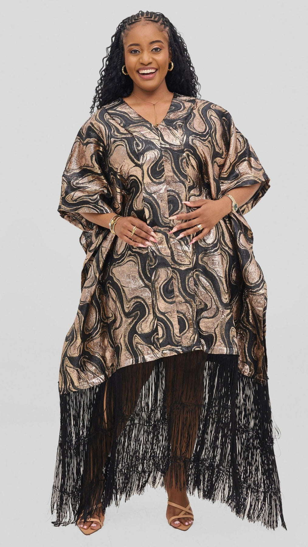 Glamour Fringe Hem Tunic – Gold & Black SwirlProduct Features: