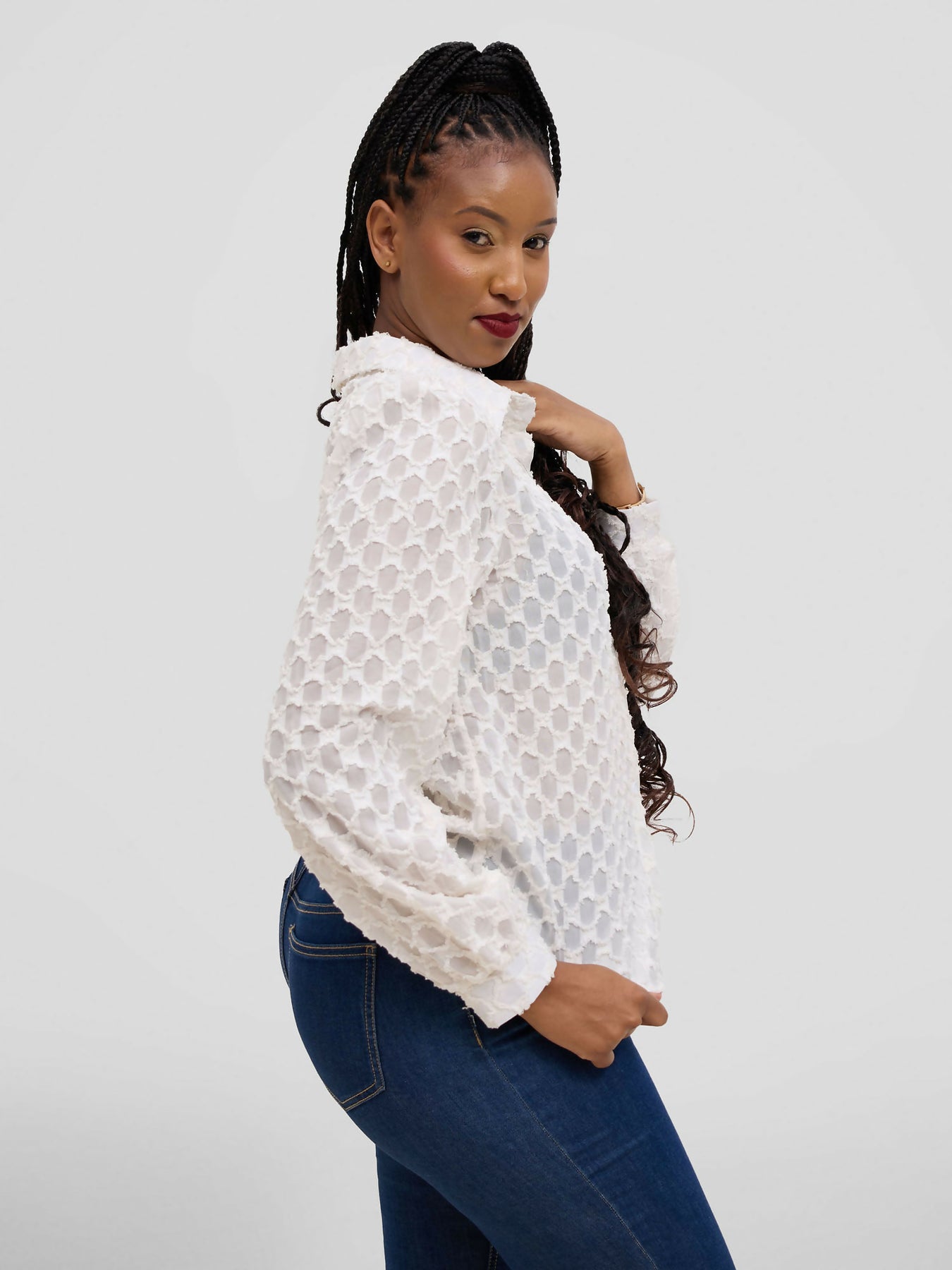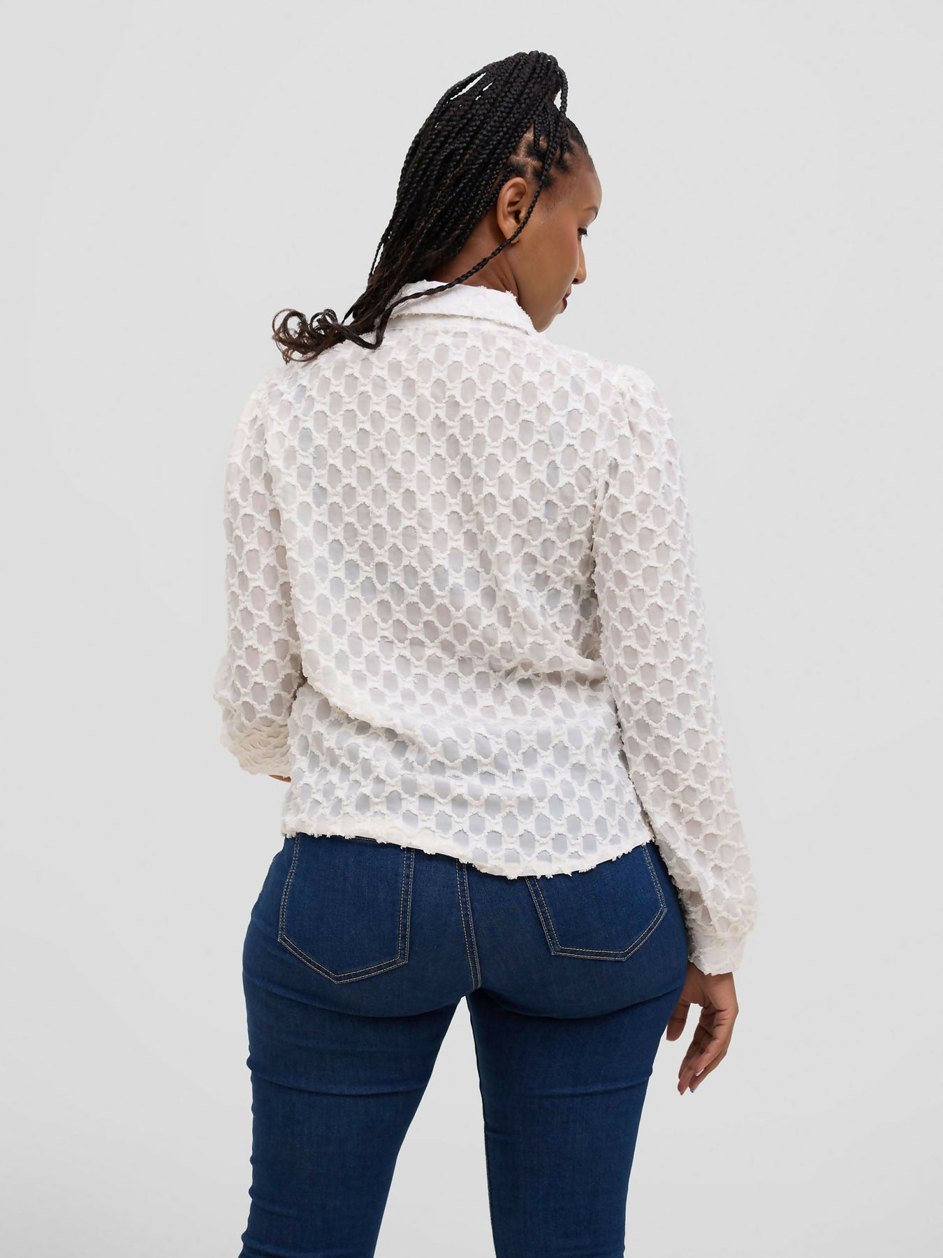 Hessed Long Sleeve Button Shirt - Cream - Shopzetu