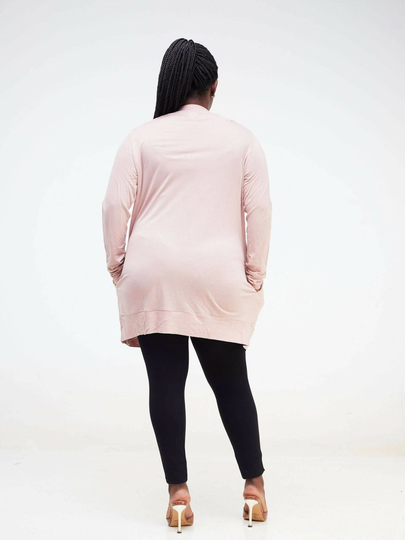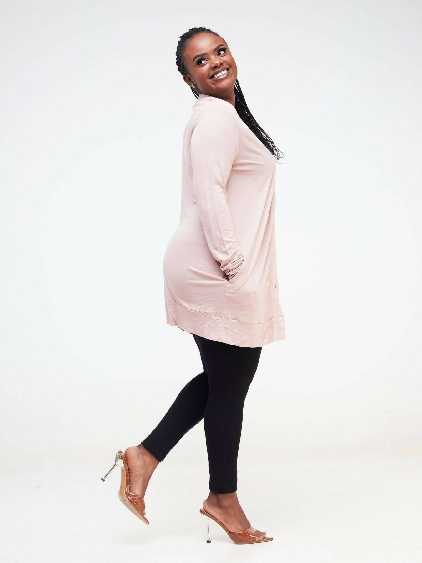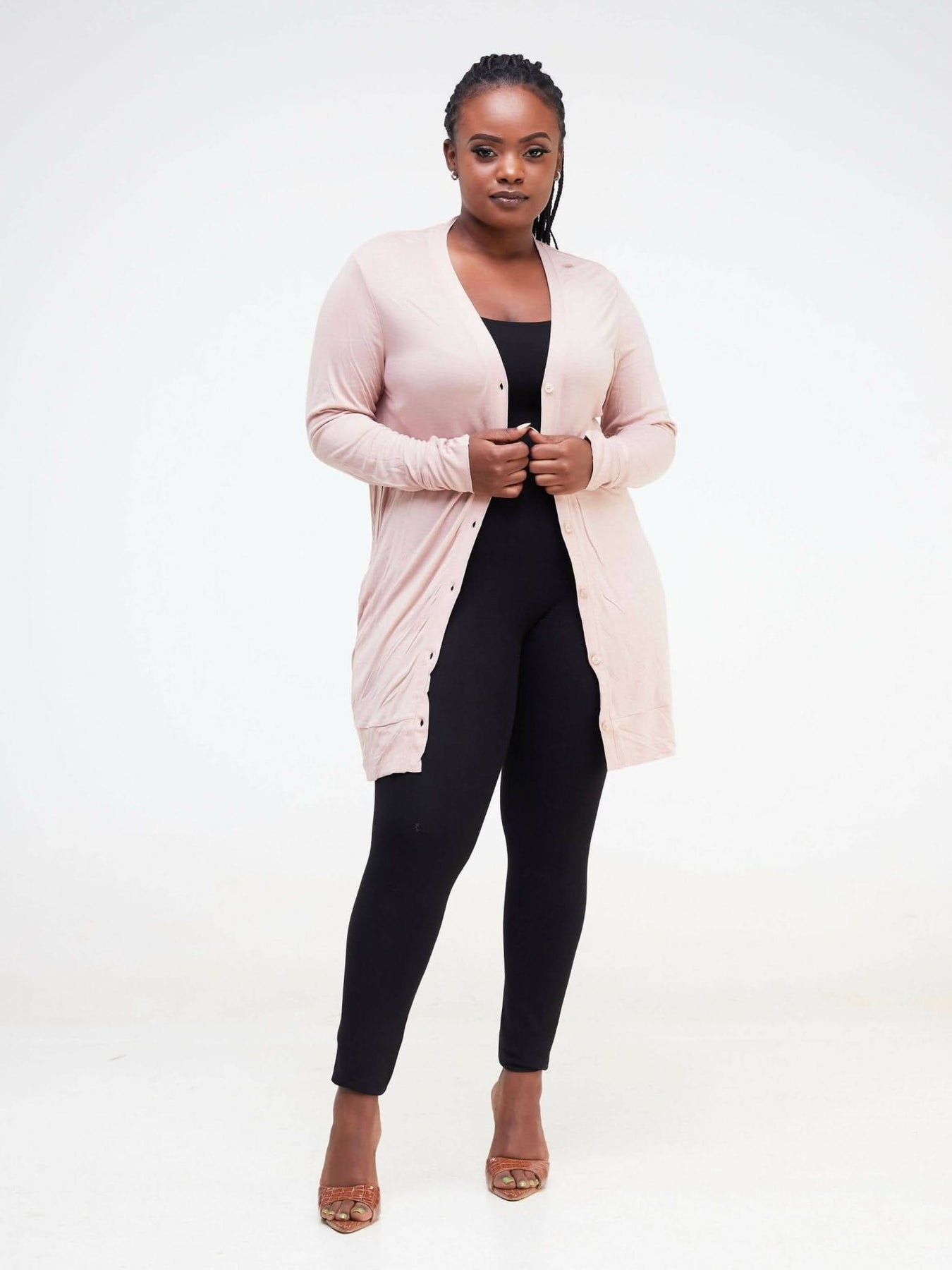 Hessed Midi Buttoned Waterfall - Pink - Shopzetu