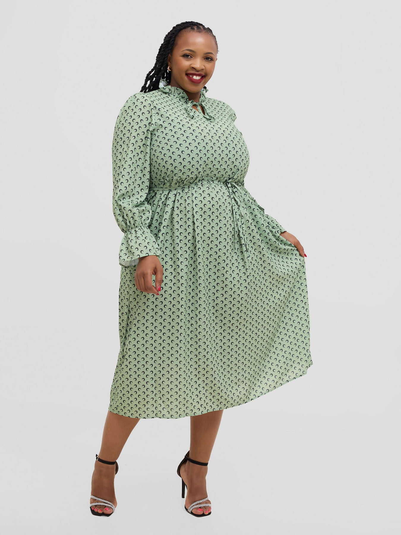 Hessed Polka Dot Ruffle Flare Sleeve Beled Chiffon Dress