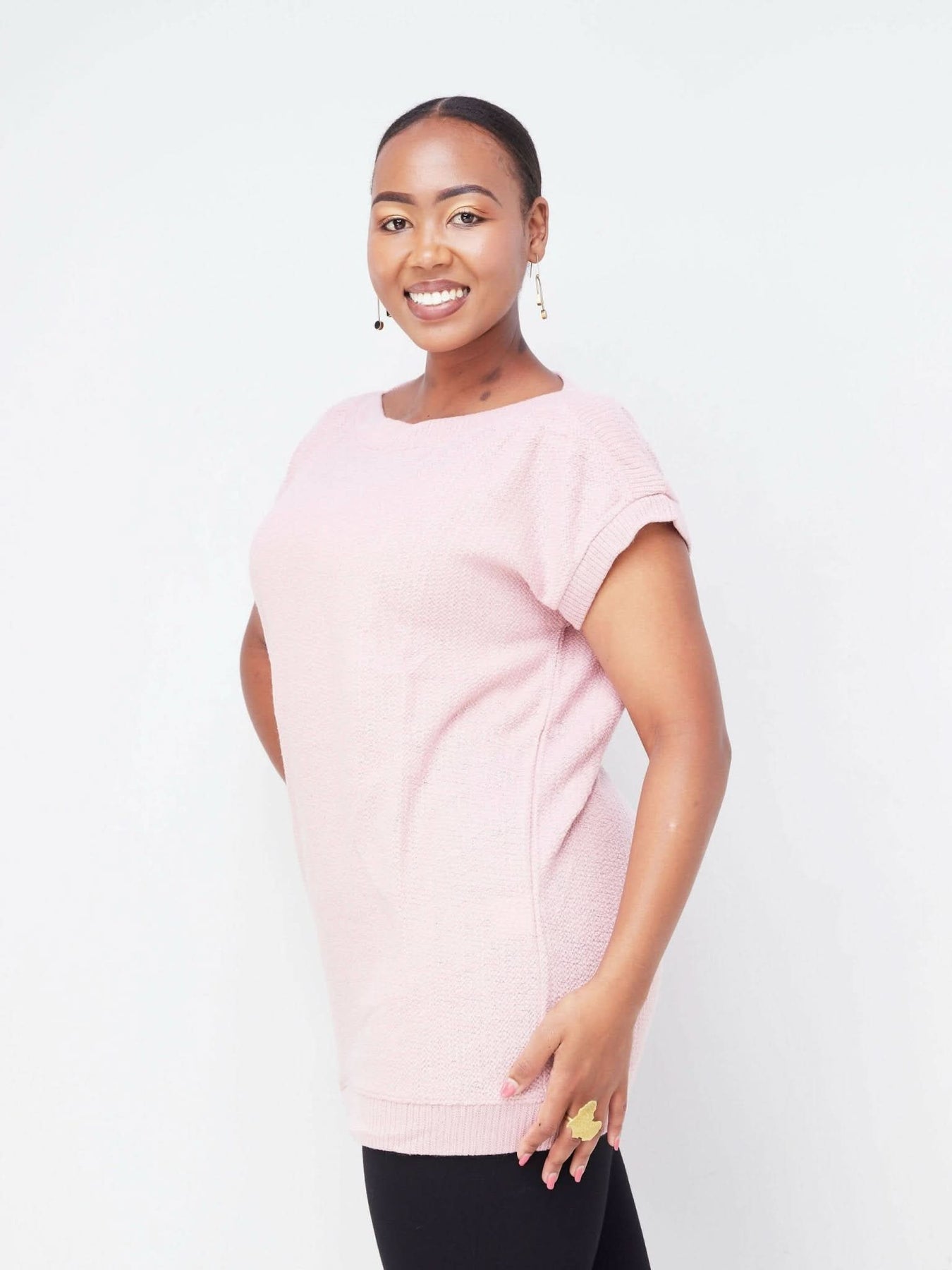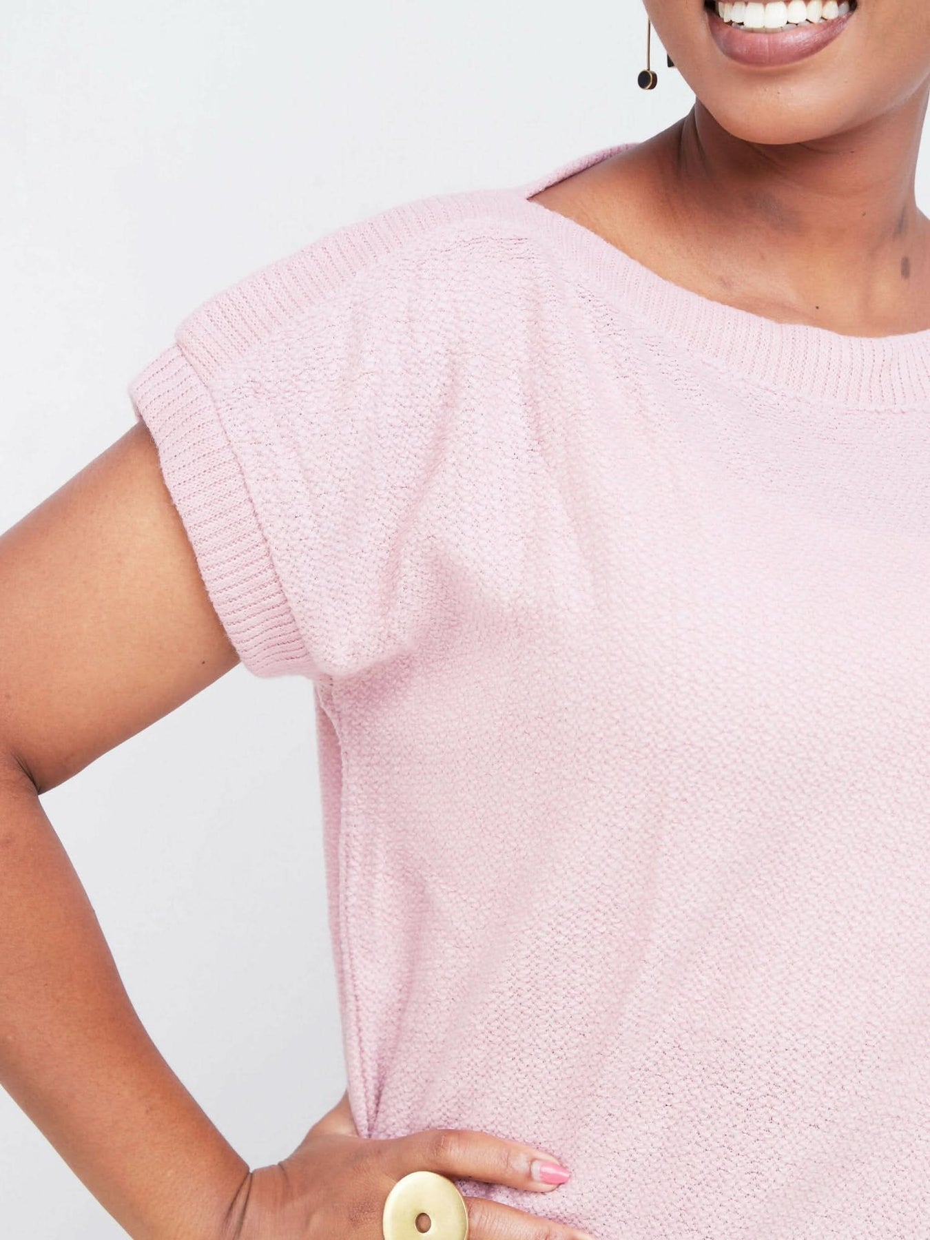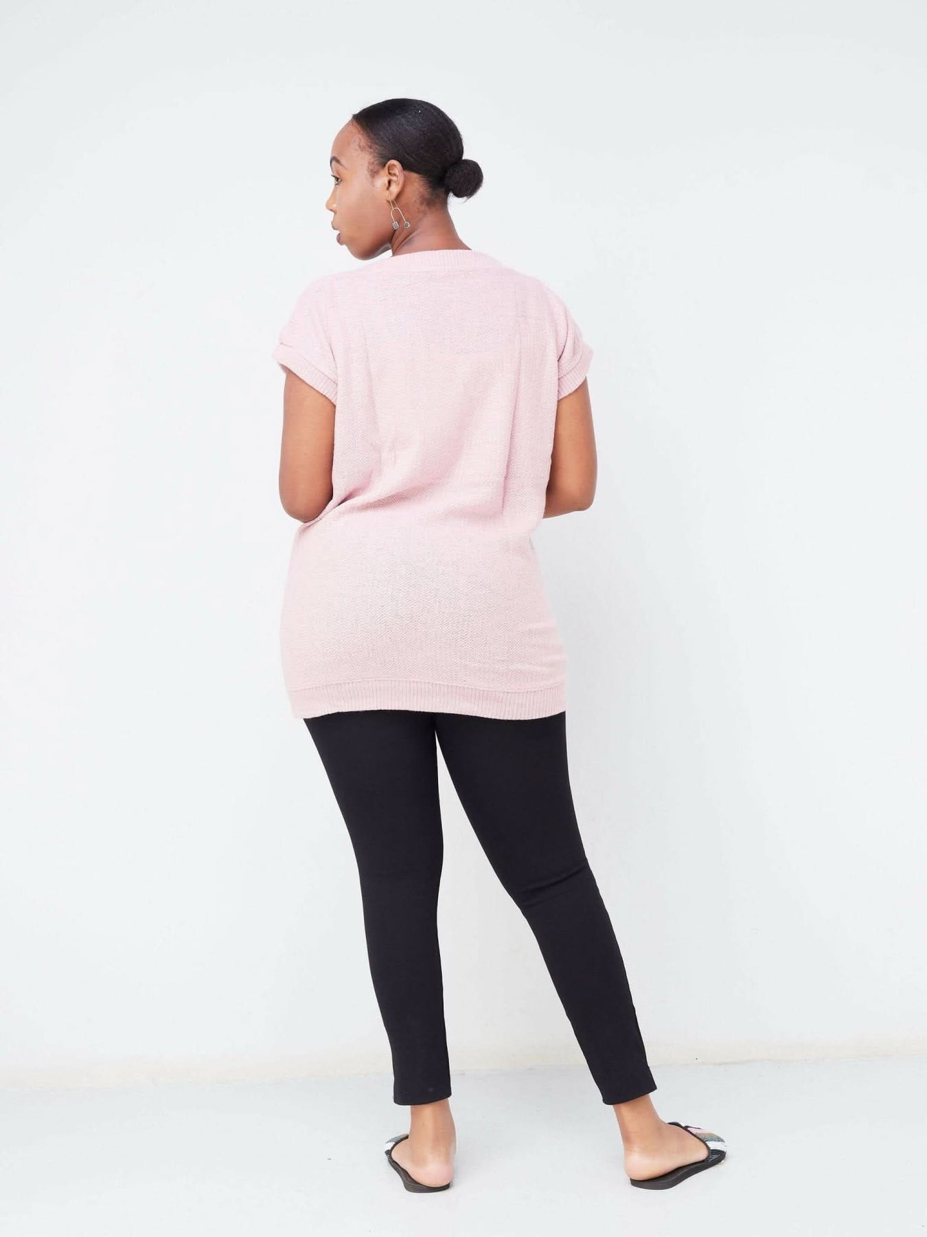 Hessed Short Sleeved Sweeter Top - Pink - Shopzetu