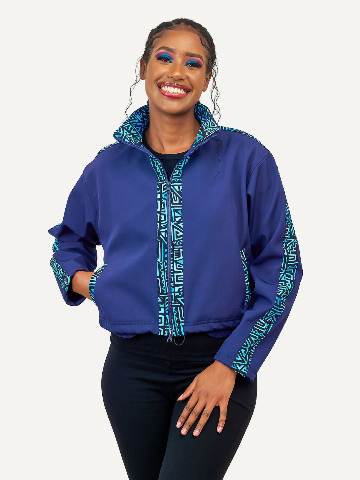 Elevate your outerwear with our White Sleeveless Softshell Jacket, designed for the modern adventurer who values both style and functionality. Crafted with a sleek, water-resistant fabric with a blend of vibrant African fabrics, this jacket provides the perfect blend of comfort and durability, making it an essential piece for those unpredictable weather days.