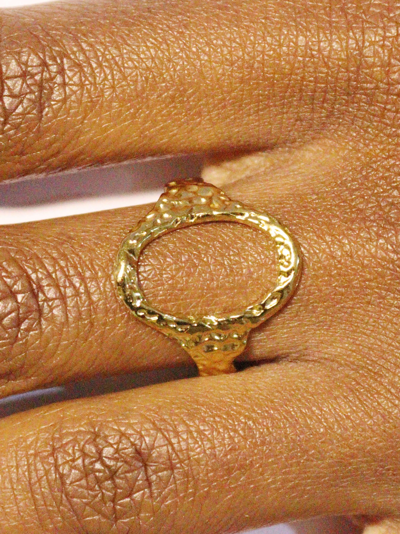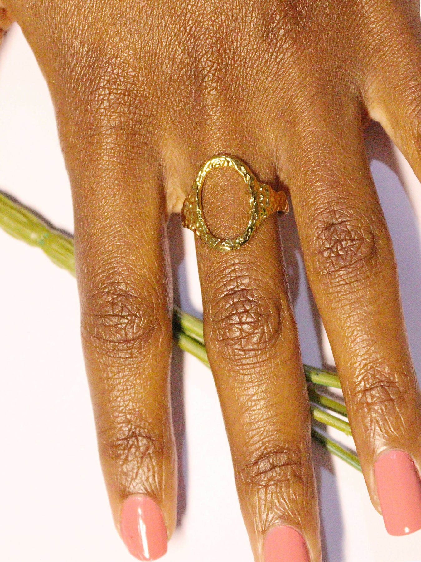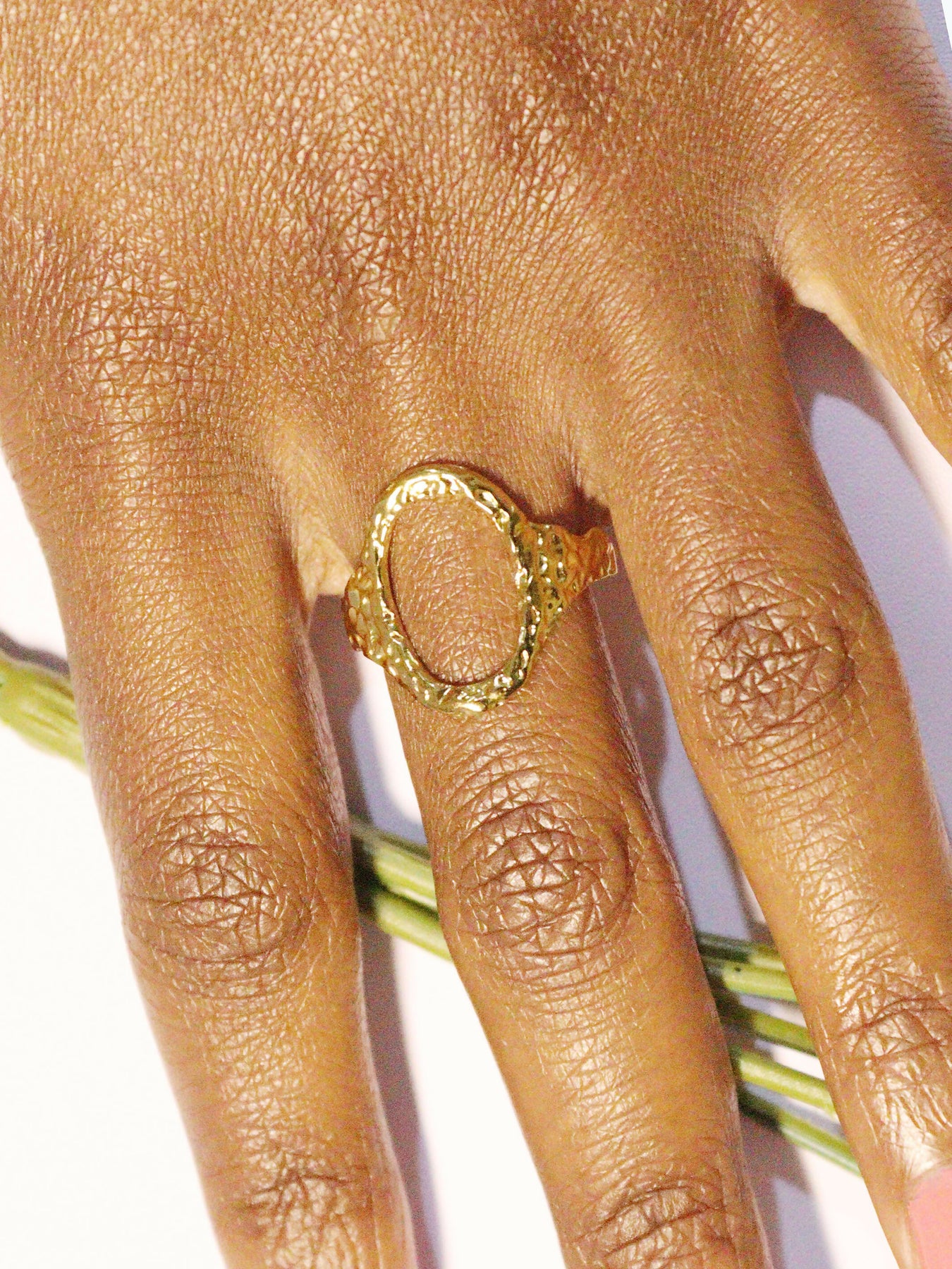 This ring is a re-imagination of elegance through texture and form. The hammered texture adds an artisanal edge that makes it simple and visually appealing