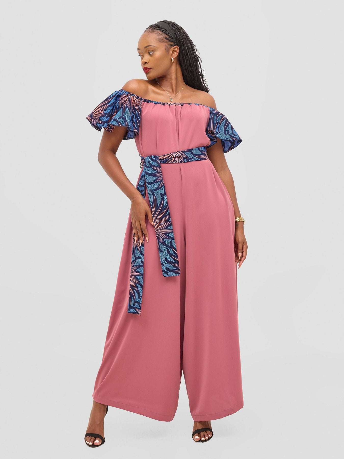 Vivo Fara Off Shoulder Flounce Sleeve Jumpsuit - Dusty Pink - Shopzetu