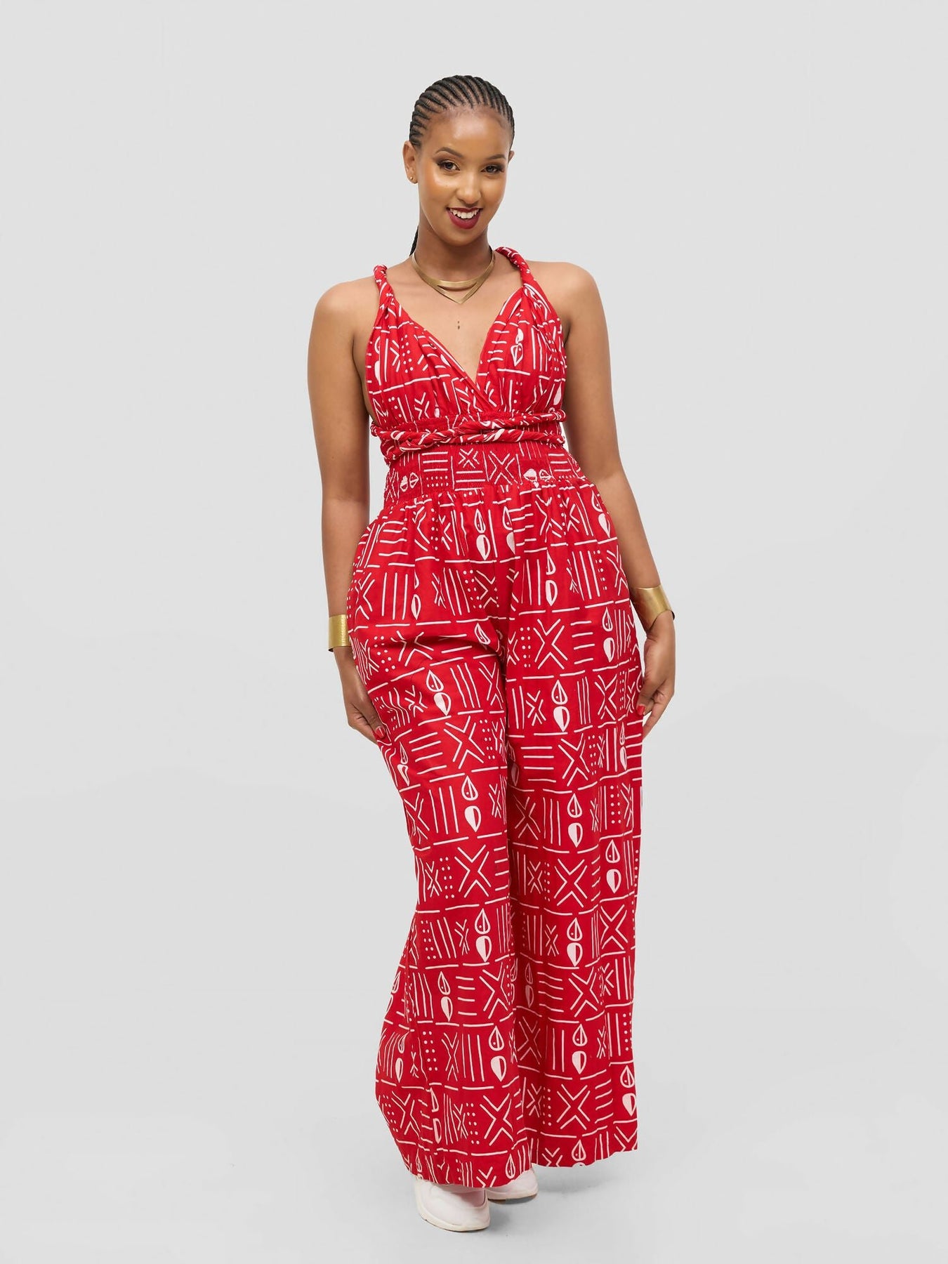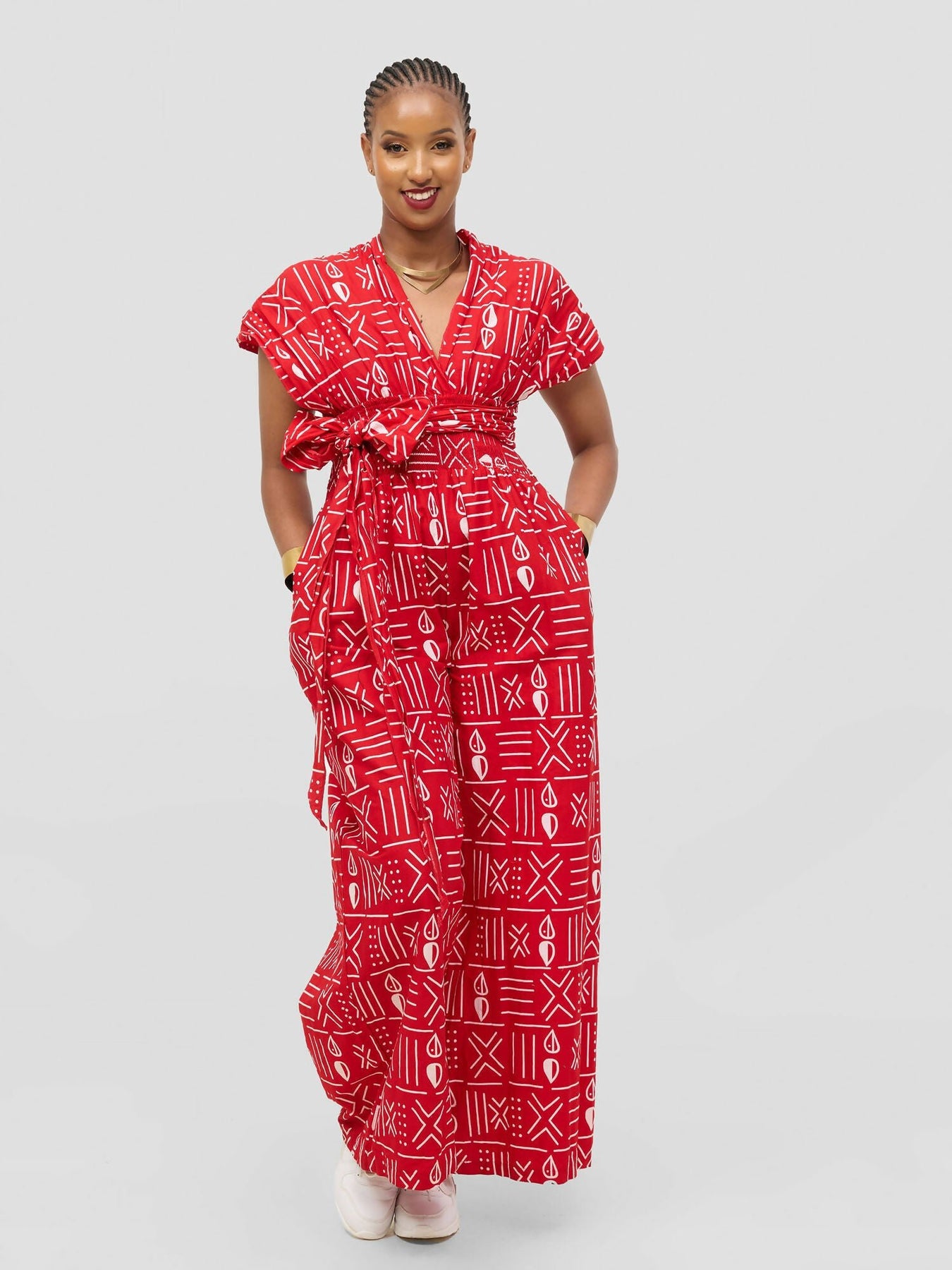 Multicolored African Ankara print romper made of comfortable cotton fabric.
