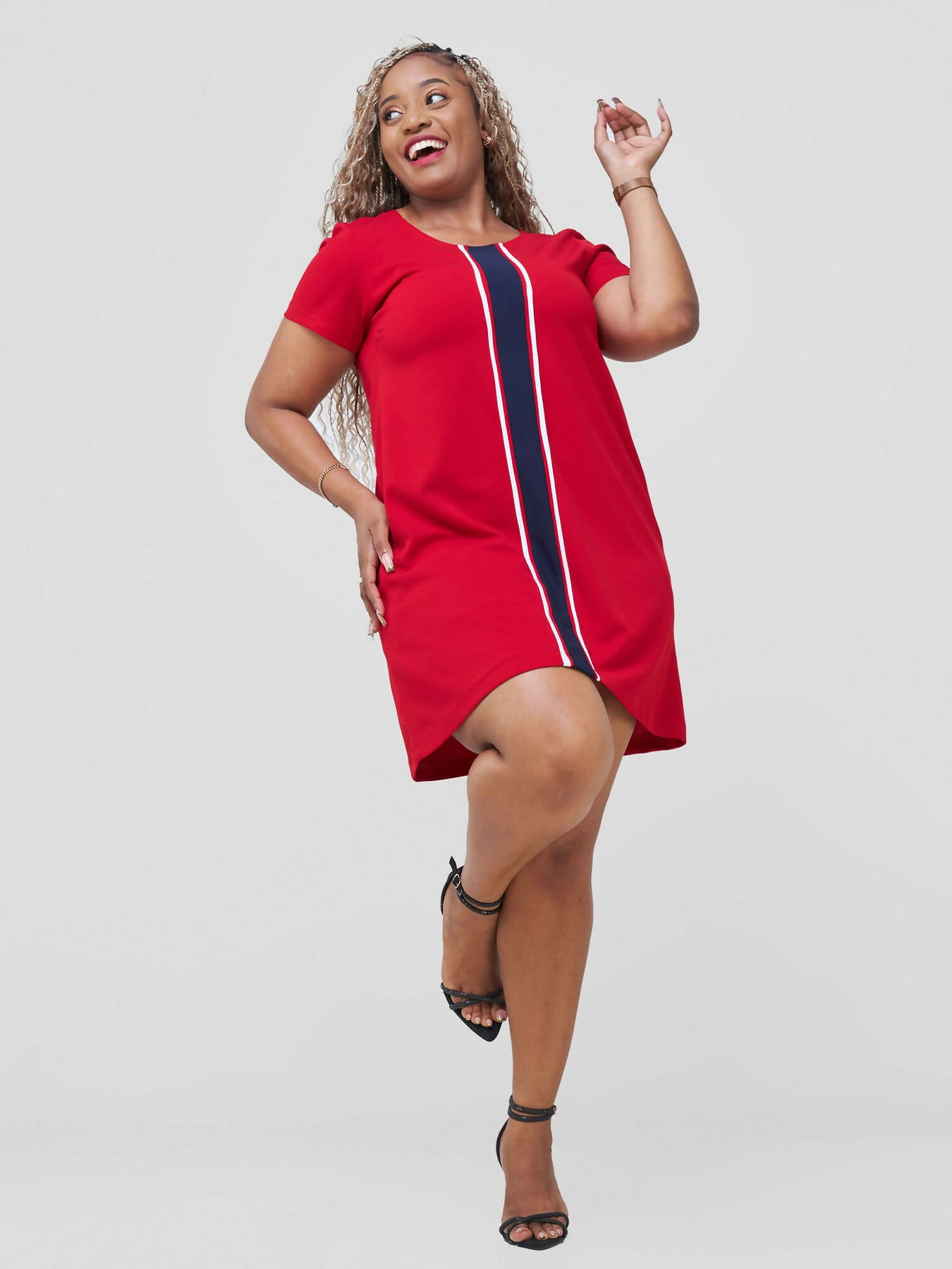 This red short shift dress is designed for both comfort and style, making it a versatile wardrobe essential. Crafted from a lightweight, stretchy fabric, it moves with you, providing a flattering yet relaxed fit. The simple, classic shift silhouette skims the body without clinging, making it perfect for all-day wear and adaptable to various body shapes. Its breathable material ensures you stay cool, while the slight stretch offers extra room for comfort, making it ideal for expectant mothers as well. Whether you're dressing up for a night out or keeping it casual, this dress delivers effortless chic.