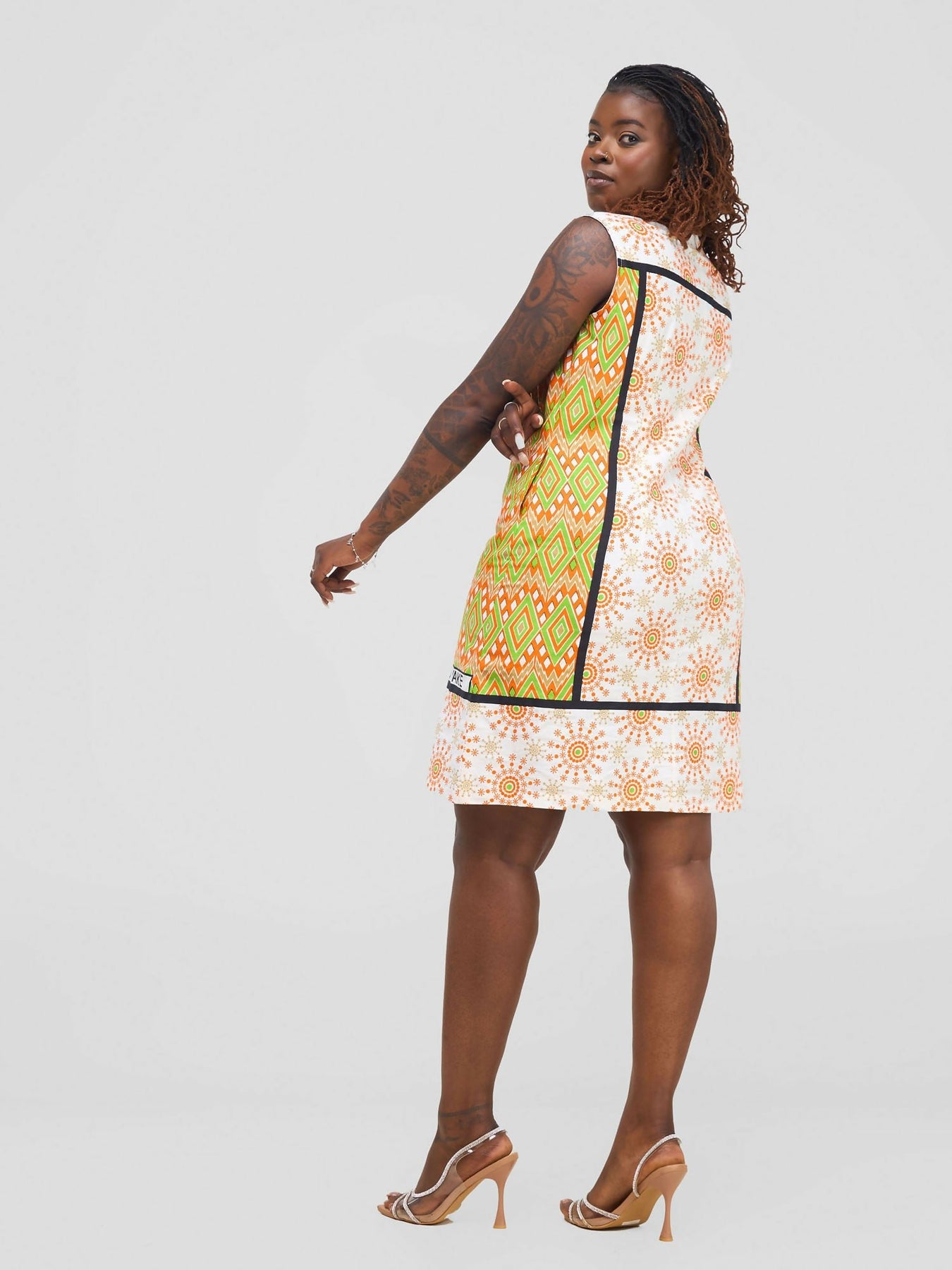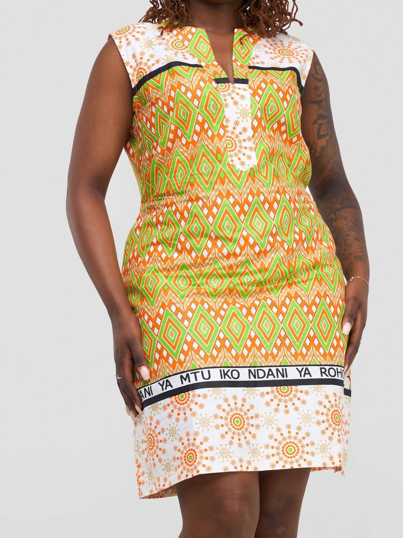 Karay Design Studio Leso Shift Dress - Green / Orange - Shopzetu