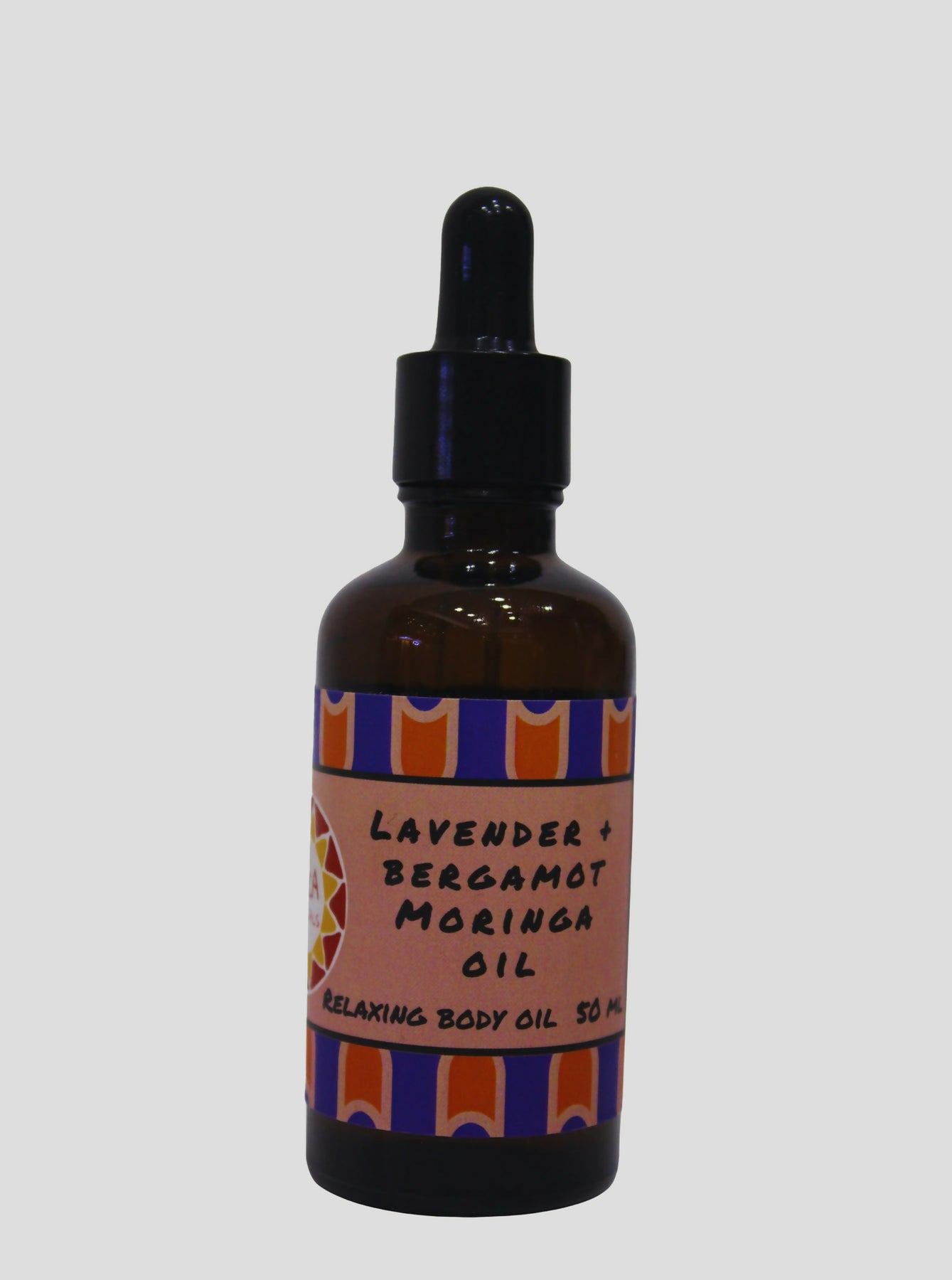 Lavender Bergamot Moringa Oil is a calming, nourishing blend that soothes the skin, reduces stress, and promotes balance.
