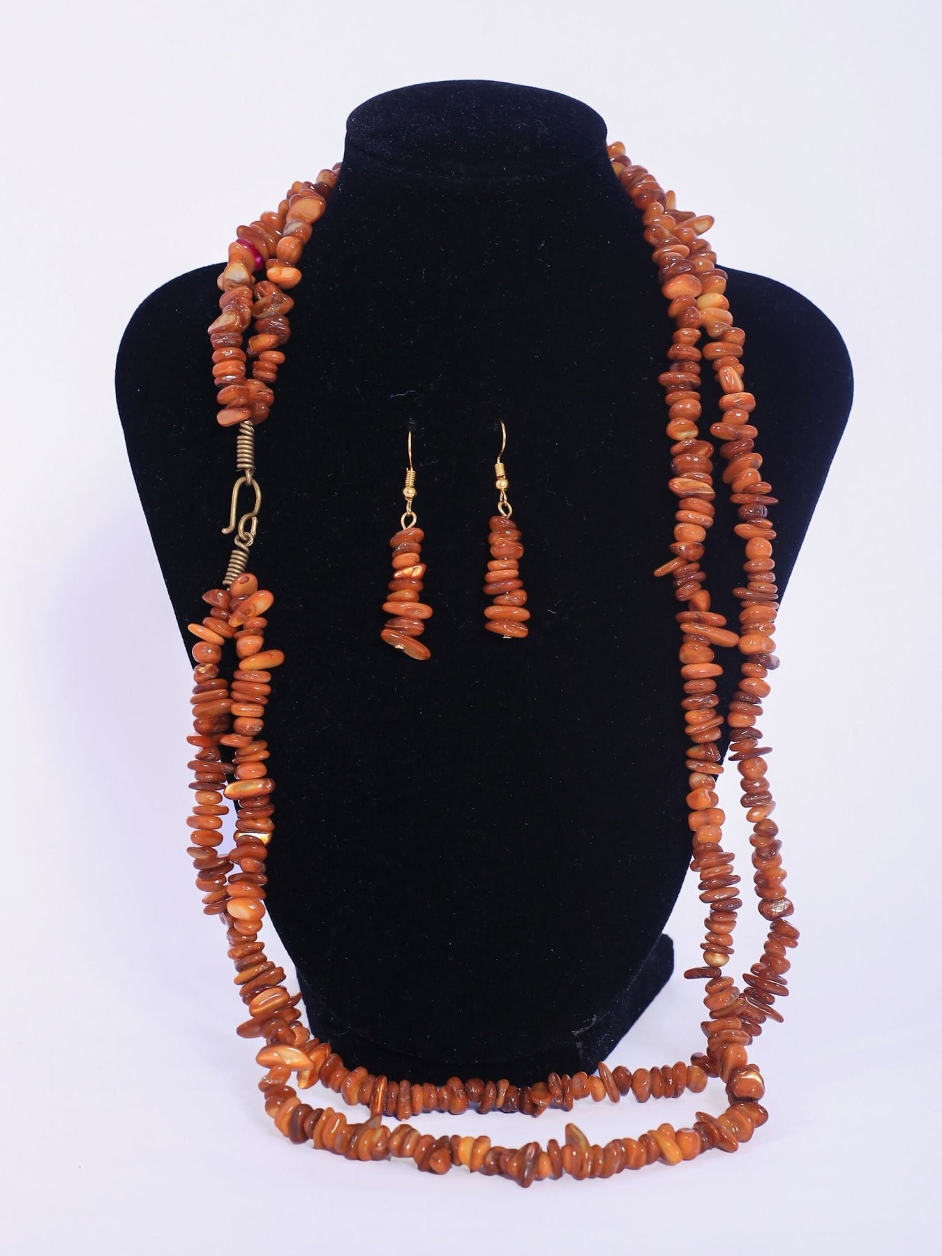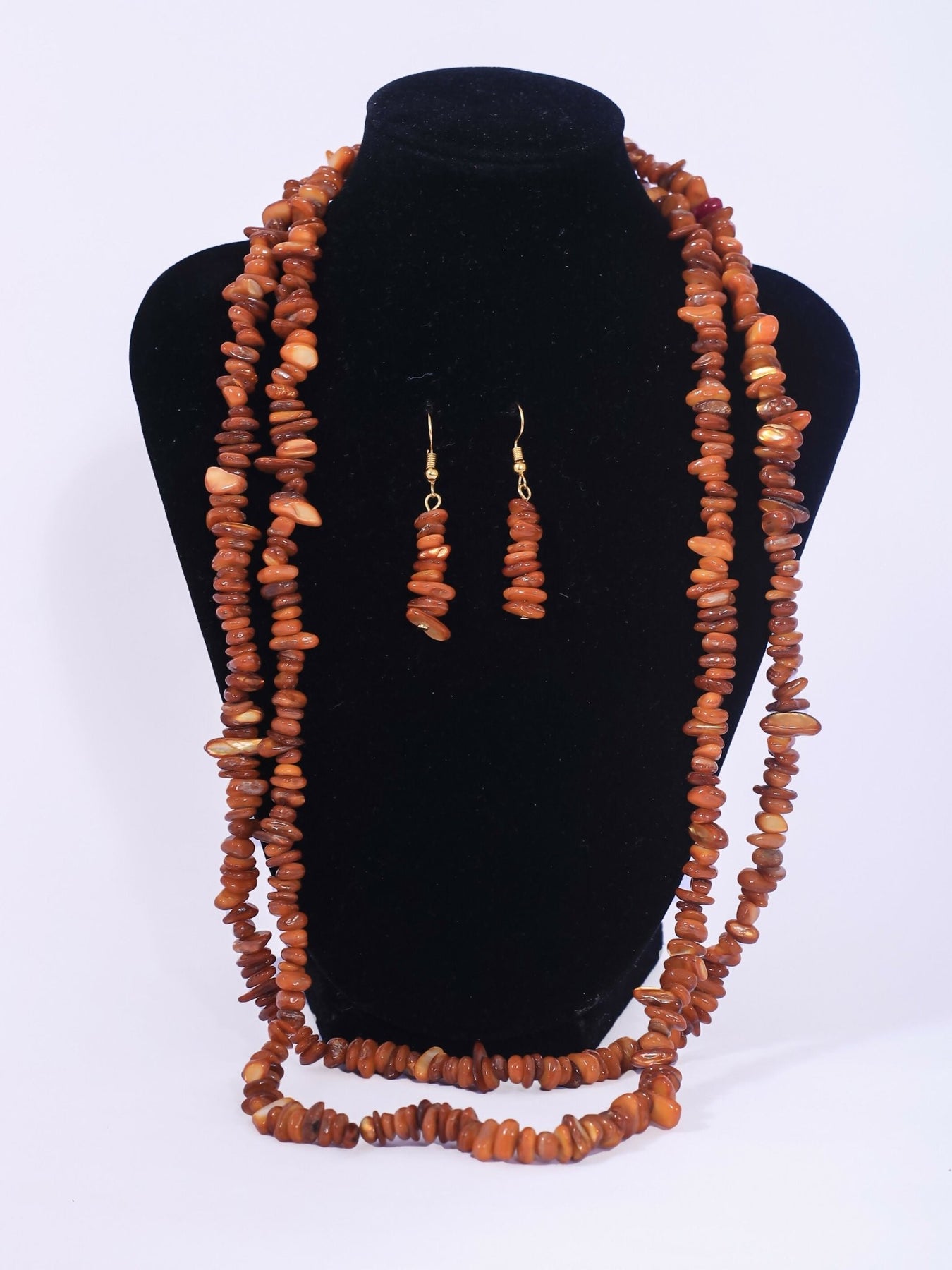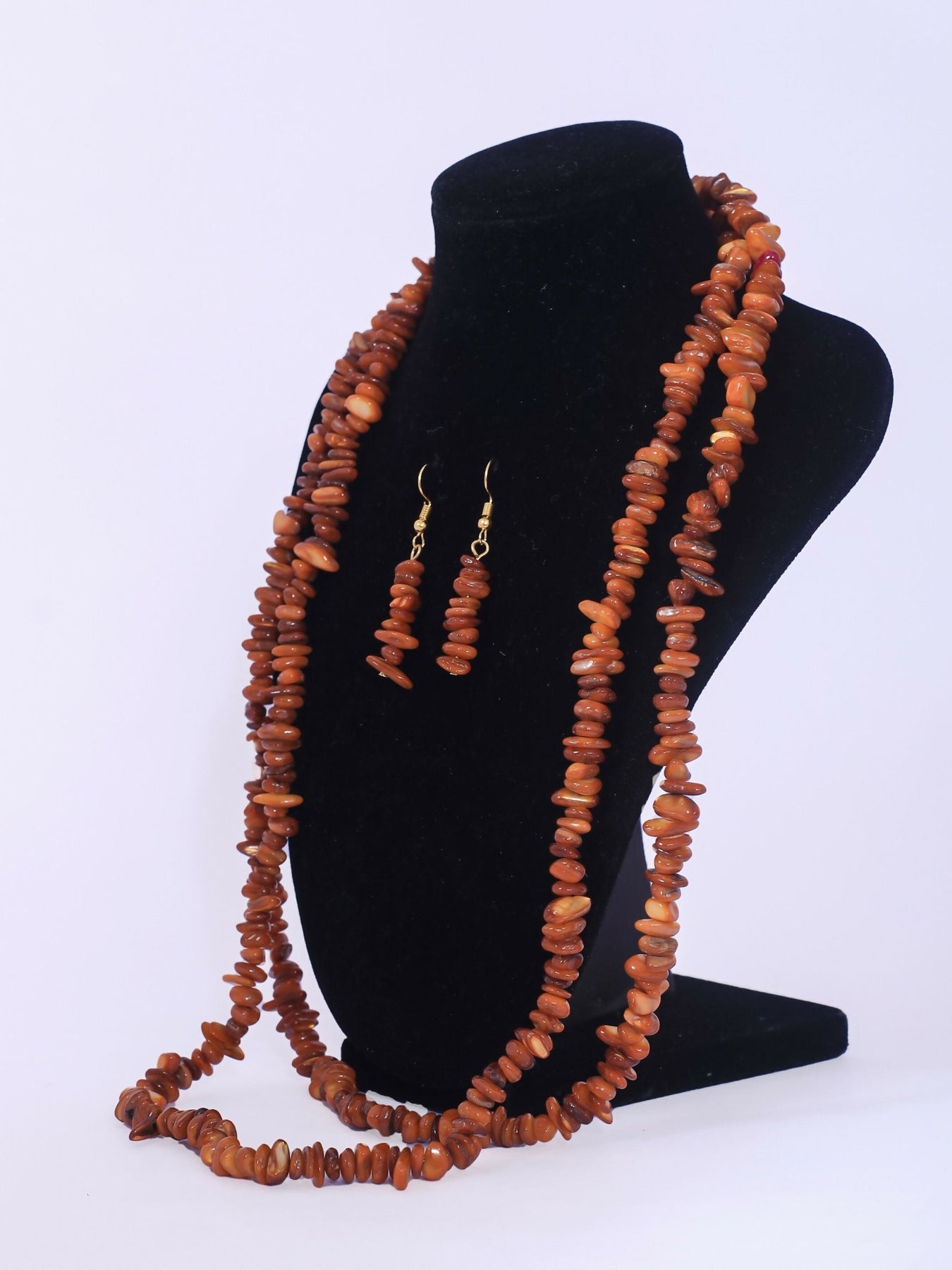 • Double layered knecklace & matching pair of earrings. Flawless &  unblemished ceramic  beads.
