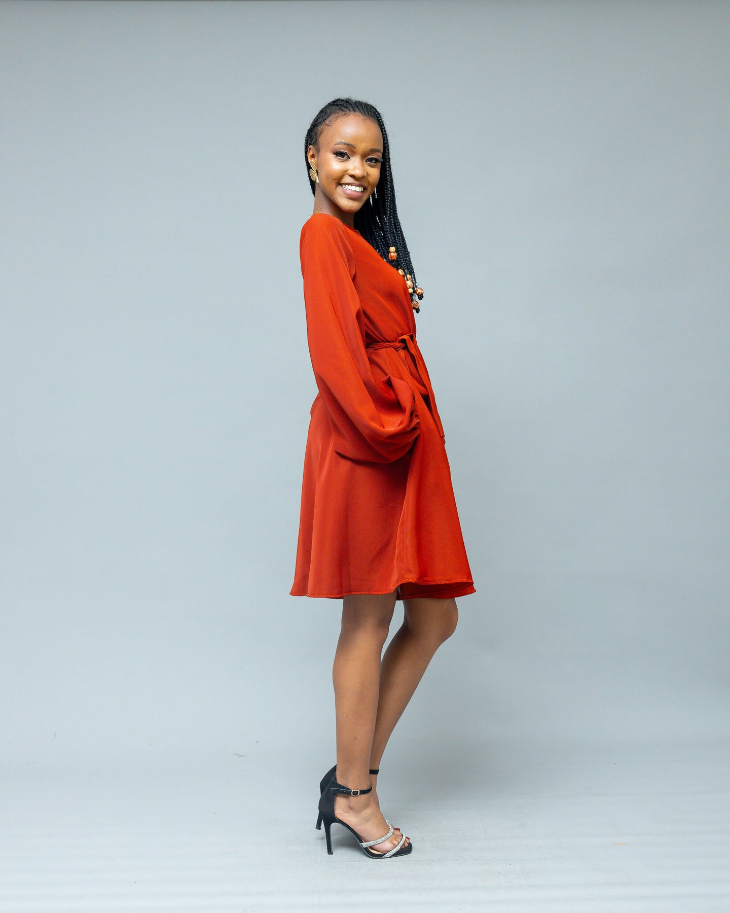 Meet your new favorite staple;  the Rust Long-Sleeved Short Shift Dress, where understated sophistication meets effortless comfort. Crafted in a rich rust hue that flatters every skin tone, this dress radiates warmth and elegance with every step.