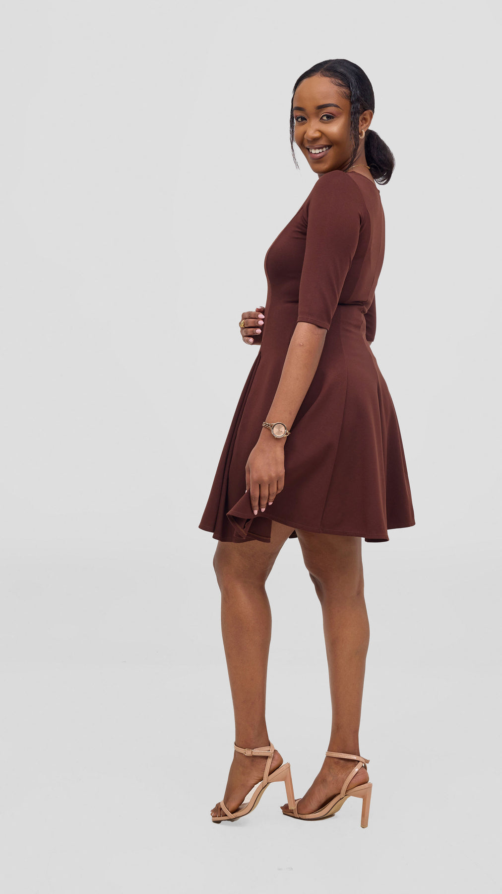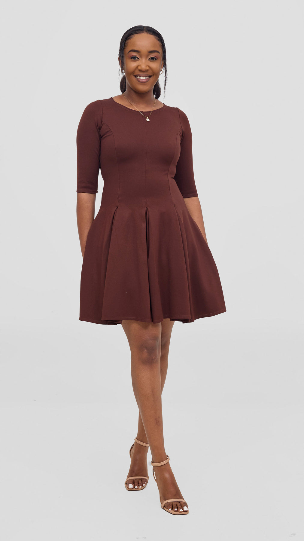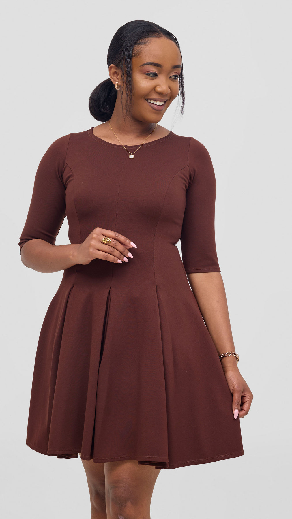 Vivo Aleri A-Line Pleated Dress - Chocolate