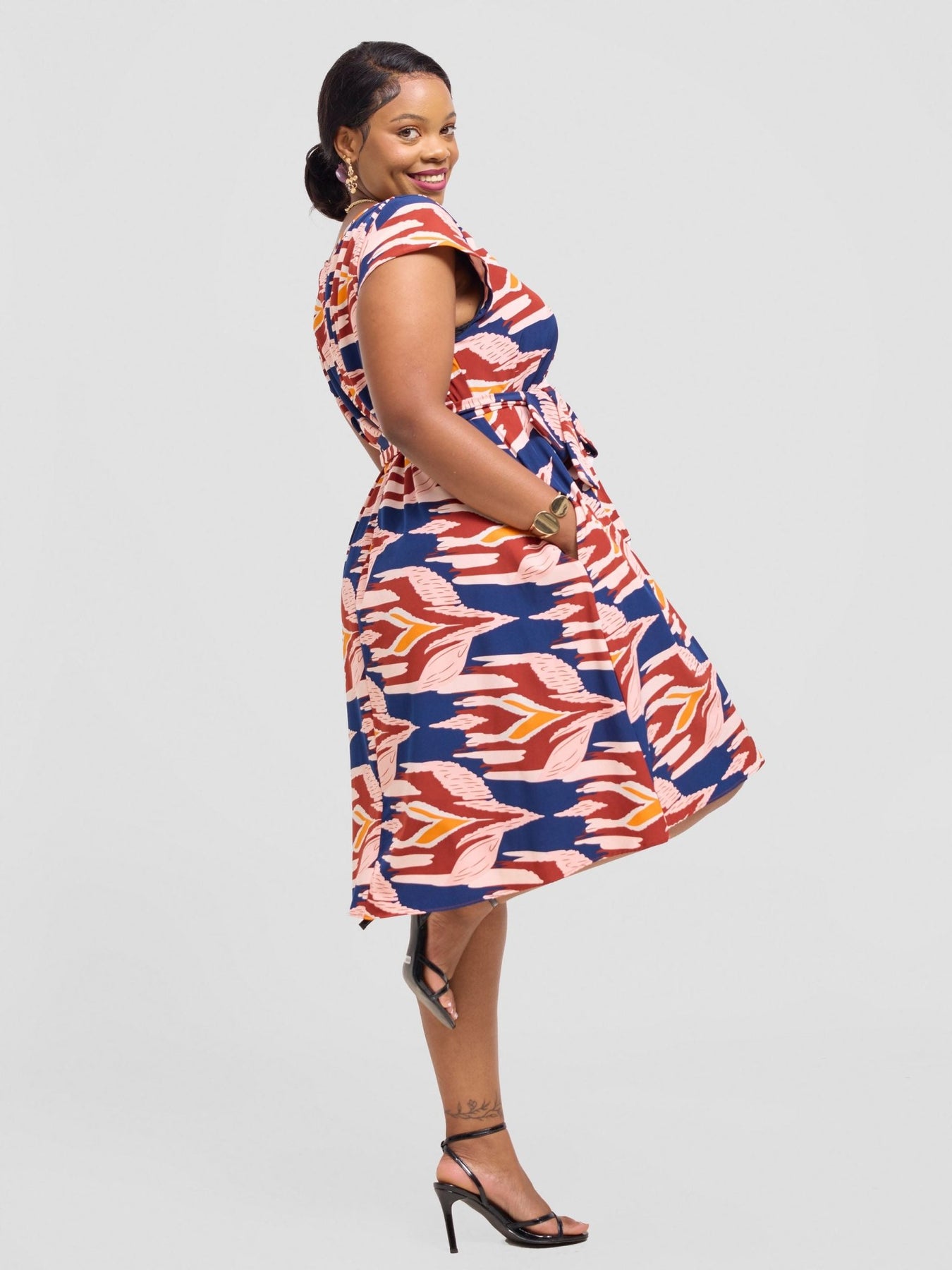 Vivo Basic Cap Sleeve Knee Length Tent Dress - Peach / Maroon Print - Shopzetu
