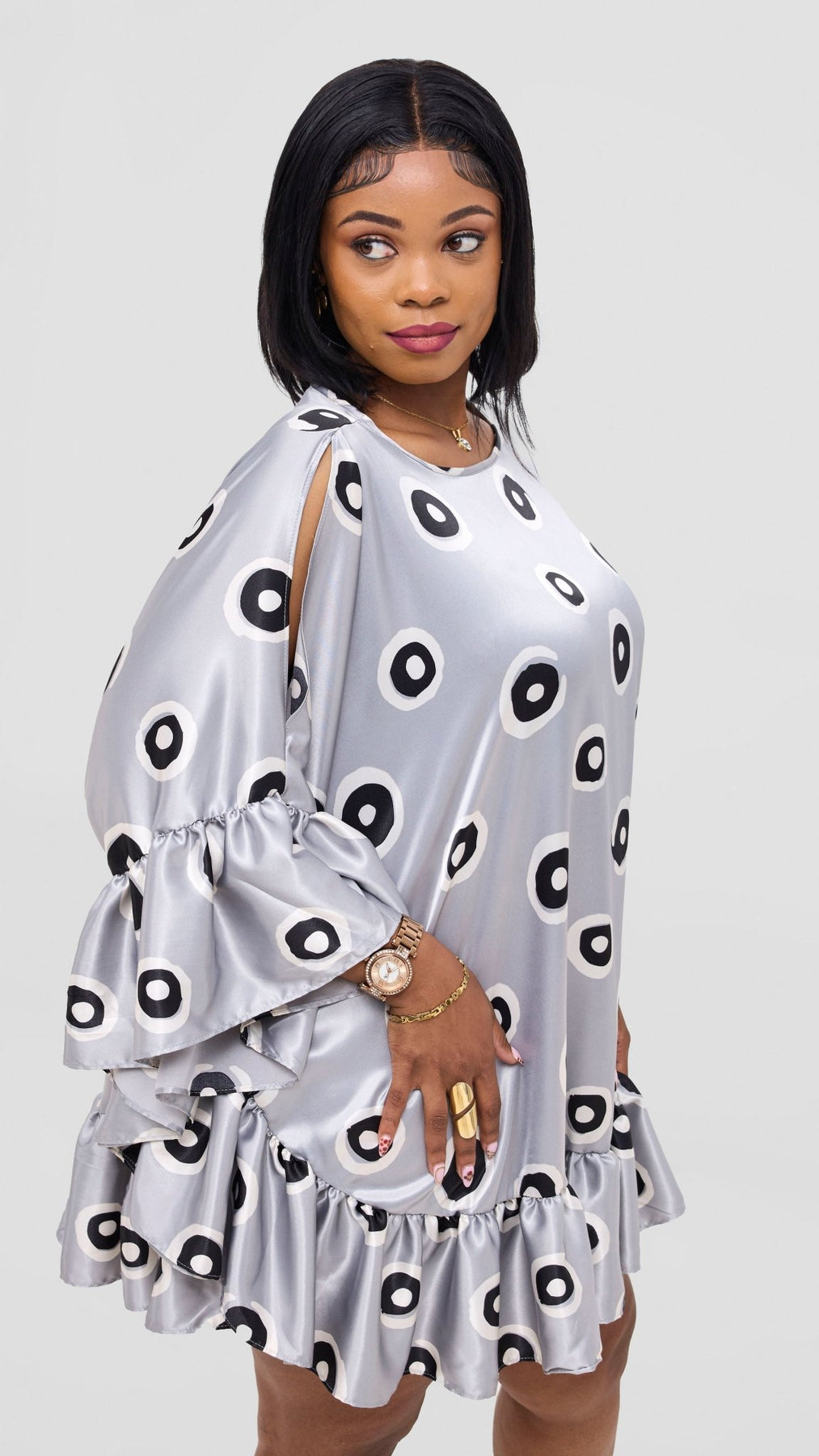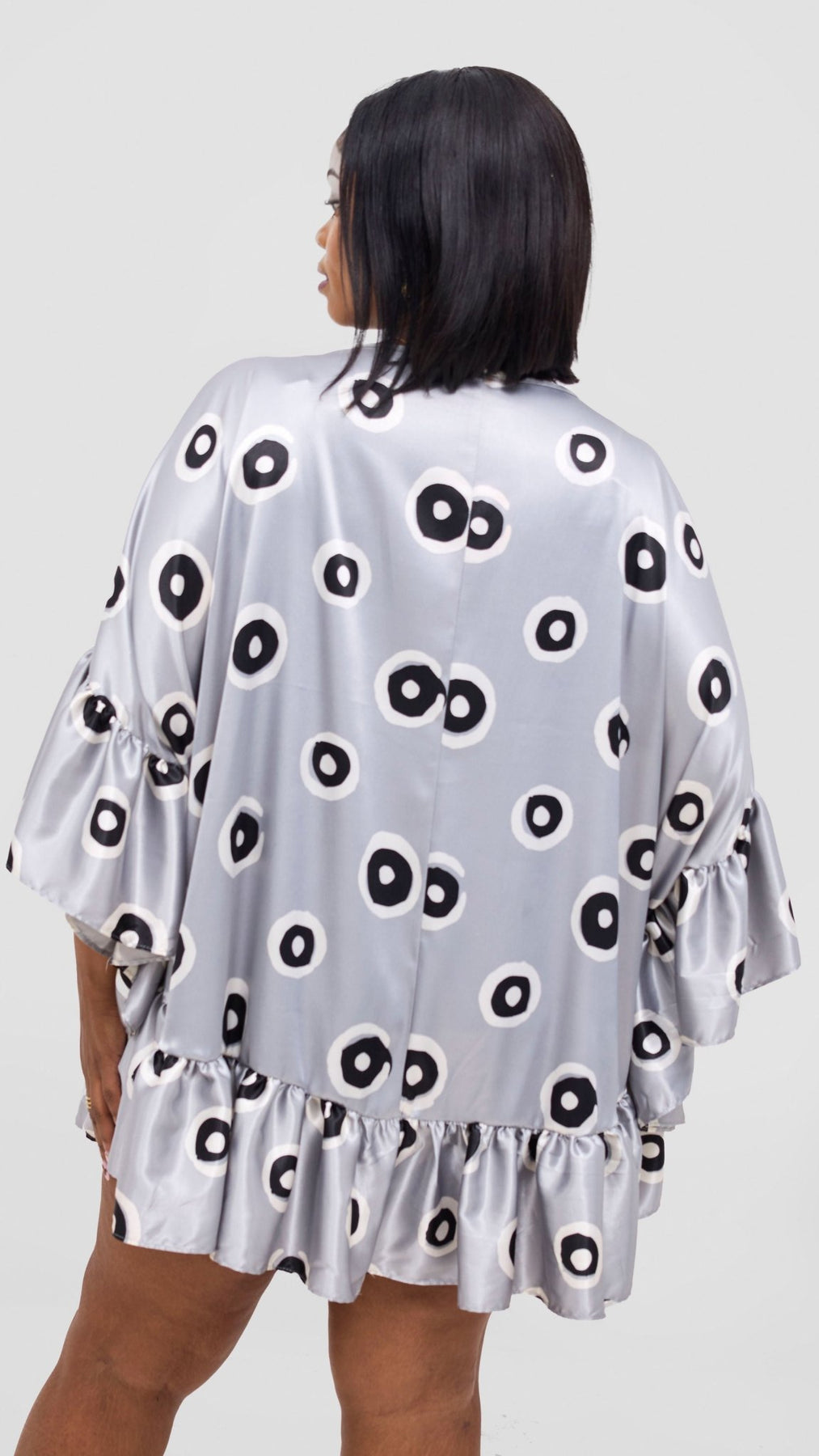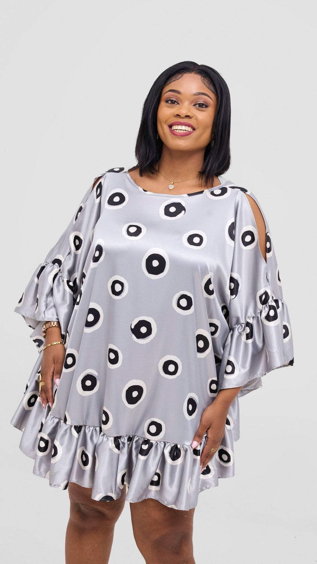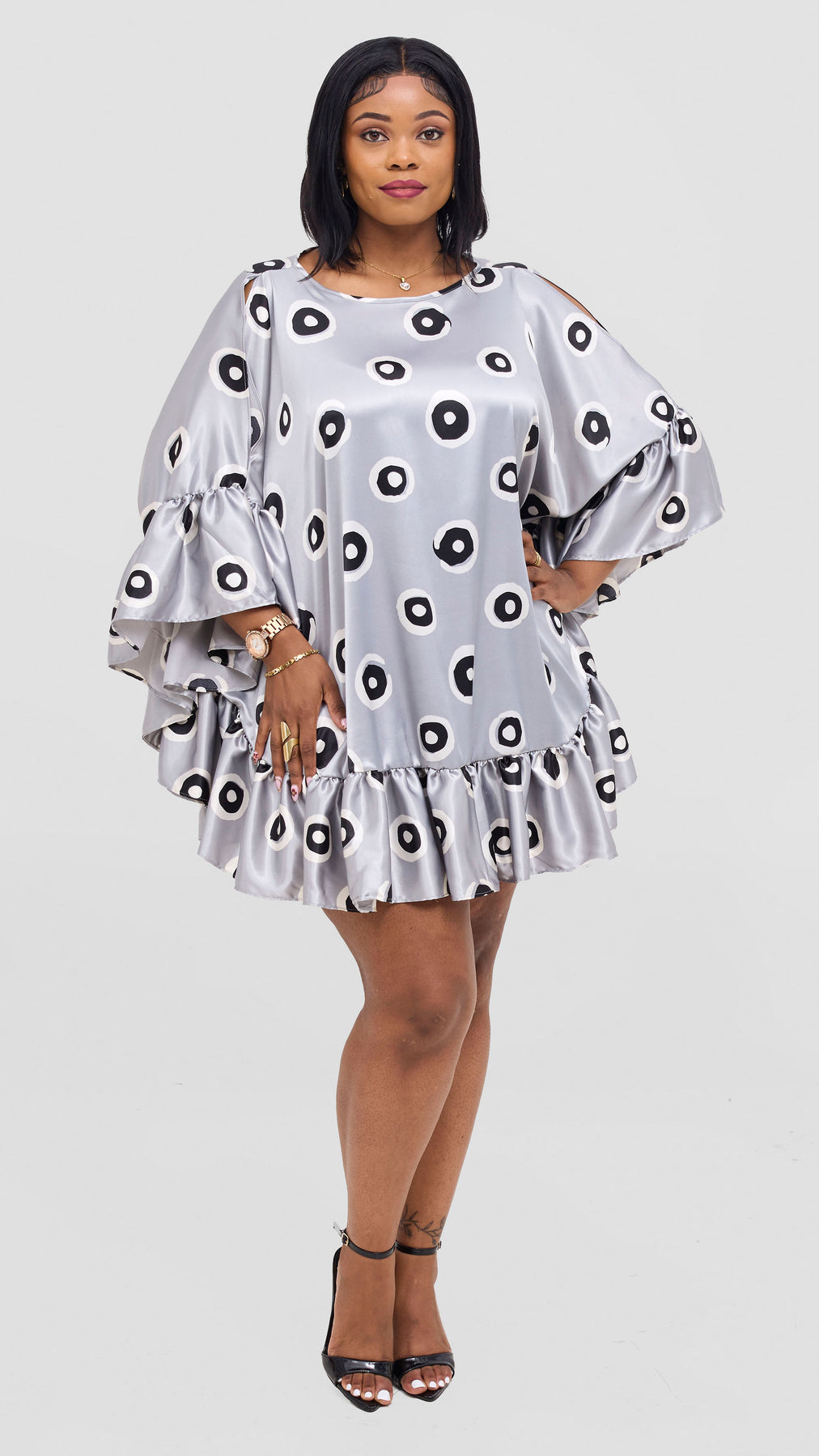 Vivo Chidii Tunic Dress With Frills - Grey / White Print - Shopzetu