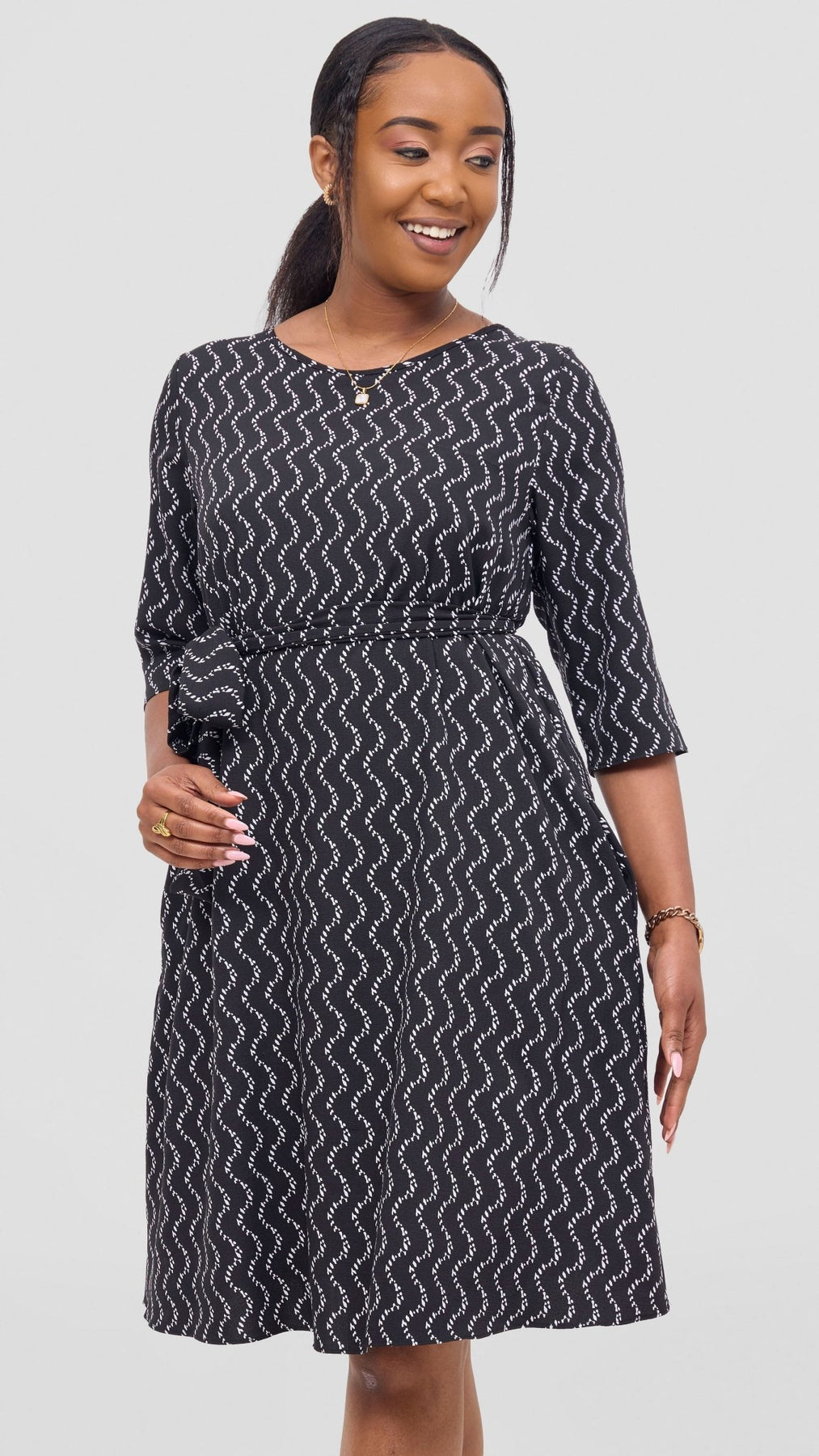 Elevate your wardrobe with the Vivo Laika 3/4 Sleeve Tent Dress in a striking black and white print. Its relaxed silhouette and three-quarter sleeves offer effortless sophistication and comfort for any occasion. The flowy design allows ease of movement while maintaining a polished, modern look. Perfect for day-to-night wear, this dress combines timeless style with contemporary ease.