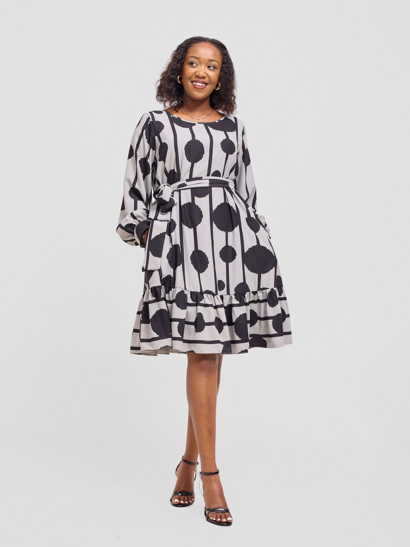 Vivo Serwa Tent Dress - Ash Grey / Black Doti Print