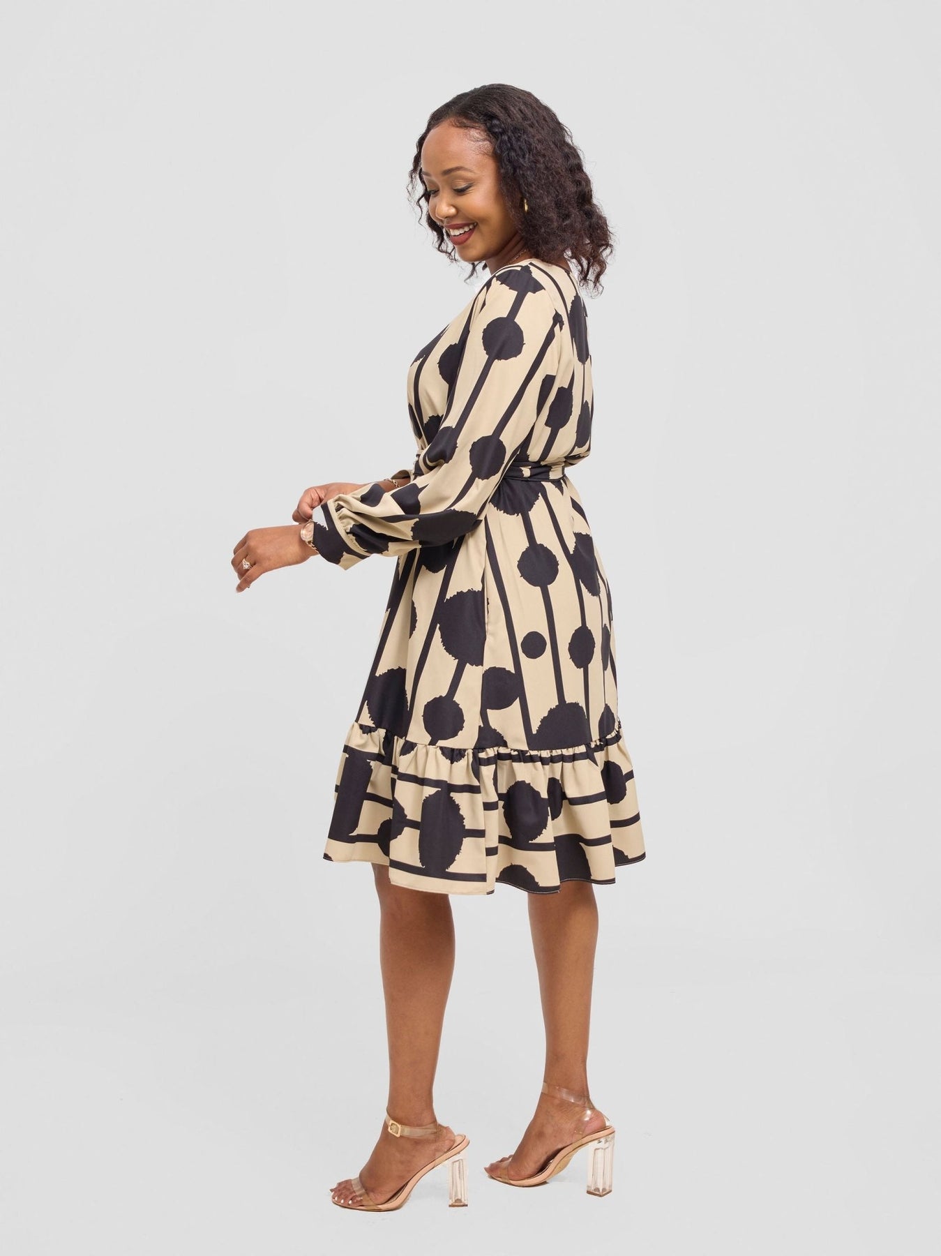 Color: Taupe / Black Doti Print
