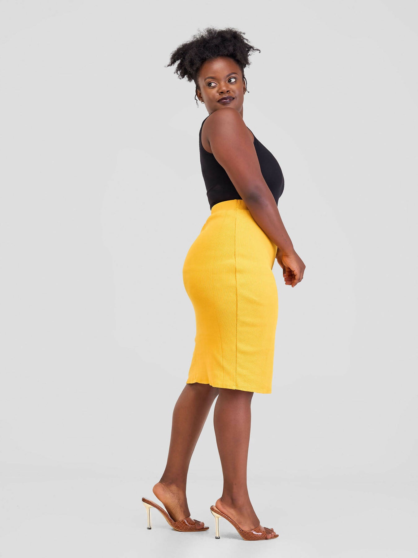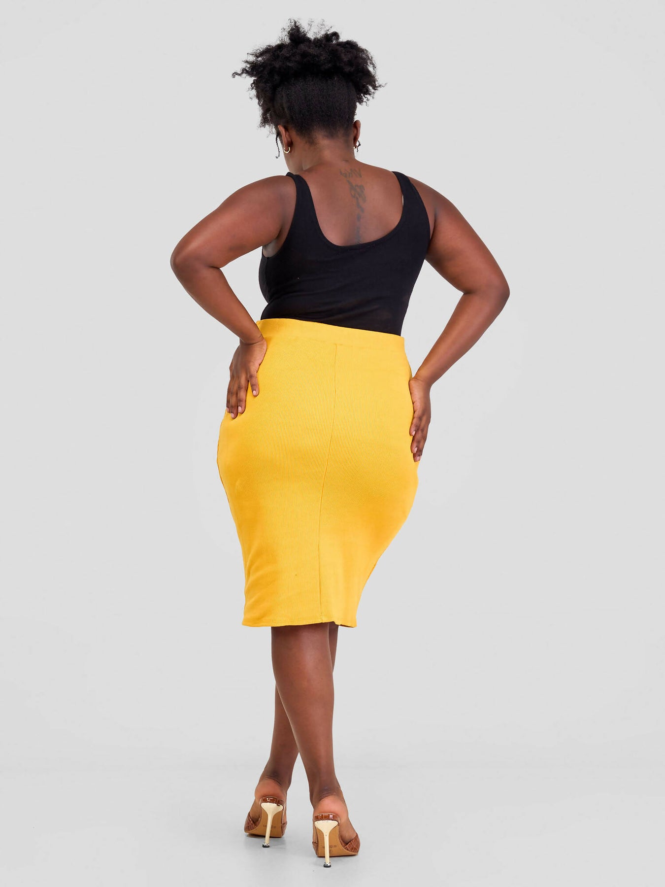 Product Details: This knee length Skin, penciled skirt is made of soft stretchy ribbed material. It has a round V-neck design.