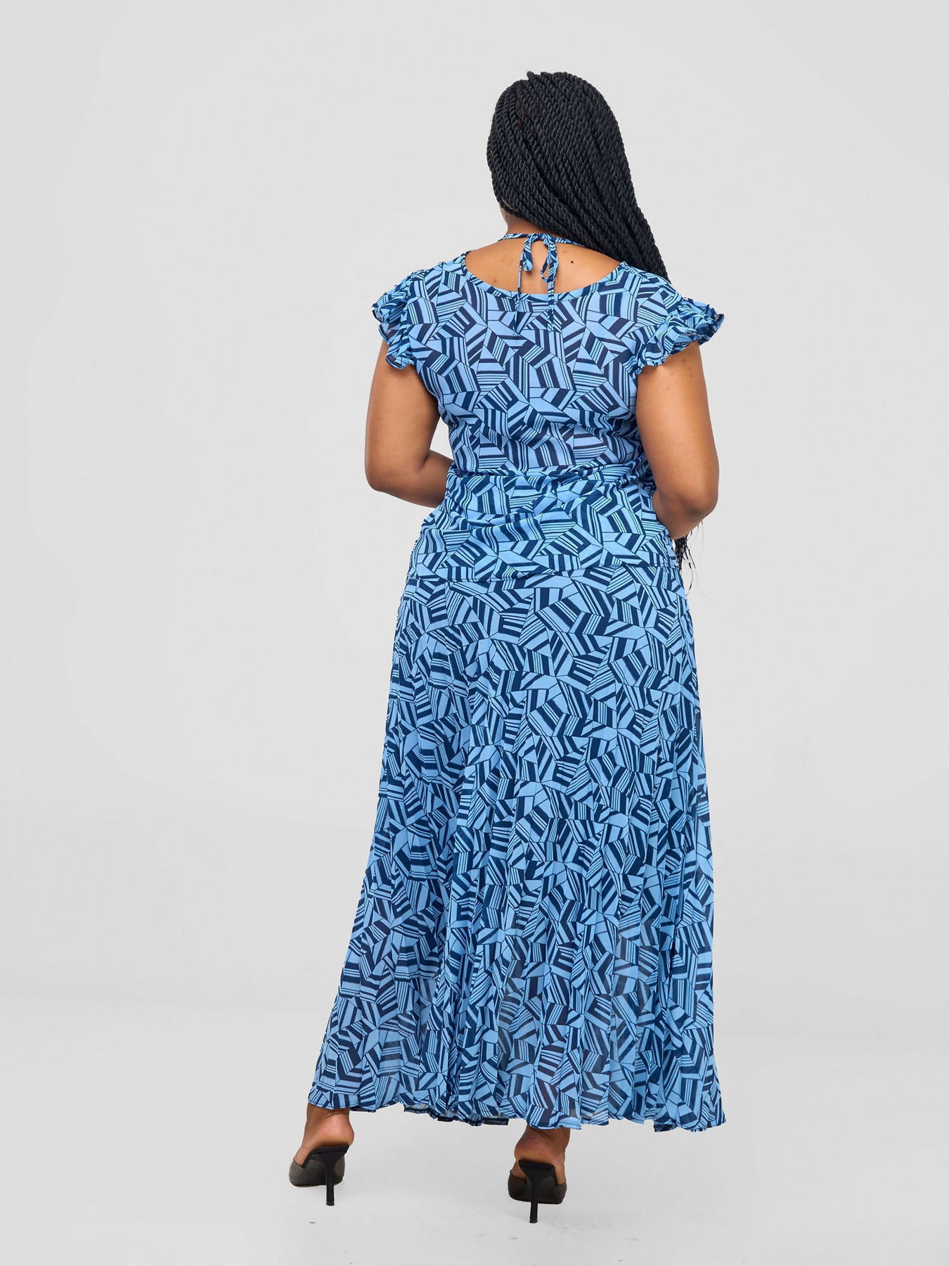 his stunning two-piece set features a bold geometric pattern that adds a modern twist to a classic silhouette. The pleated skirt flows effortlessly, creating a flattering and elegant look, while the matching top completes the set with a coordinated, polished feel.