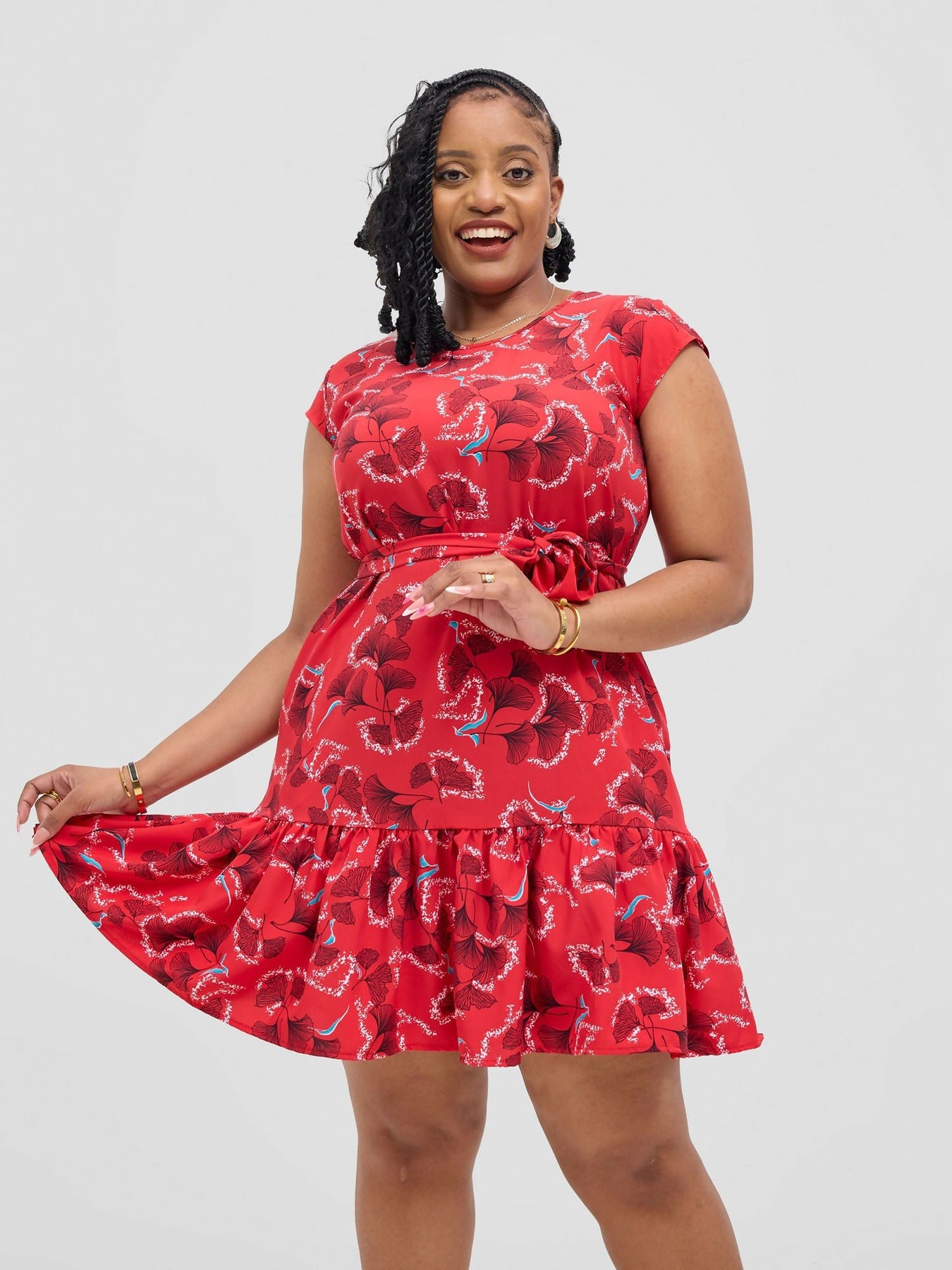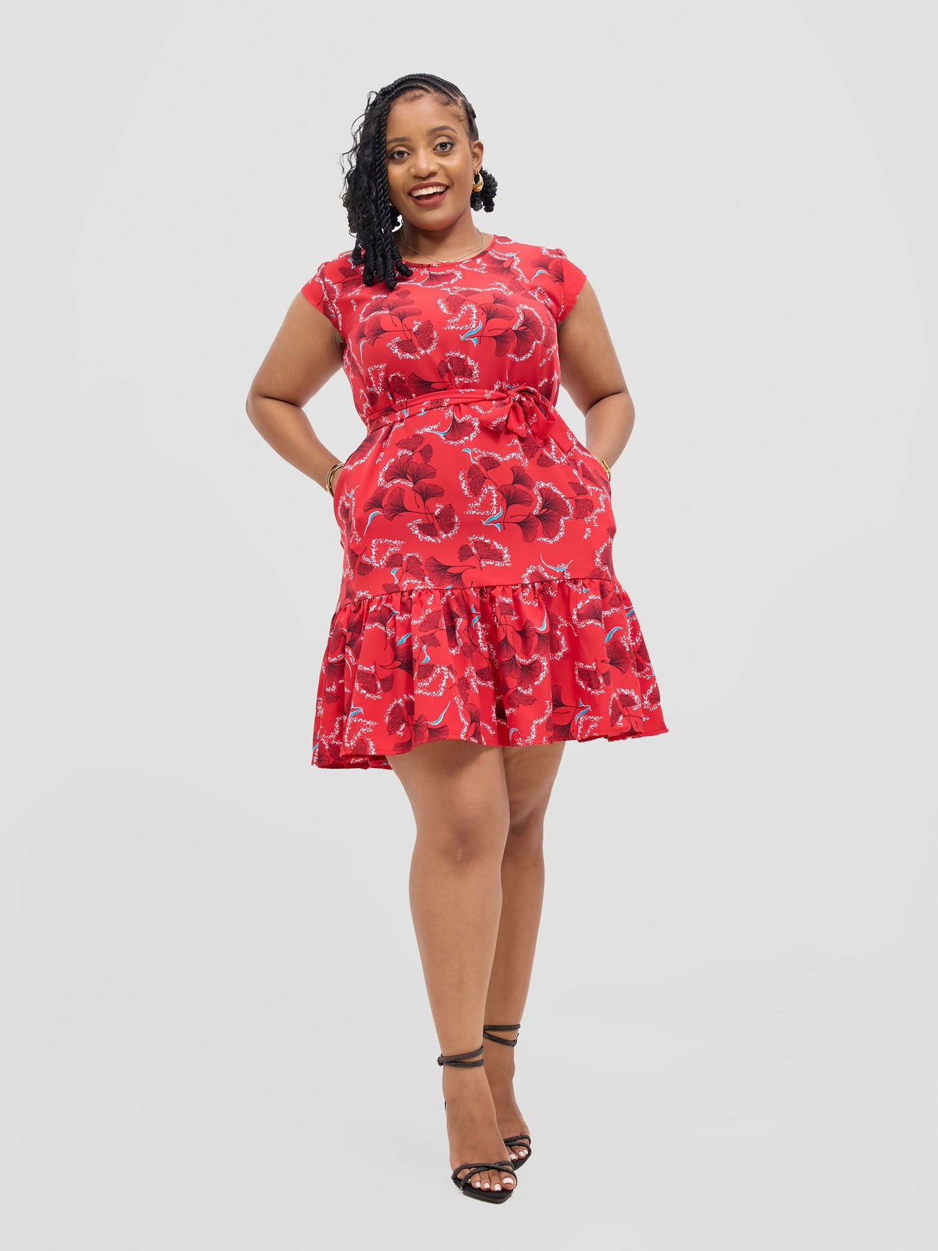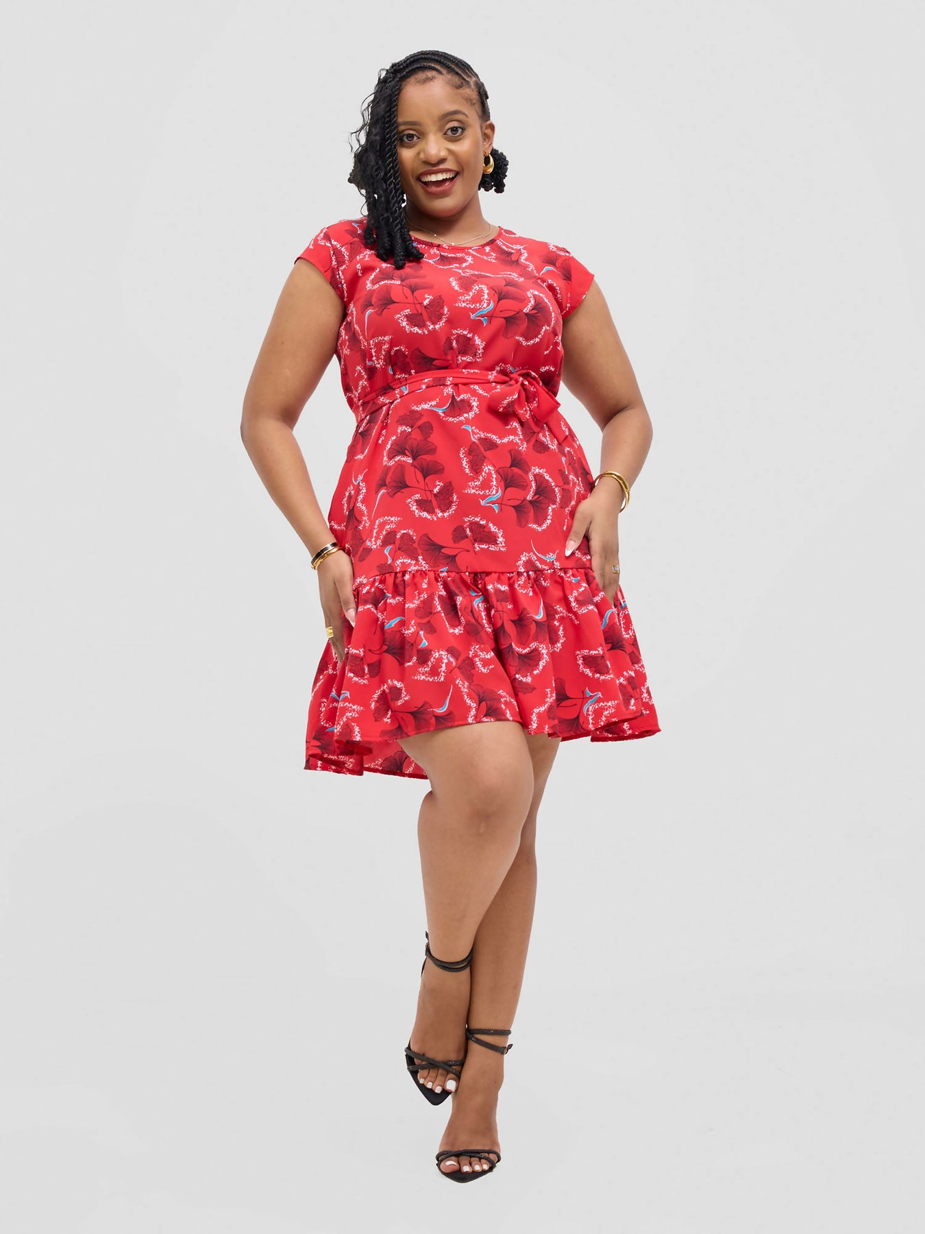 Lizola Jana Shift Dress - Red flowered - Shopzetu
