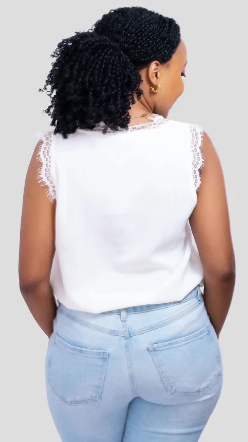 The Fashion Frenzy Lace Trim Sleeveless Top – White