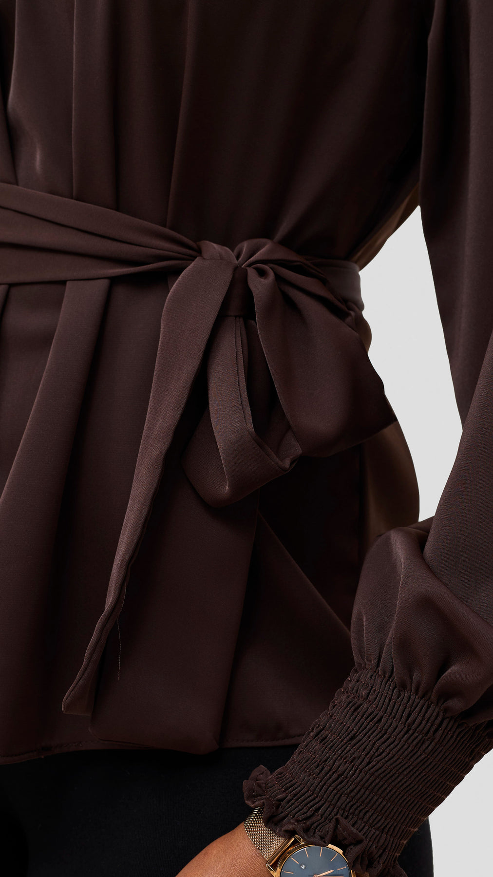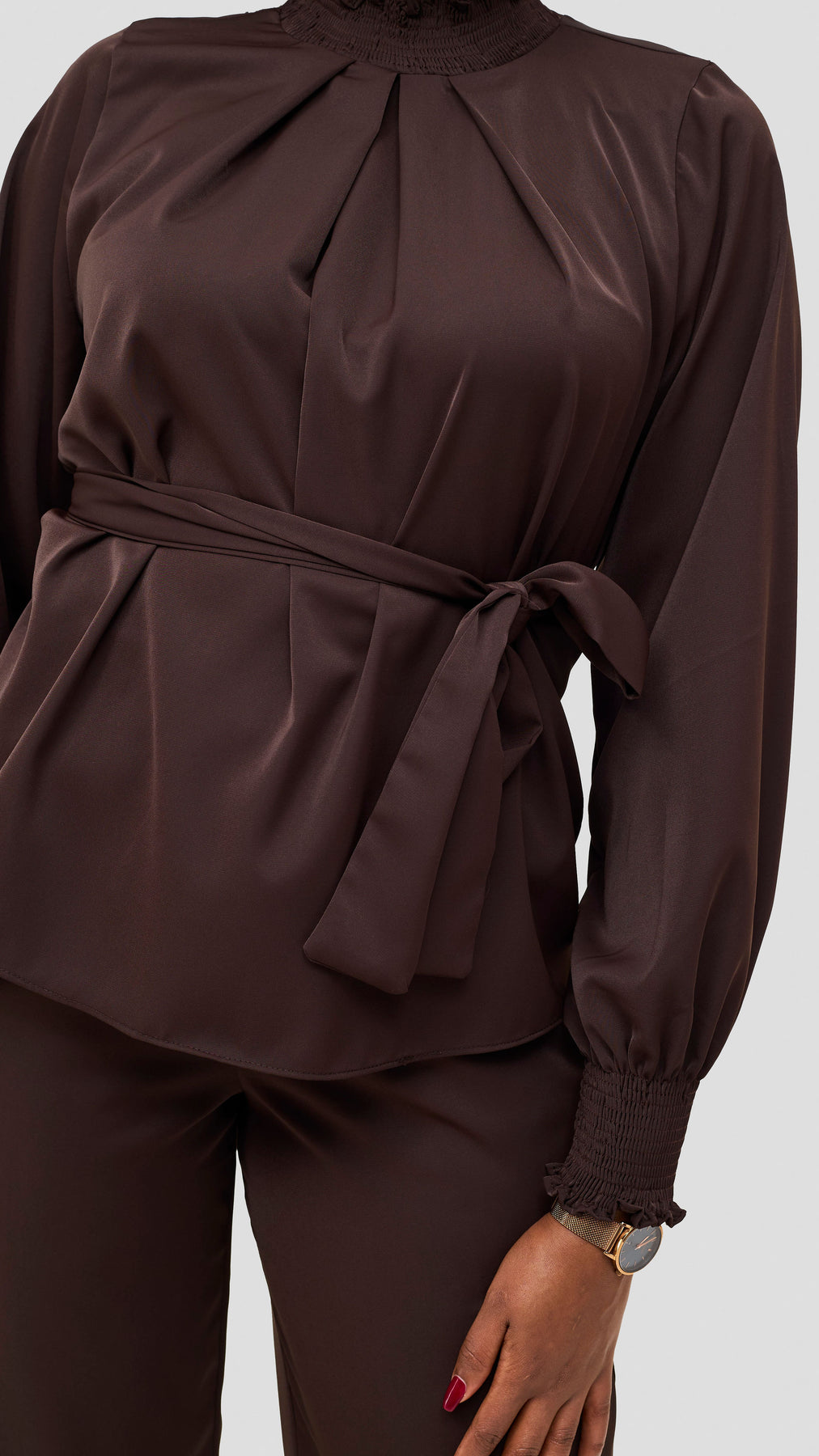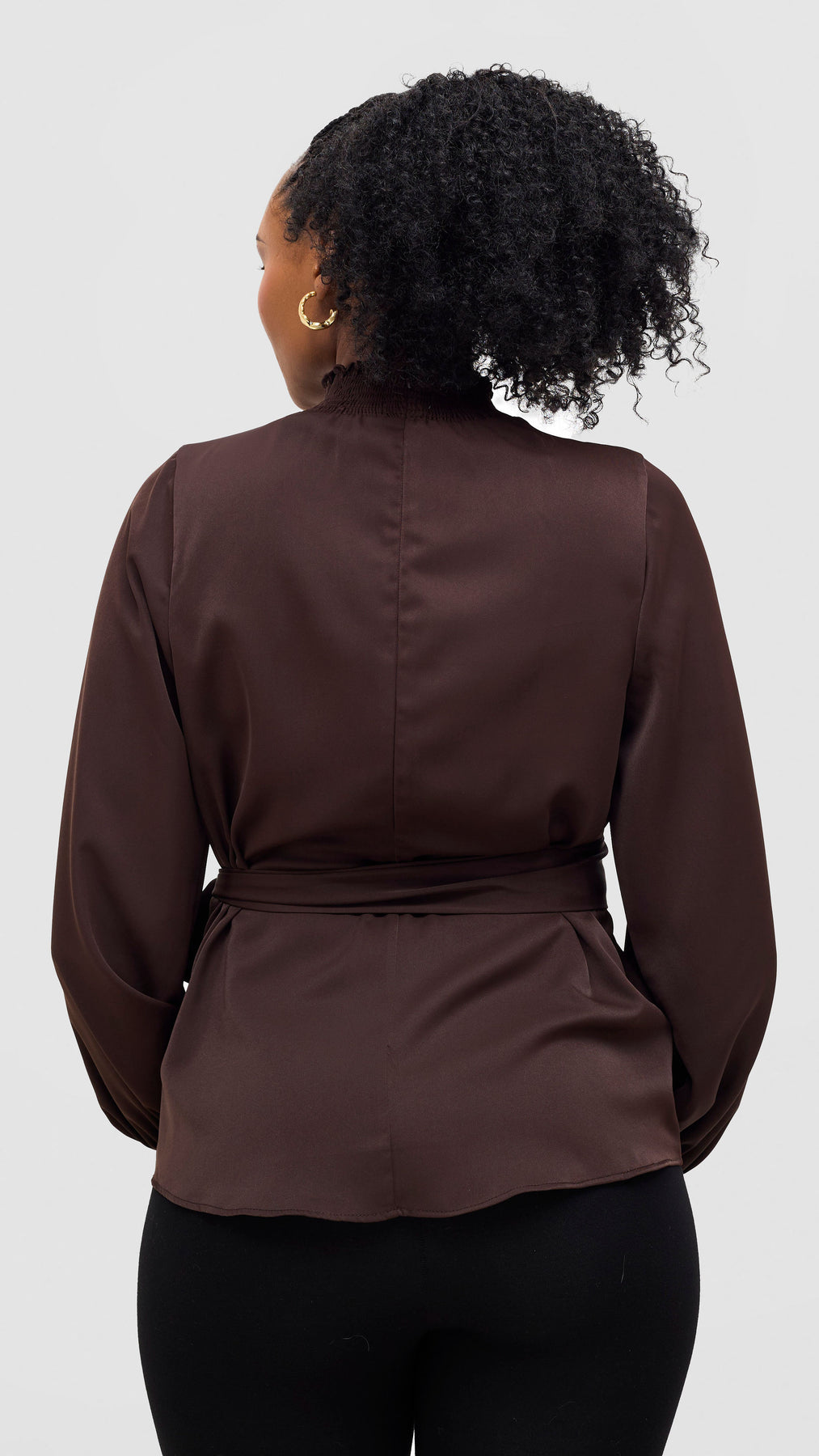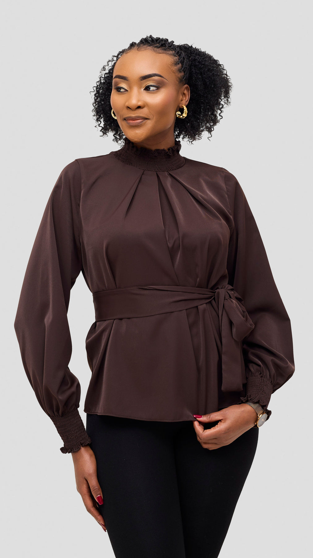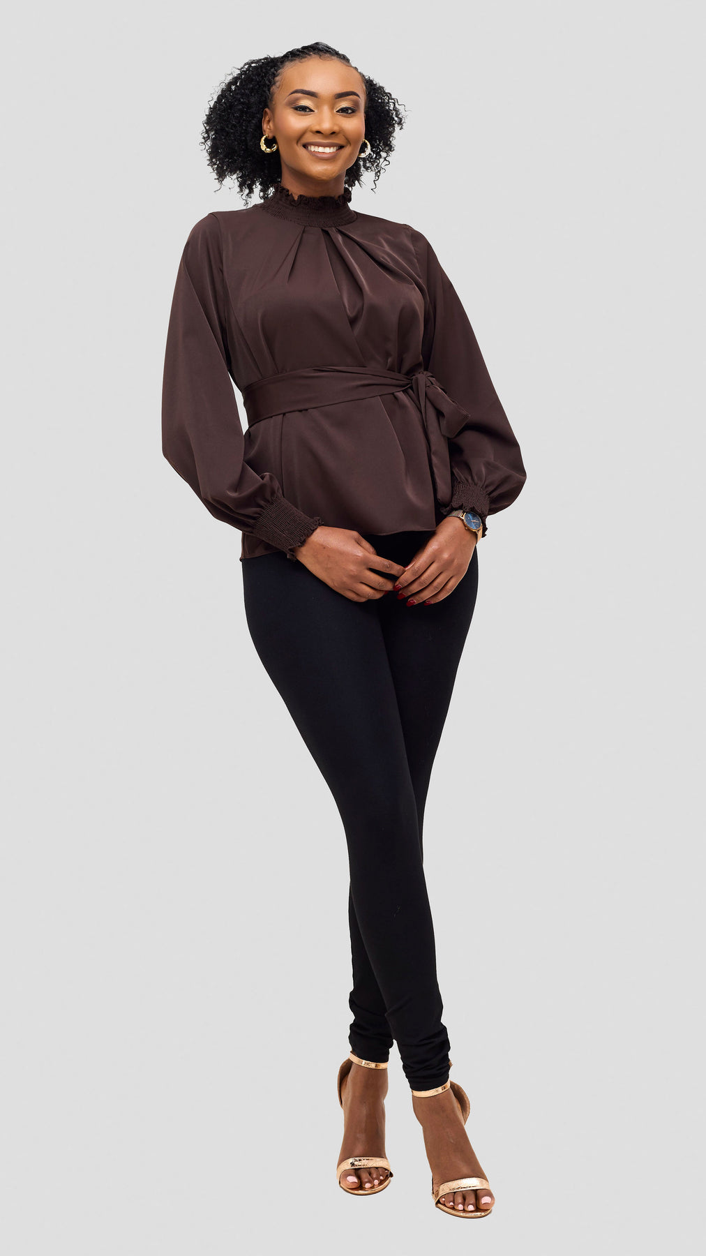 The Vivo Ayah Bishop Sleeve Mock Neck Top in chocolate offers a stylish and comfortable fit that supports your confidence throughout the day. Featuring elegant bishop sleeves and a chic mock neck, this top combines timeless design with everyday versatility to enhance your wardrobe effortlessly.