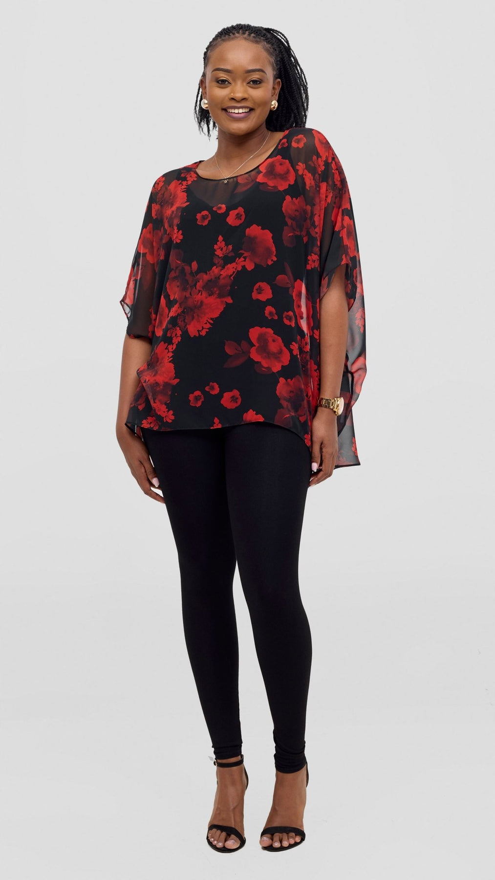 The Vivo Ayana Wide High Low Top in Black Red Print combines contemporary design with comfort. Its wide silhouette and high-low hem create a modern, flattering shape, while the abstract black print adds a bold artistic touch. Crafted for versatility, this top pairs effortlessly with both casual and dressier outfits, making it a sophisticated addition to any wardrobe.
