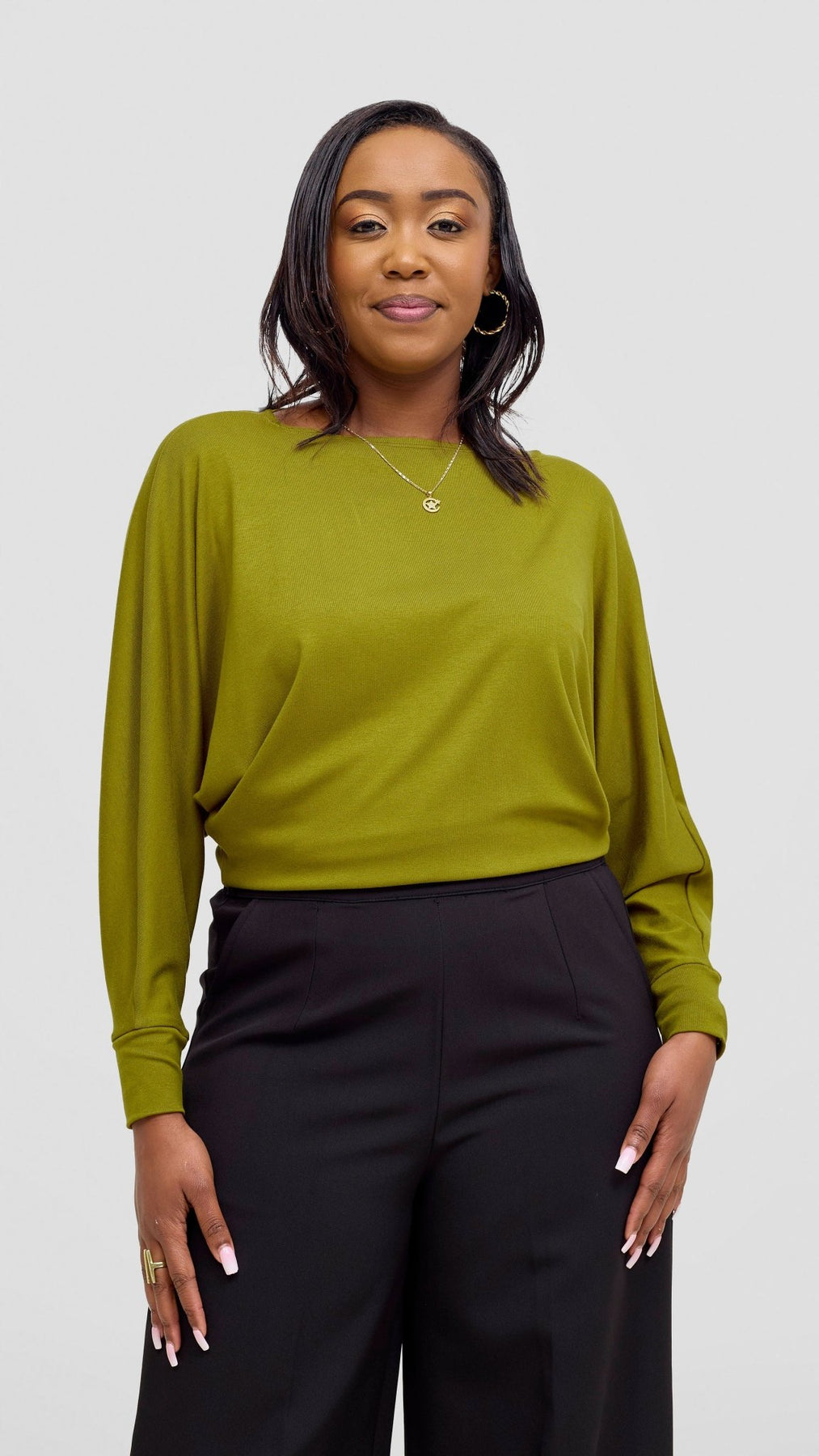 Vivo Bana Batwing Top - Dark Olive - Shopzetu