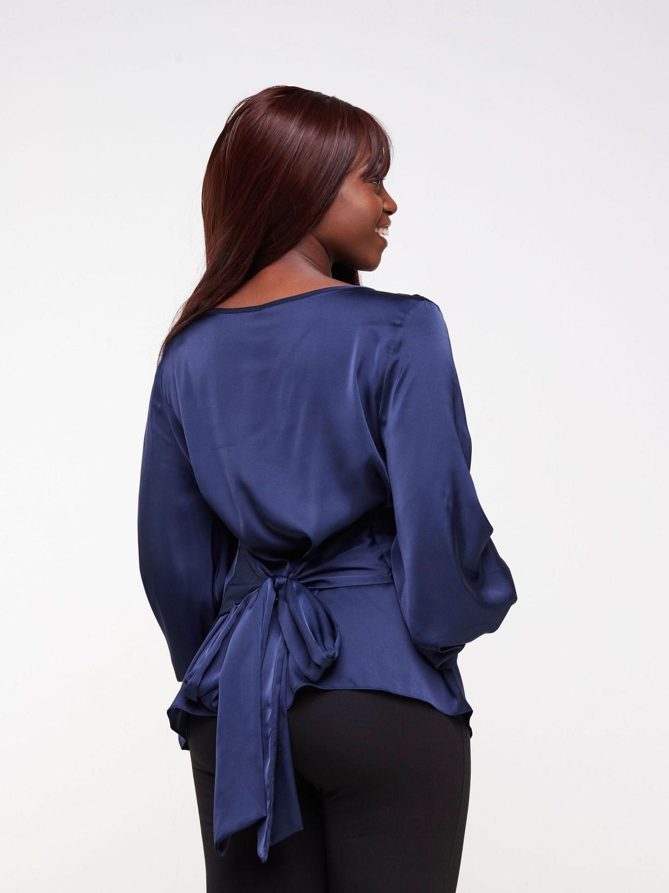 Vivo Izzy Satin Bishop Sleeve Top - Navy Blue