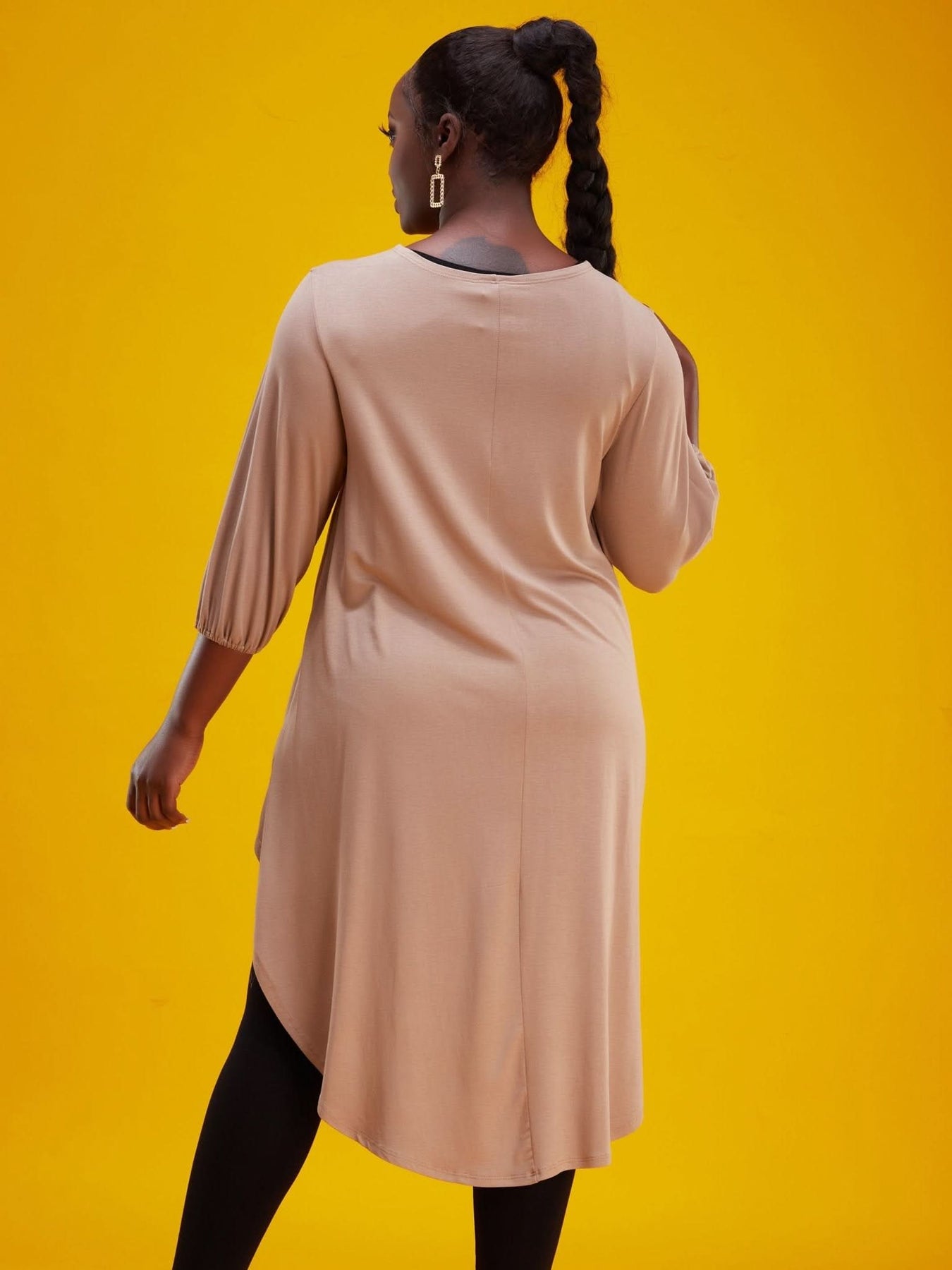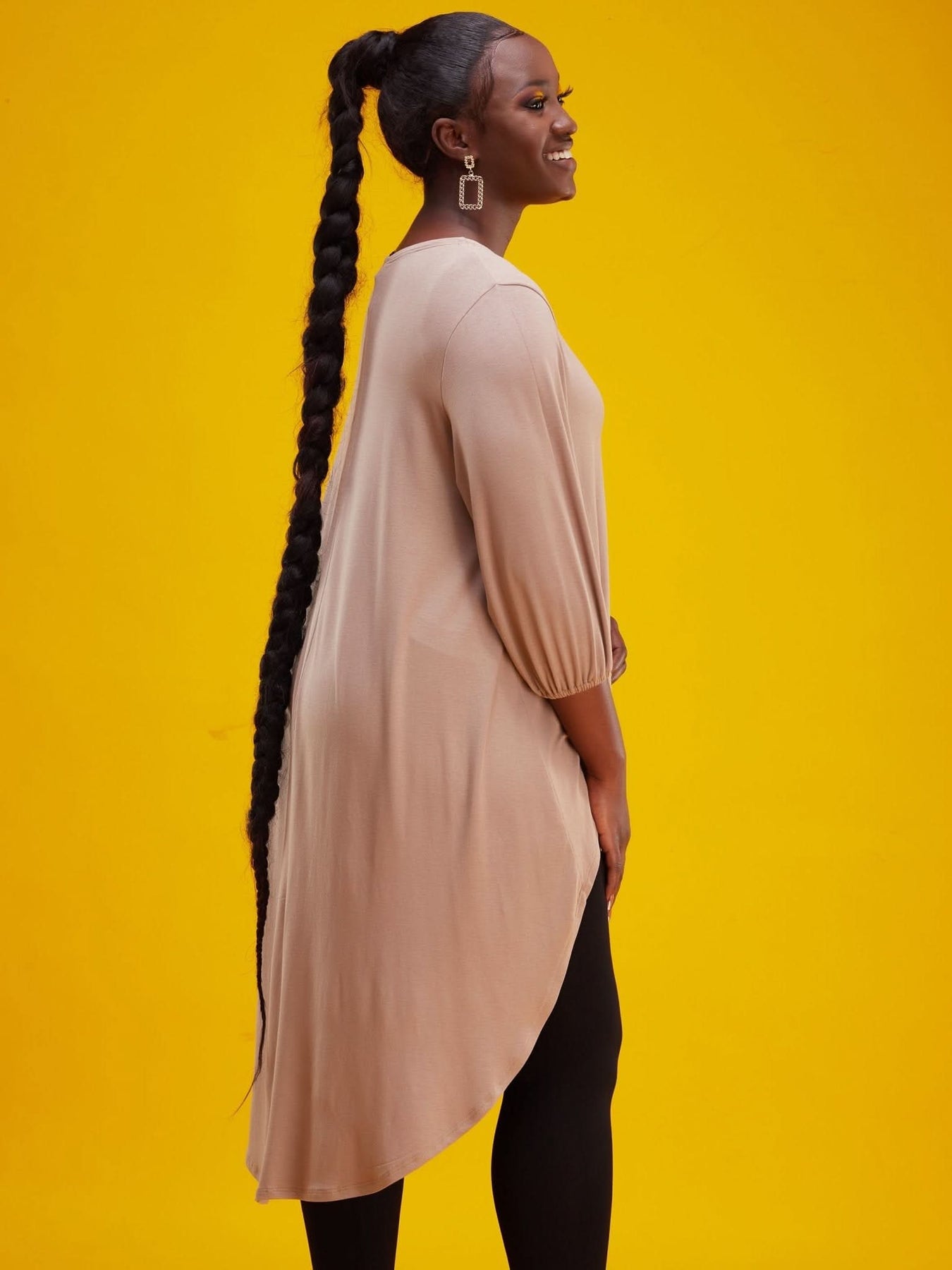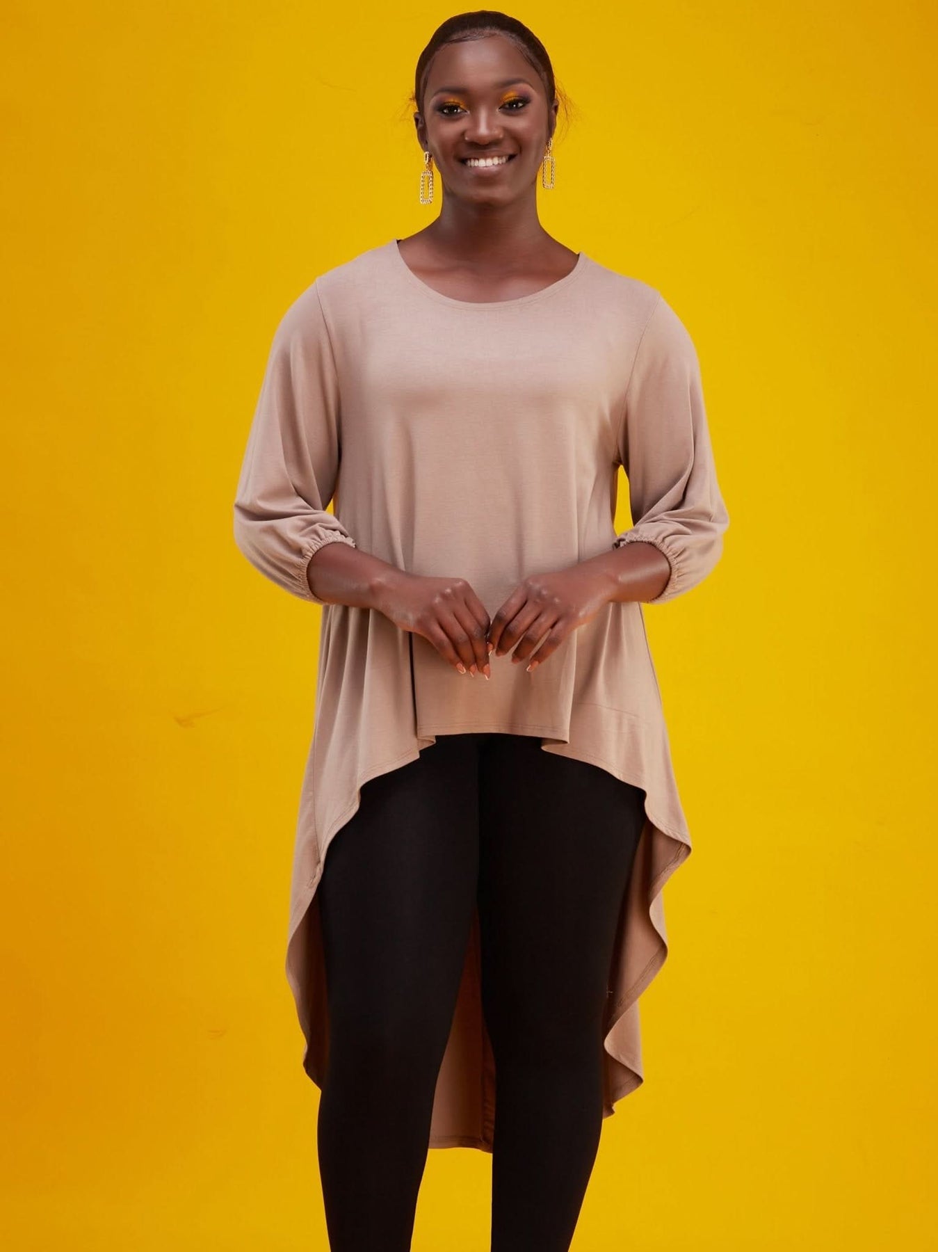 Vivo Basic Nalia High Low Jersey Top - Taupe - Shop Zetu Kenya
