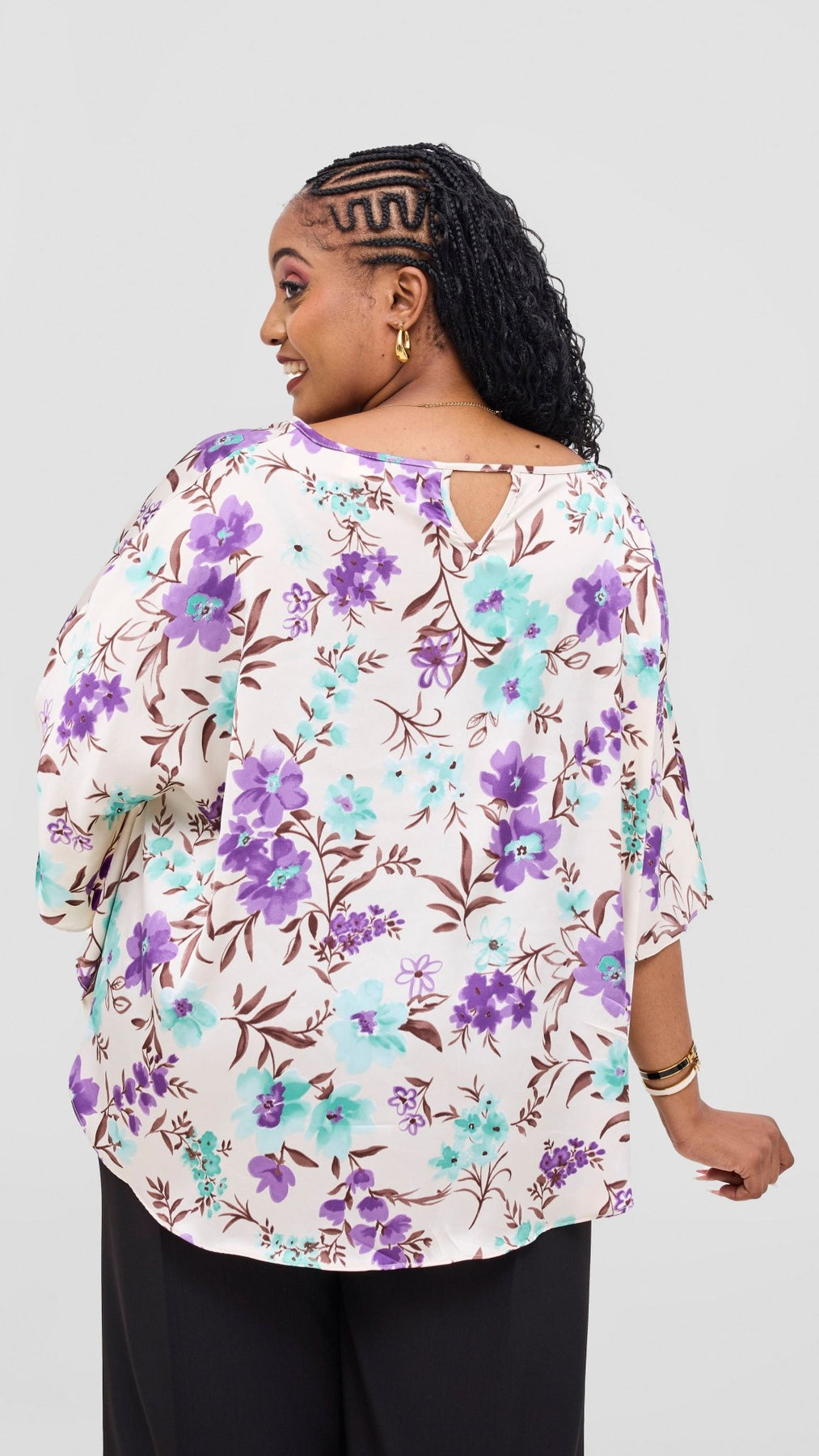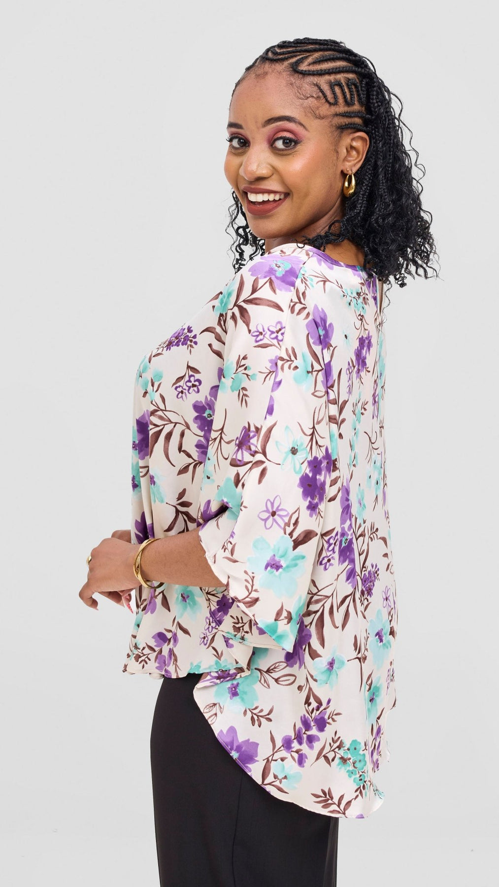 Vivo Keza  Circular Loose Top - Cream / Green Floral Print