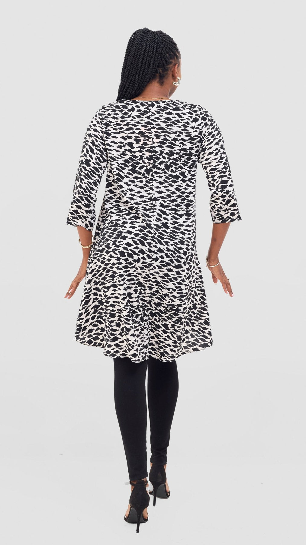 Vivo Maisha 3/4 Sleeve High Low Top - Off White / Black Print - Shopzetu