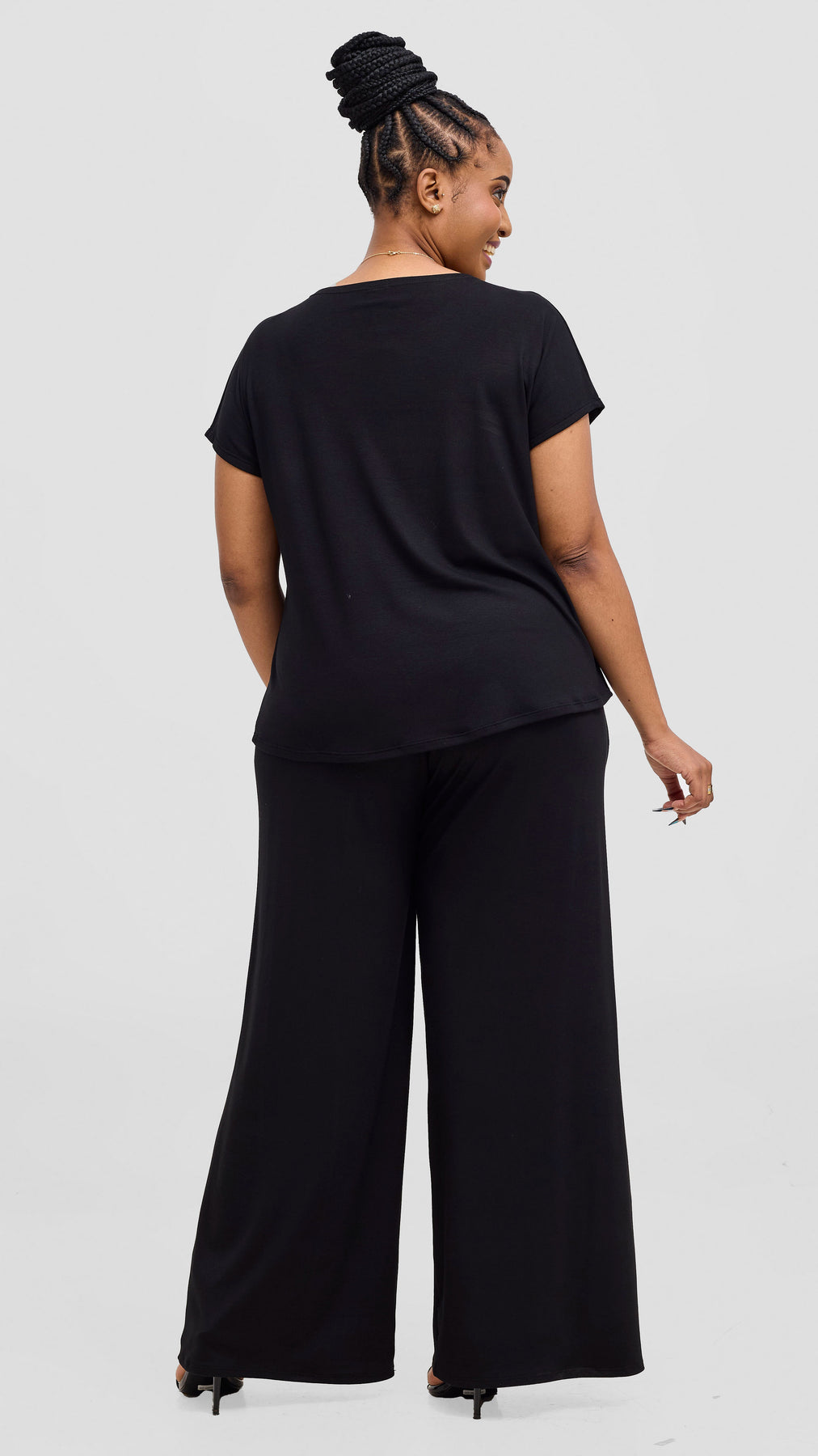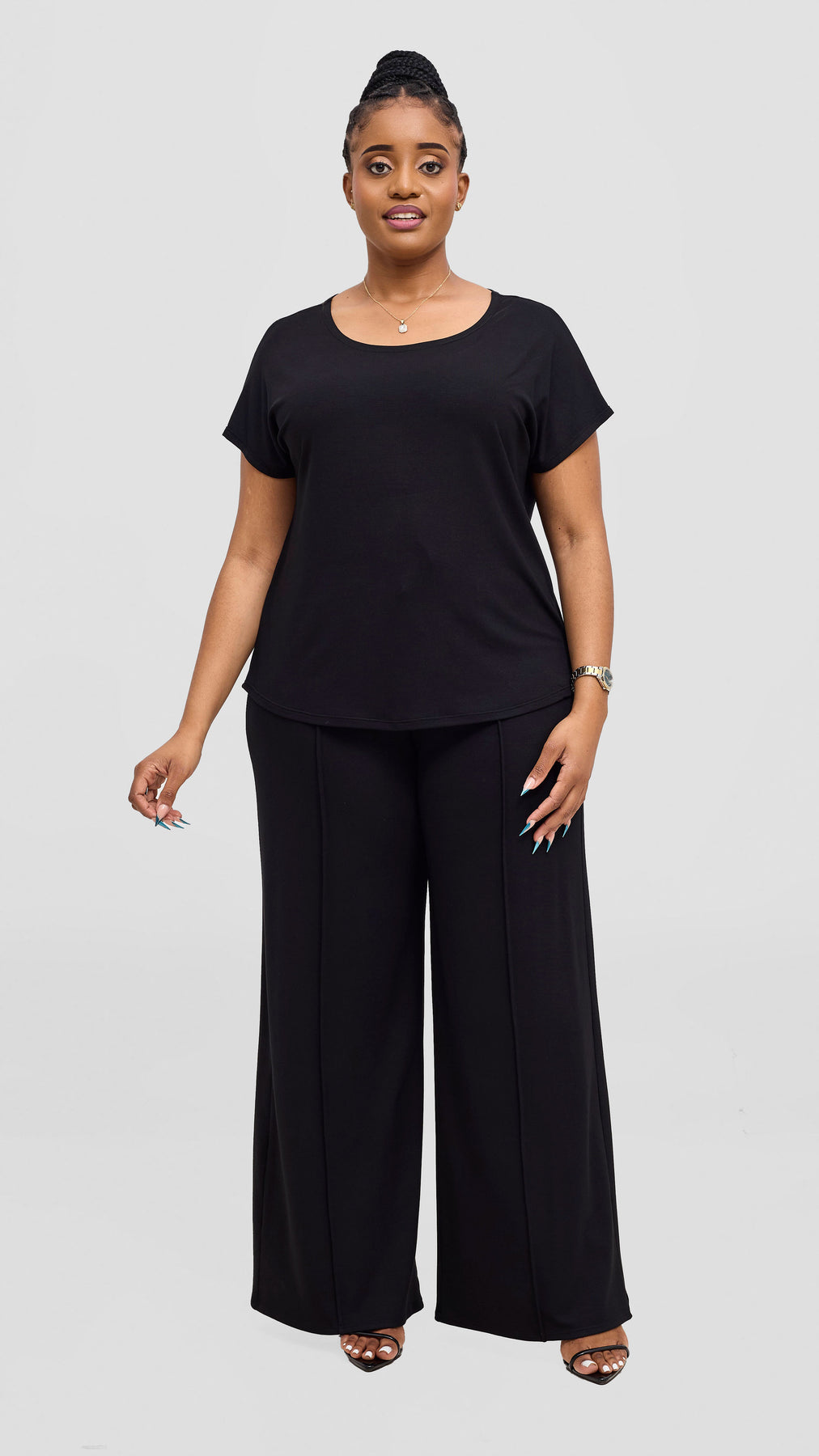 The Vivo Ria Panelled Pants in black offer a stylish and adaptable addition to your wardrobe. Crafted with distinct panel detailing, these pants provide a flattering fit and a modern edge. Wear them with the matching top for a polished coordinated outfit or pair them with your favorite pieces for versatile everyday style. Perfect for making a confident statement wherever you go.