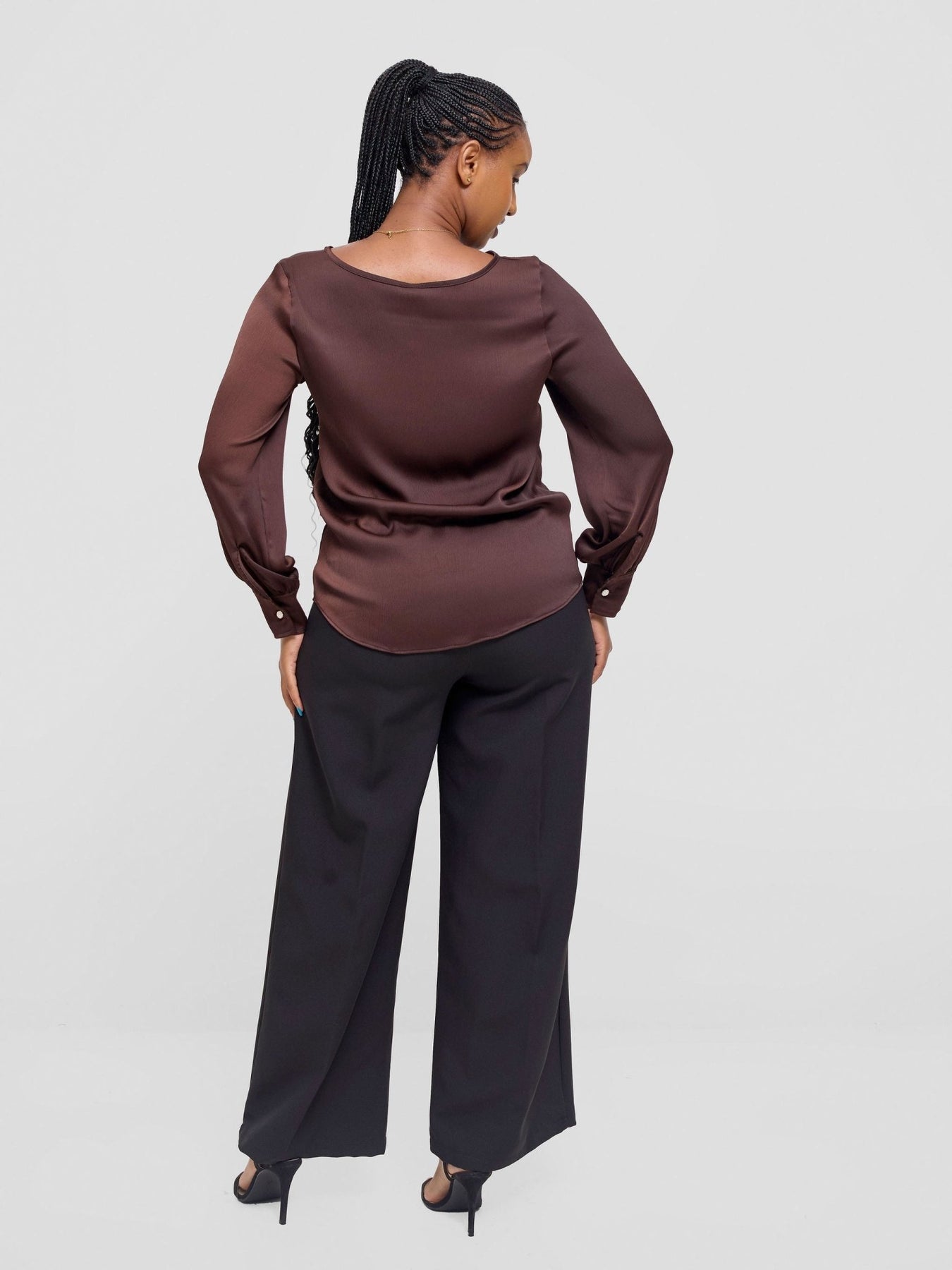 Vivo Tatili Satin Bishop Long Sleeve Top - Chocolate Textured - Shopzetu