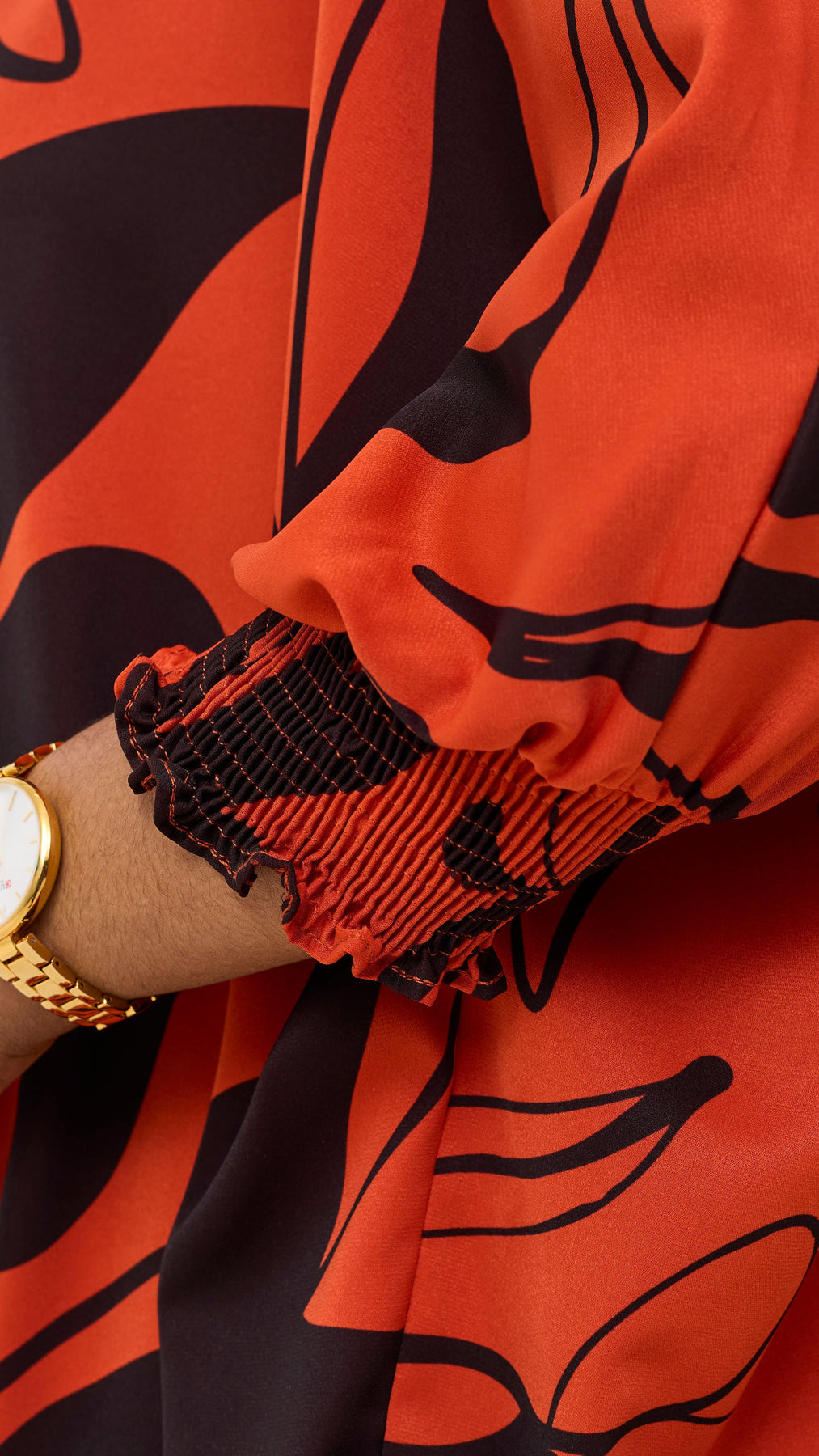 The Vivo Wastani 3/4 Shirred Sleeve Wide Tunic in Dark Rust with Rust Zia Print combines comfort and style effortlessly. Its breathable fabric and loose fit offer all-day ease, while the elegant shirred sleeves add a delicate touch. Perfect for casual outings or relaxed workdays, this tunic brings a graceful splash of color to your wardrobe, helping you feel confident and comfortable wherever you go.