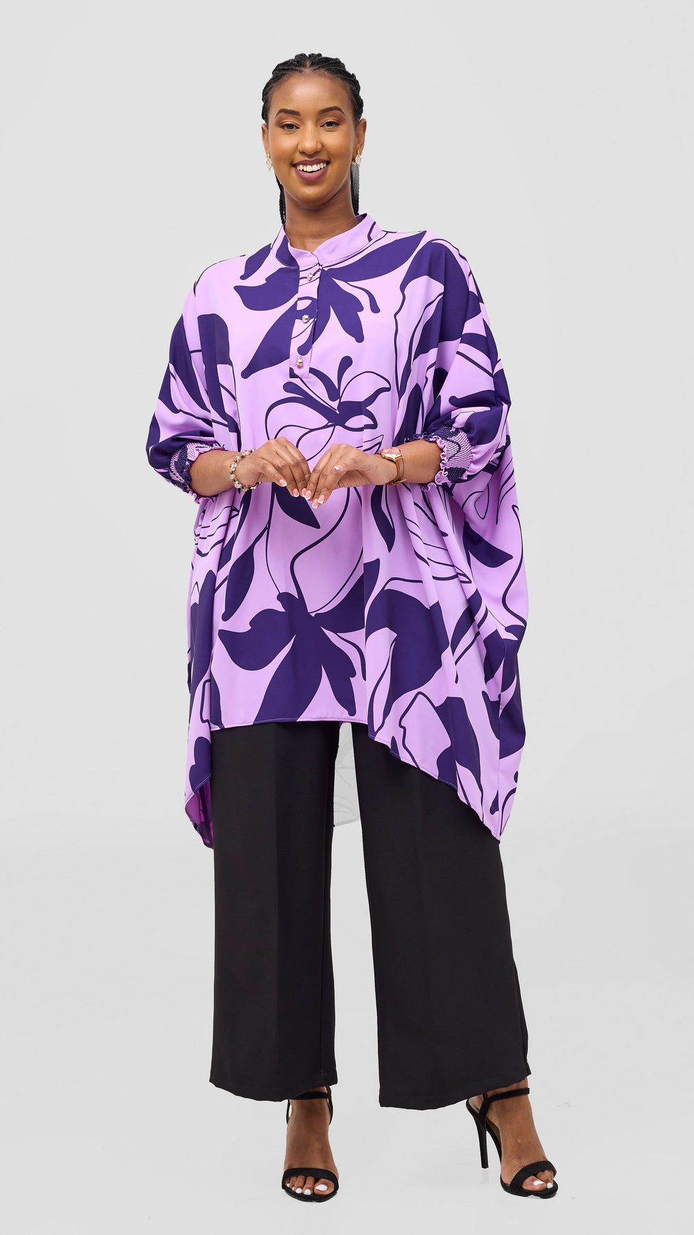 The Vivo Wastani 3/4 Shirred Sleeve Wide Tunic in Lilac with Purple Zia Print combines comfort and style effortlessly. Its breathable fabric and loose fit offer all-day ease, while the elegant shirred sleeves add a delicate touch. Perfect for casual outings or relaxed workdays, this tunic brings a graceful splash of color to your wardrobe, helping you feel confident and comfortable wherever you go.