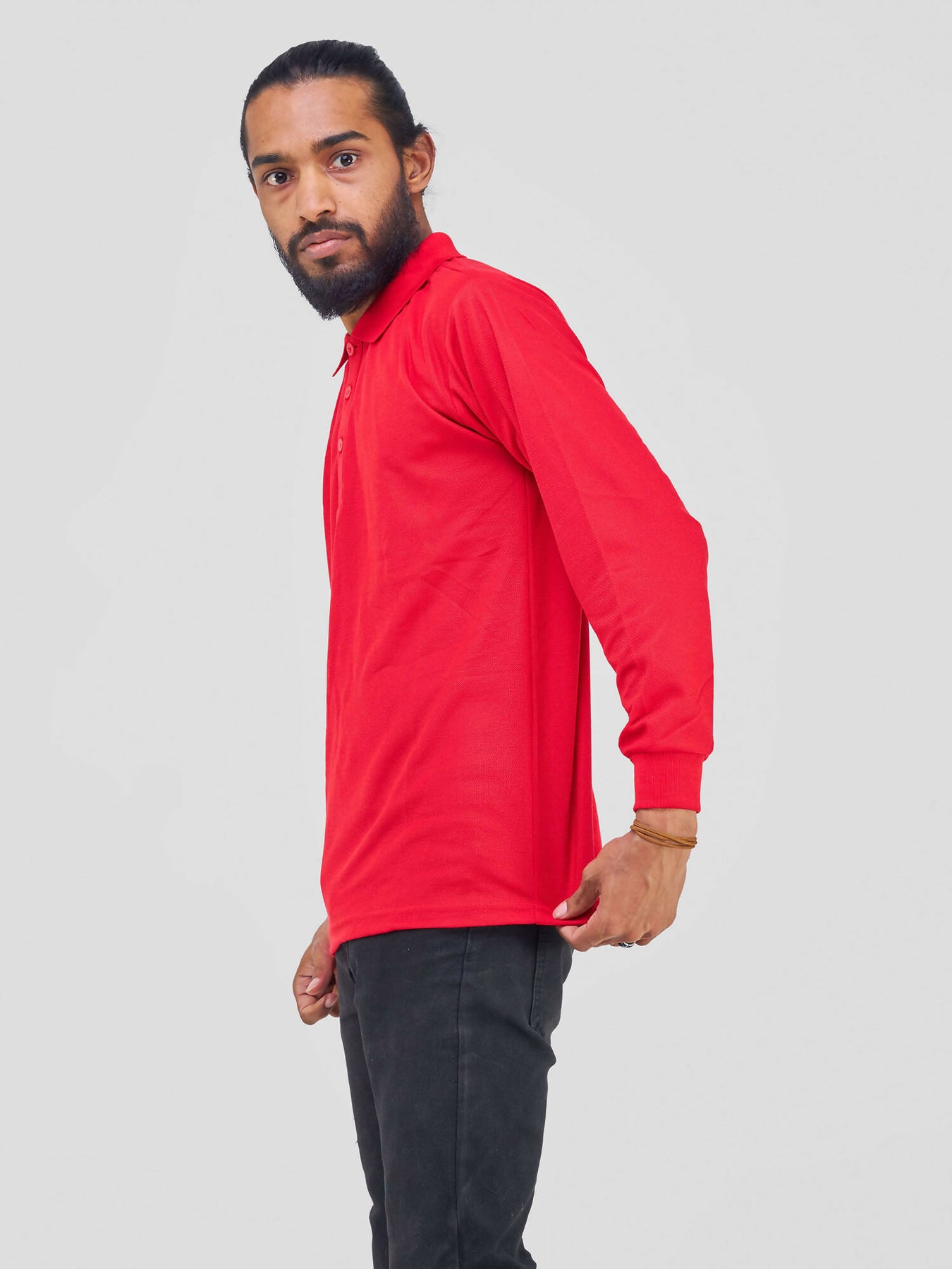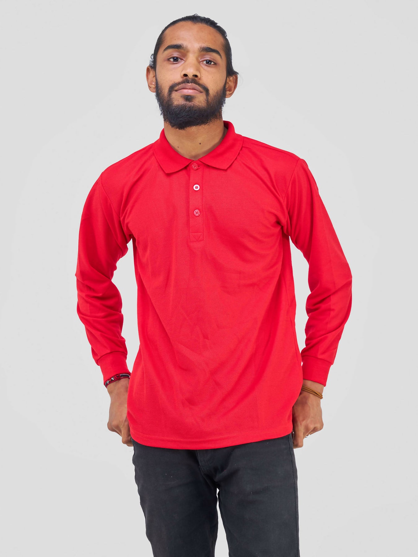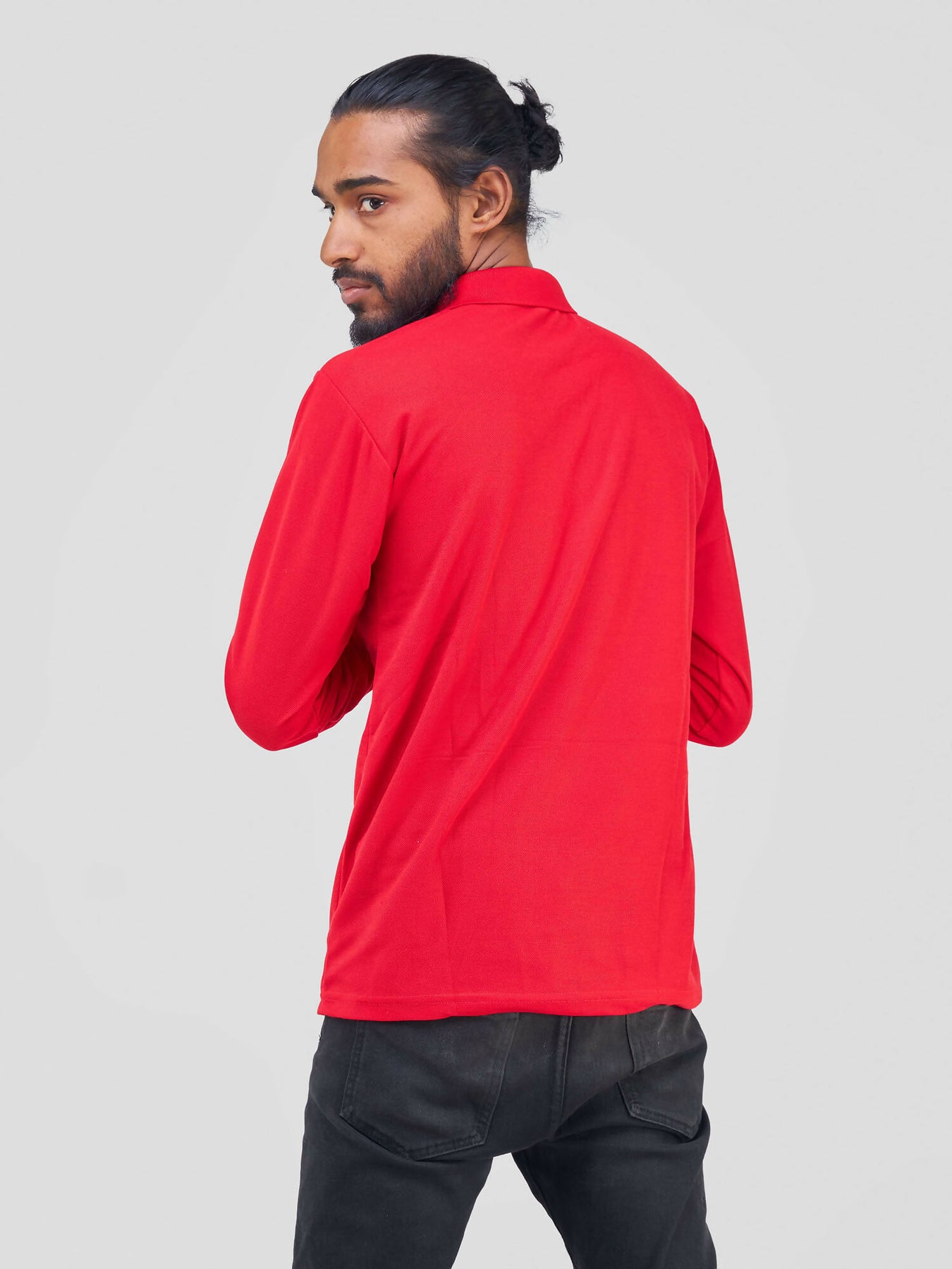 Long Sleeved Polo T-Shirt - Red - Shopzetu