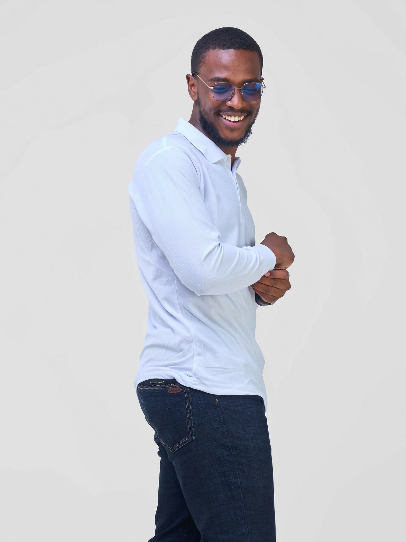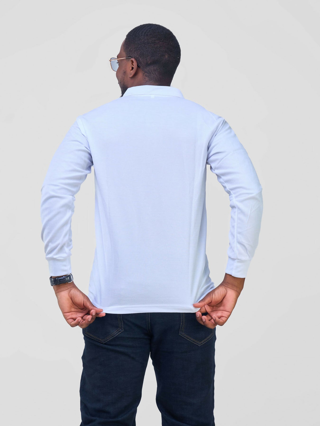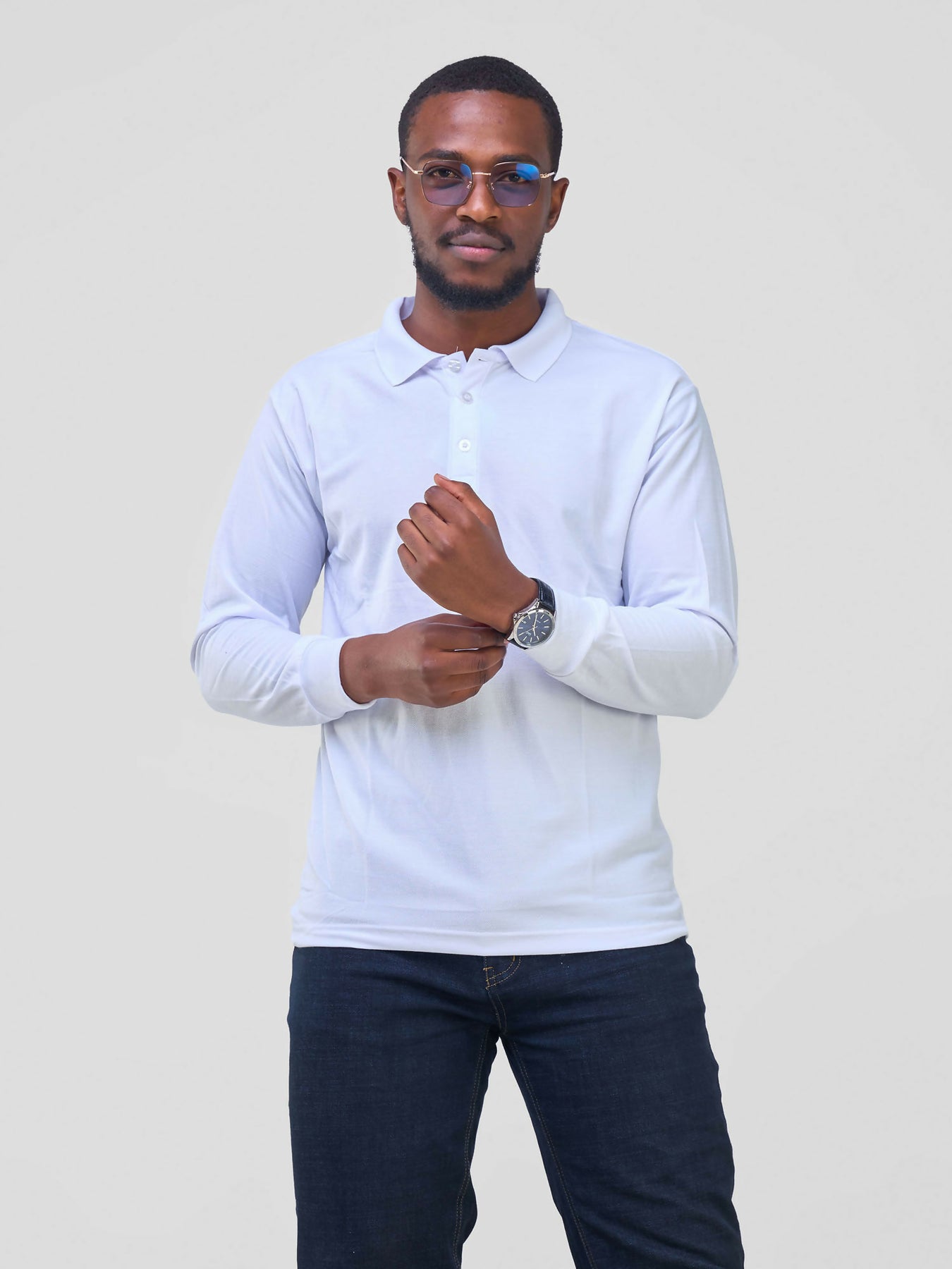 Long Sleeved Polo T/Shirt - White - Shopzetu