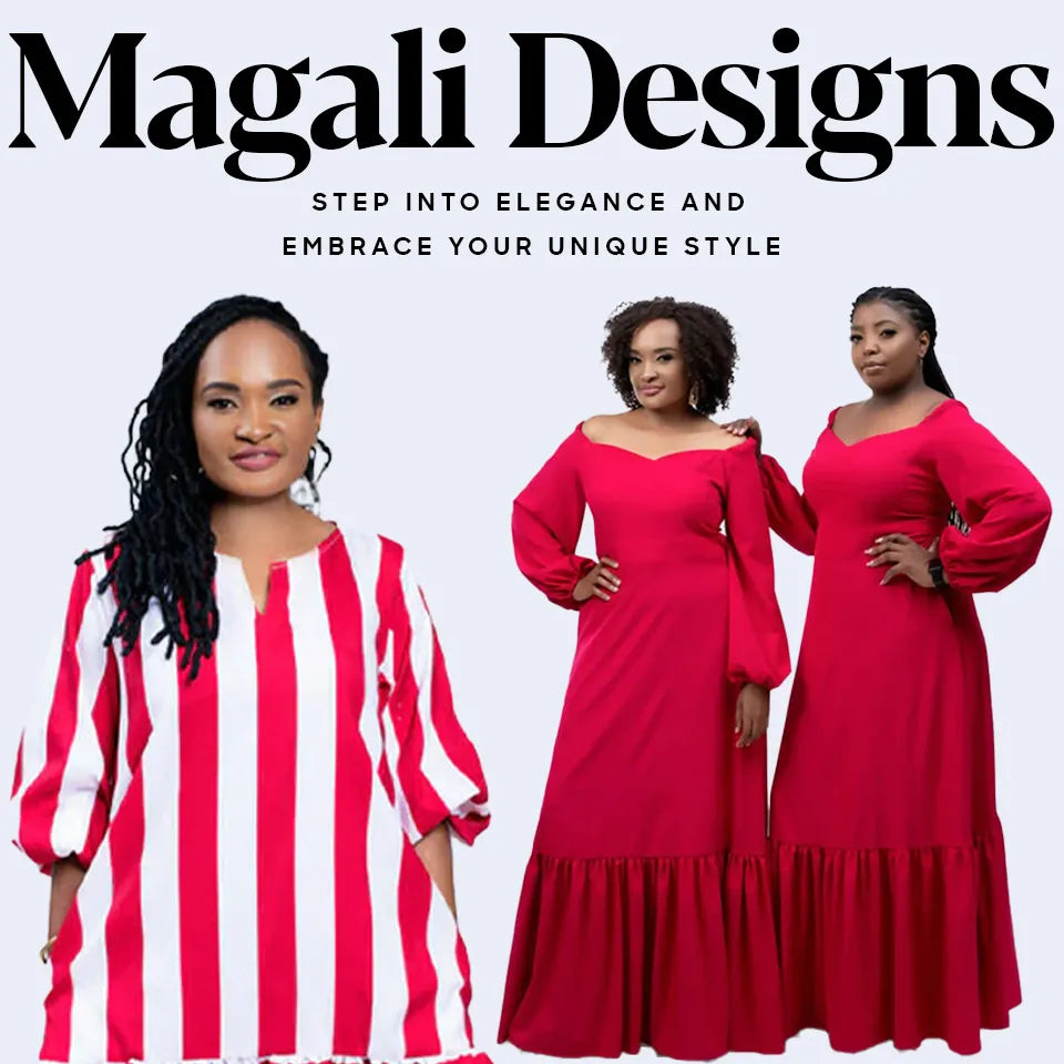 Magali designs is a Kenyan designer fashion clothing brand that seeks to celebrate all the silhouettes. We endeavor to ensure our designs are accessible, affordable and fashionable. Our goal is to establish ourselves as top fashion brand that is innovative and allows fashion to create a positive force that encourages young people to express themselves fully. Magali means pearl therefore It's a place to find inspiration, create your own sense of style, and of course, shop.
