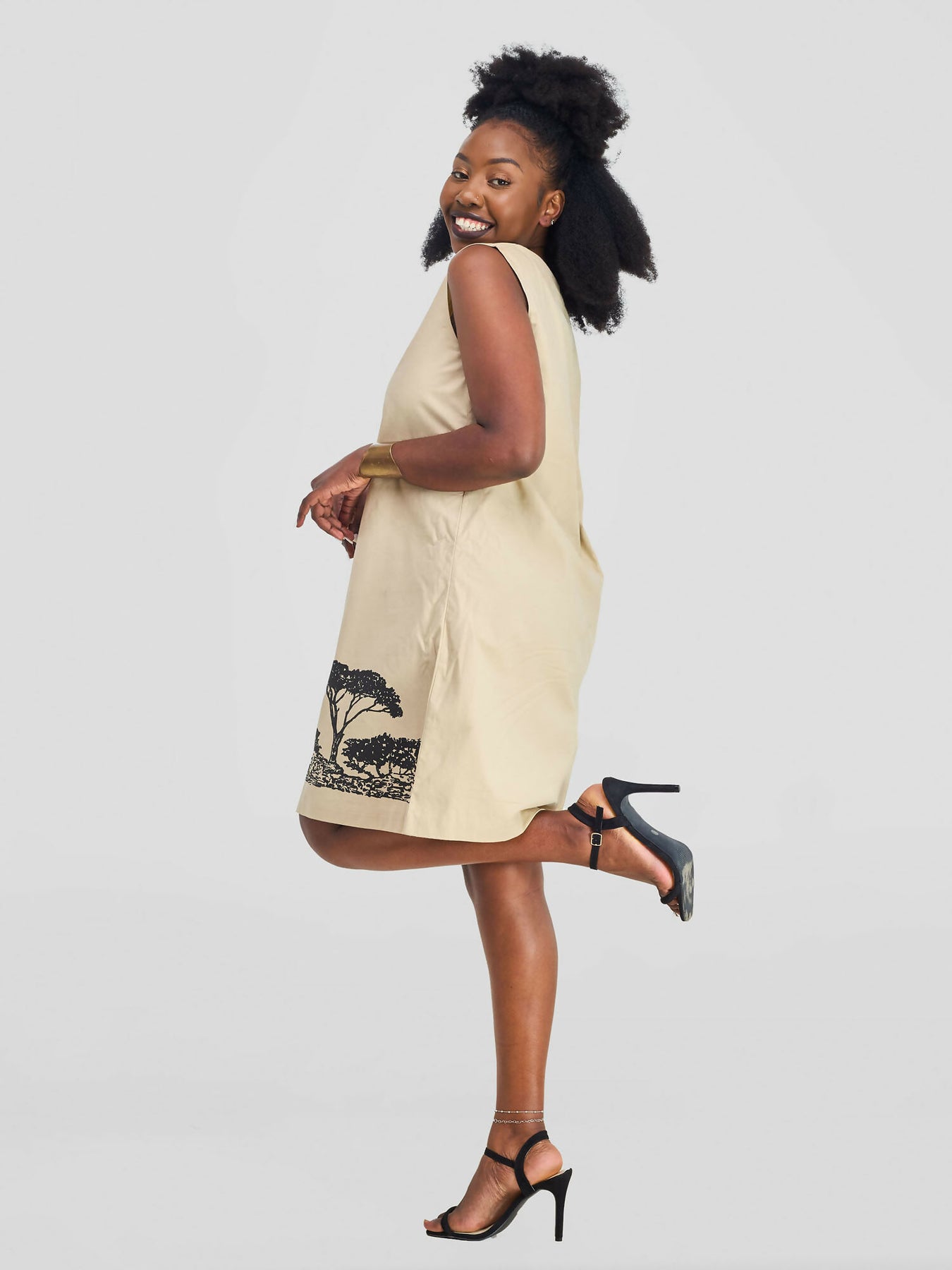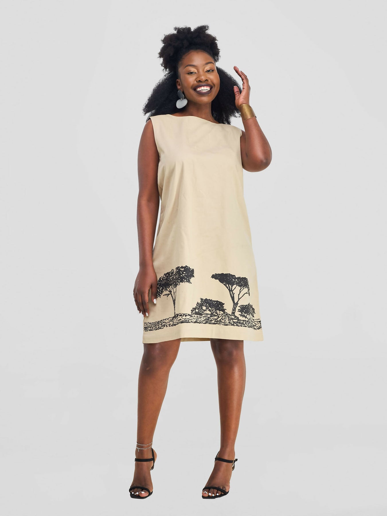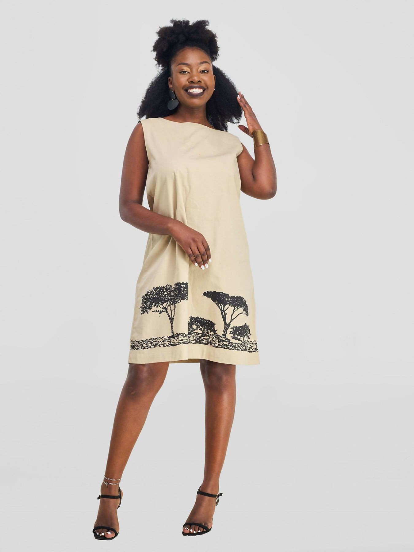Mavazi Affordable Sleeveless Tree Line Dress - Beige