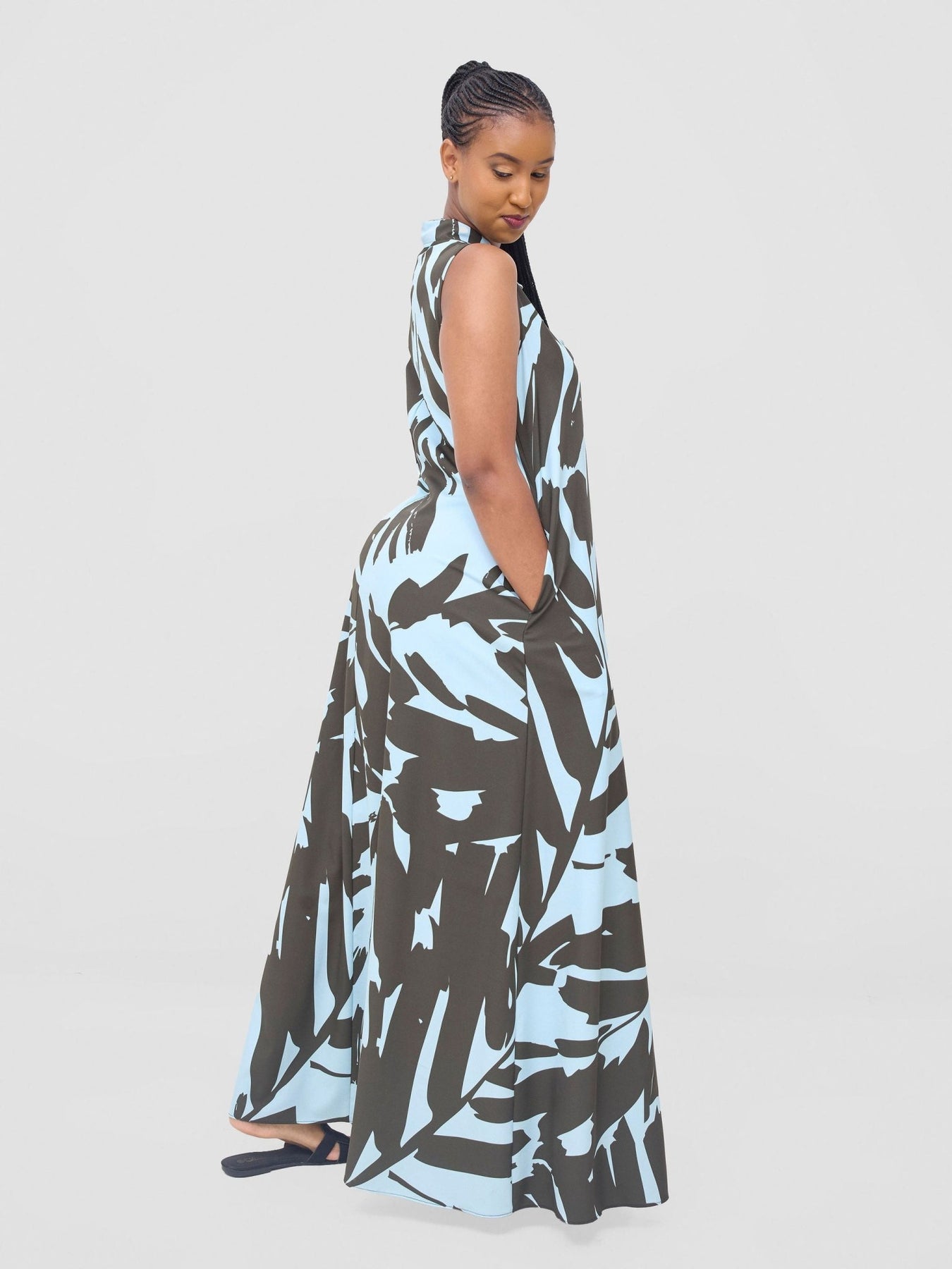 Vivo Asha Sleeveless Maxi Dress - Mint / Olive Eta Print