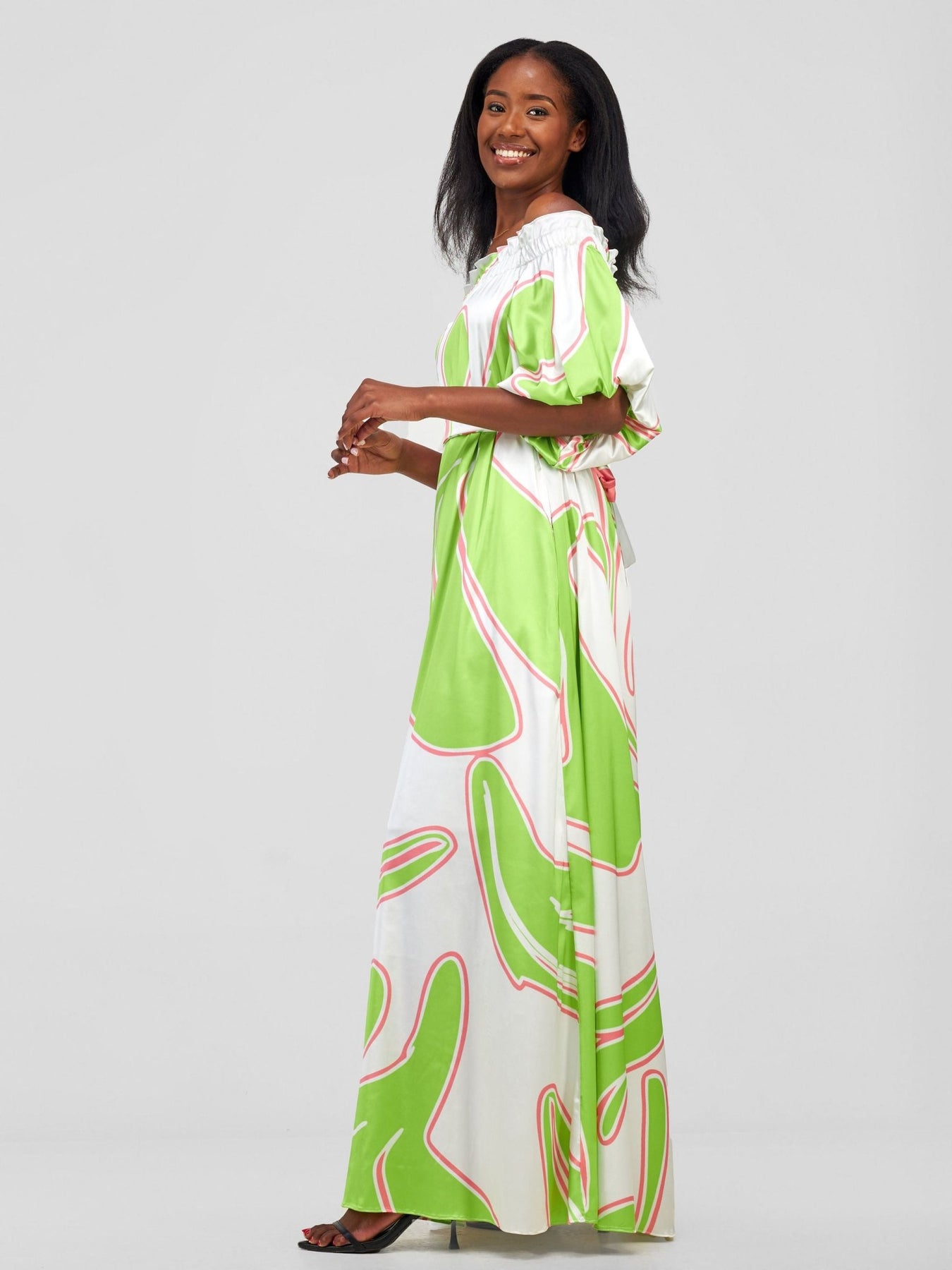 Vivo Sanyu Bubble Sleeve Tent Dress - Lime / White Zazi Print - Shopzetu